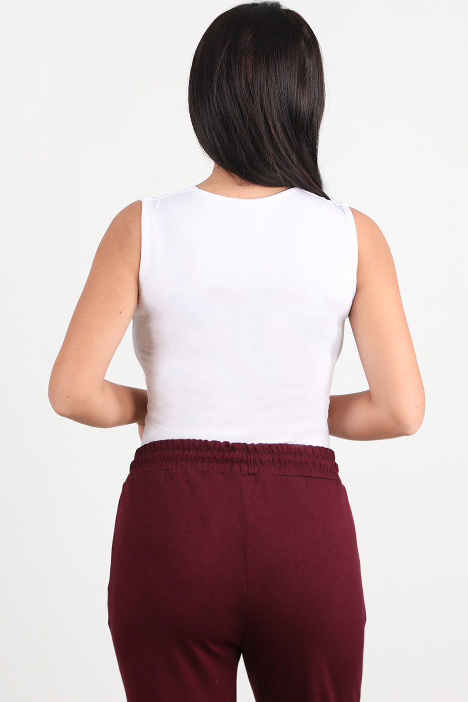 Pure Kadın Kare Yaka Kalın Askılı Zıbın Bluz Beyaz