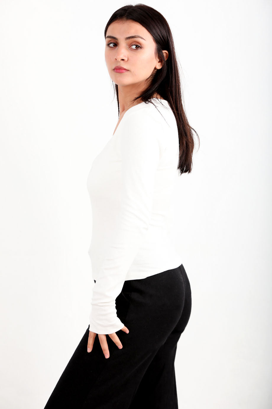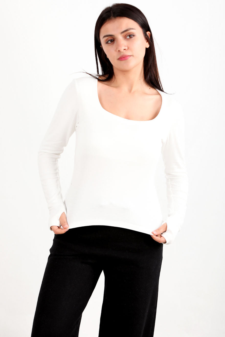 Thumbline Kadın Kare Yaka Parmak Geçmeli Bluz Ekru