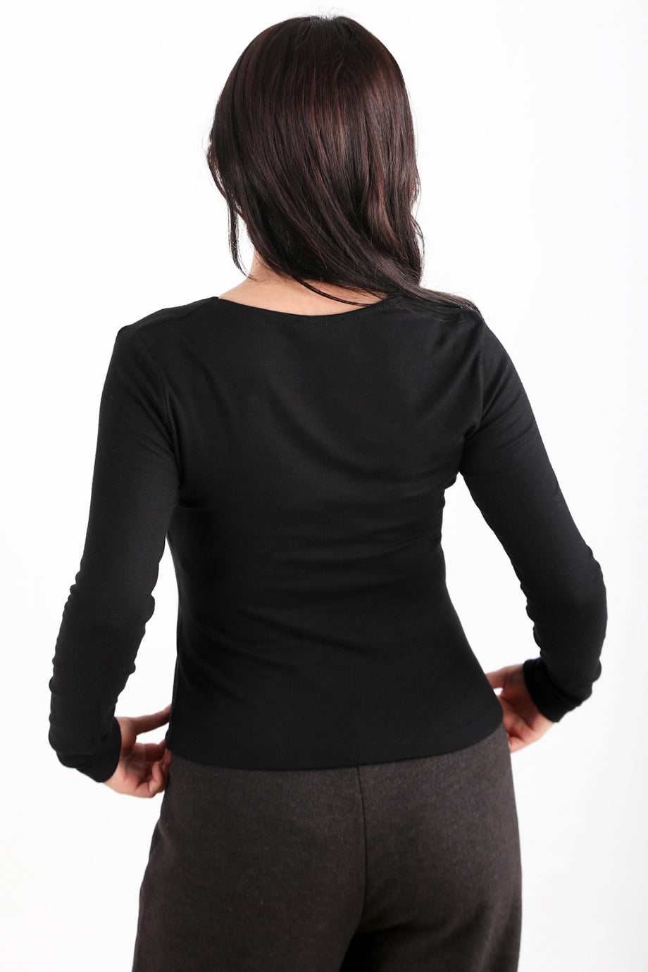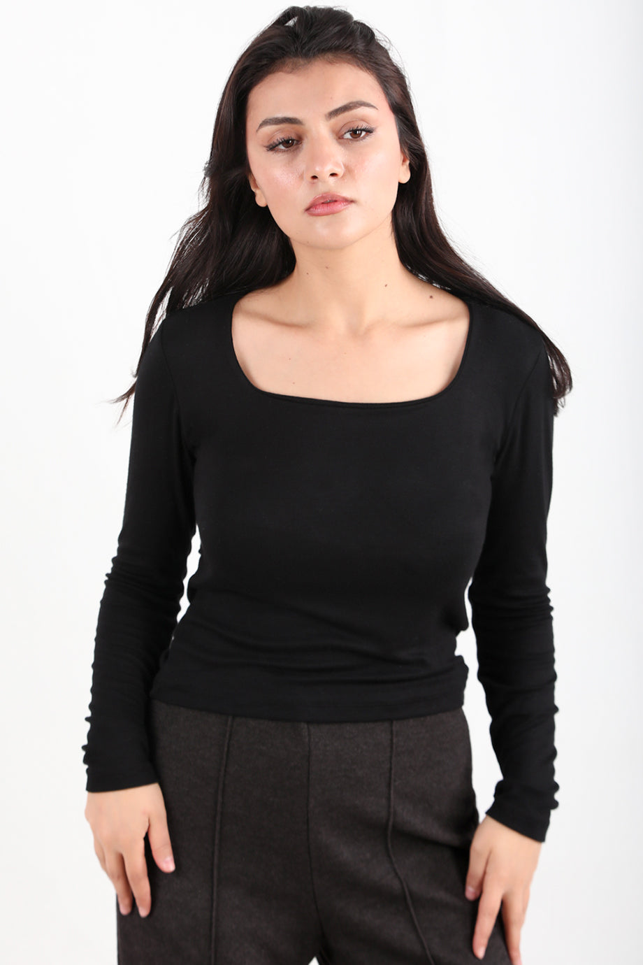 Thumbline Kadın Kare Yaka Parmak Geçmeli Bluz Siyah