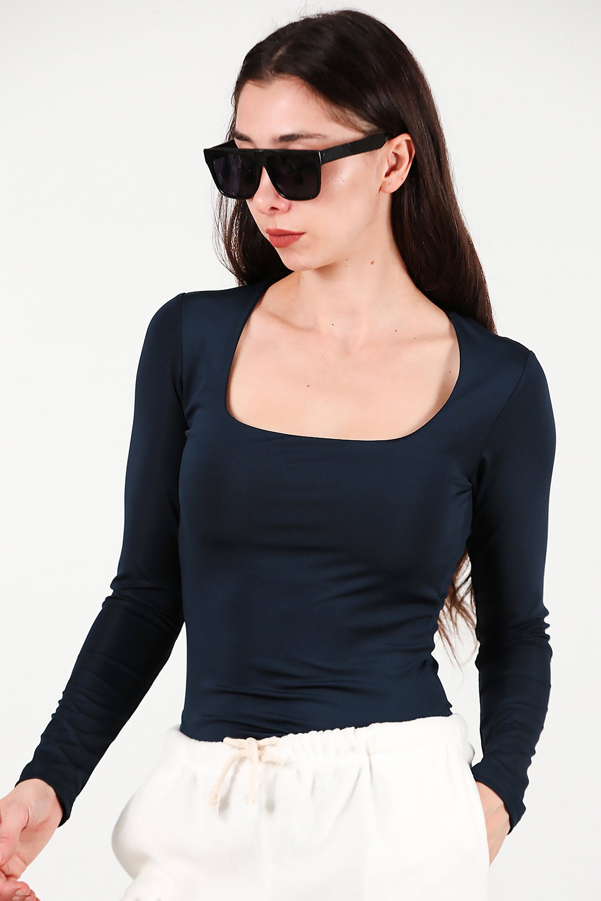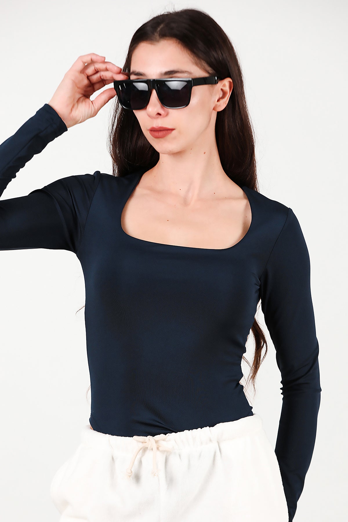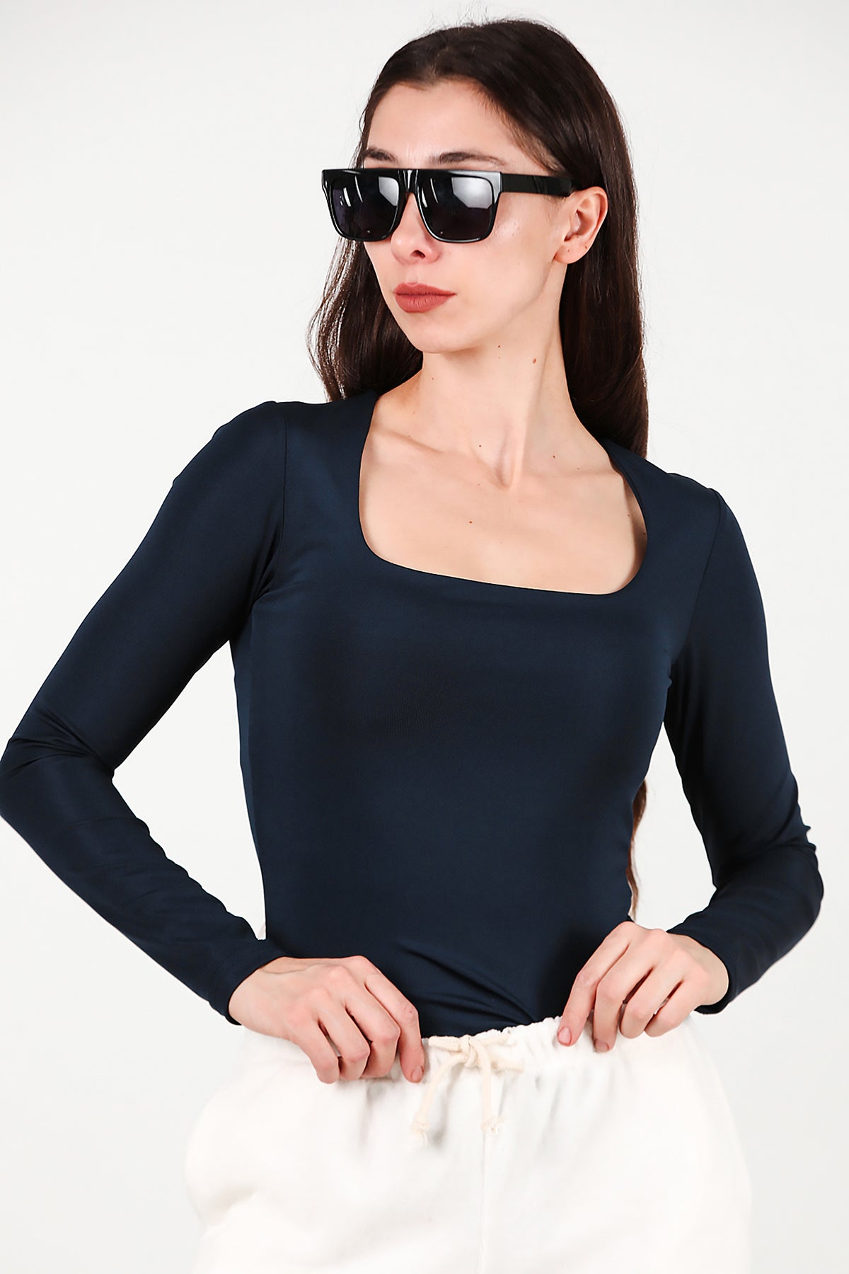 Kadın Kare Yaka Zıbınlı Bady Lacivert