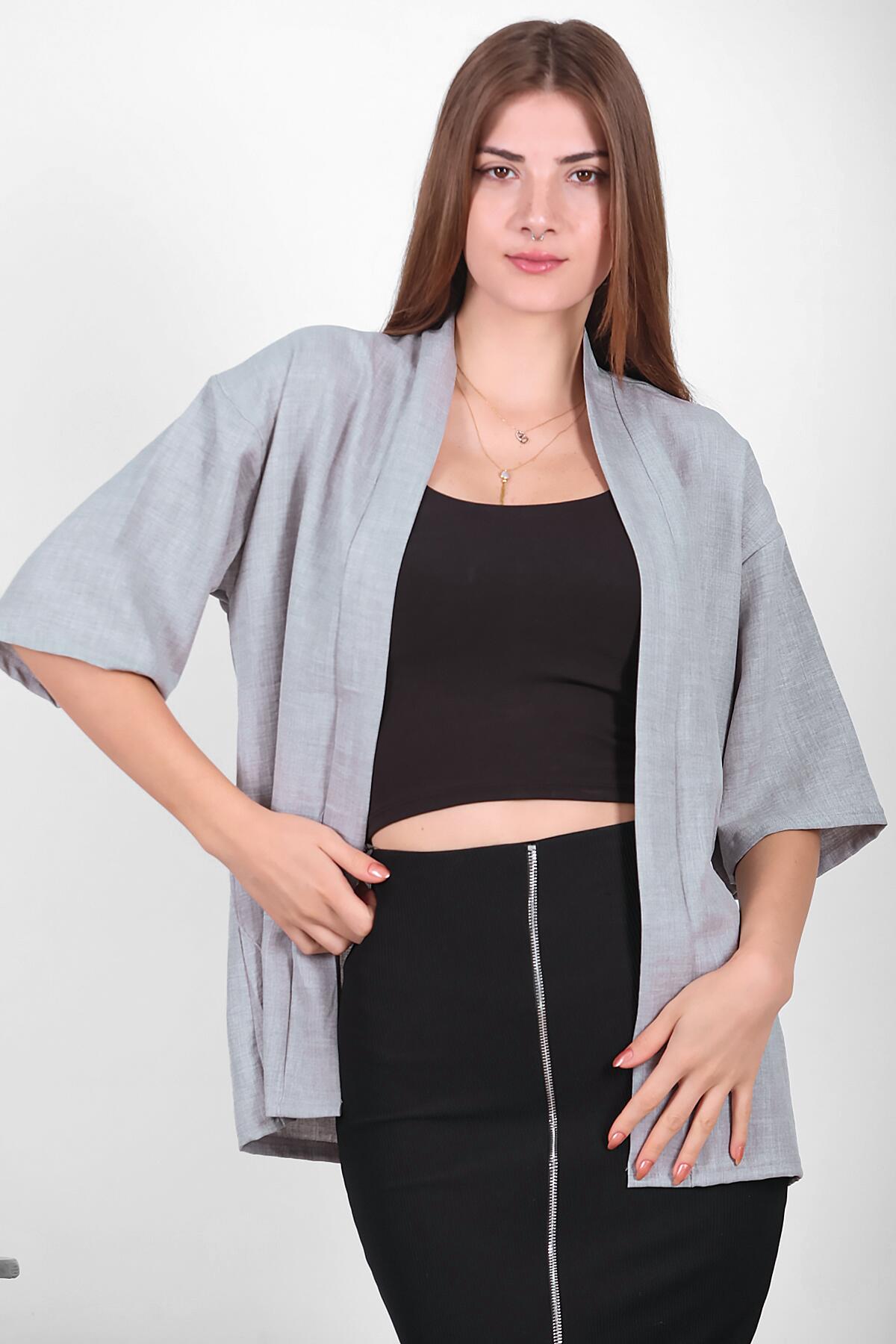 Kadın Keten Kimono Şal Ceket