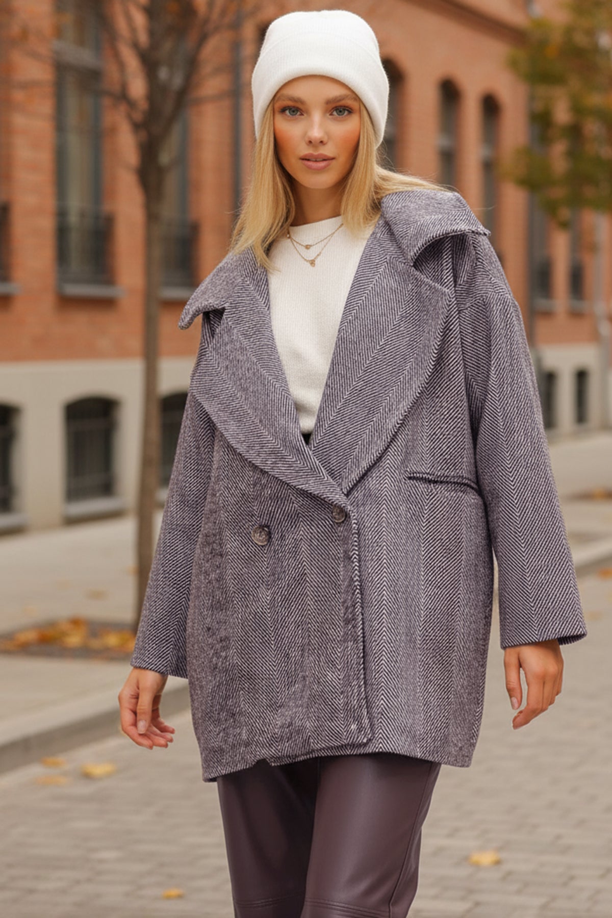 Kadın Kısa Kaşe Kaban Mor