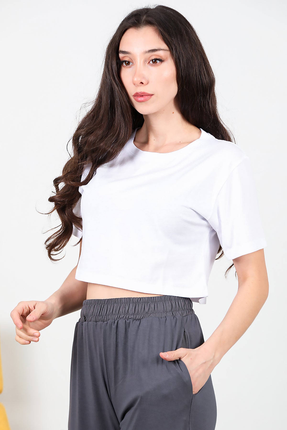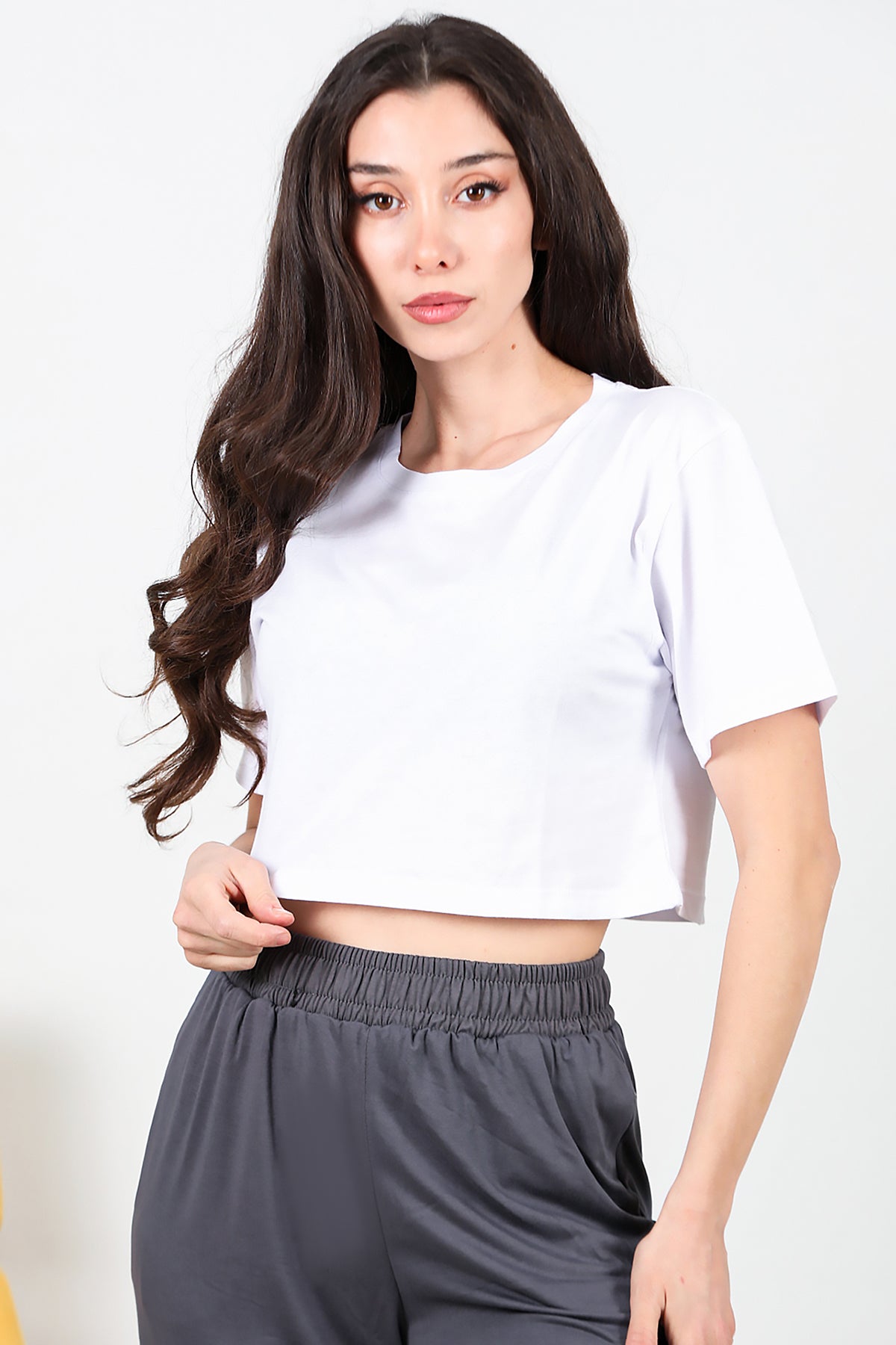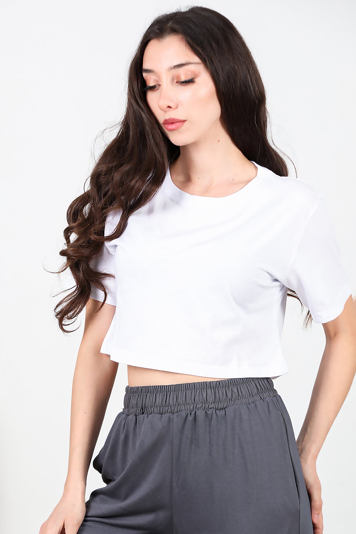 Boxy Kadın Kısa T-shırt Beyaz