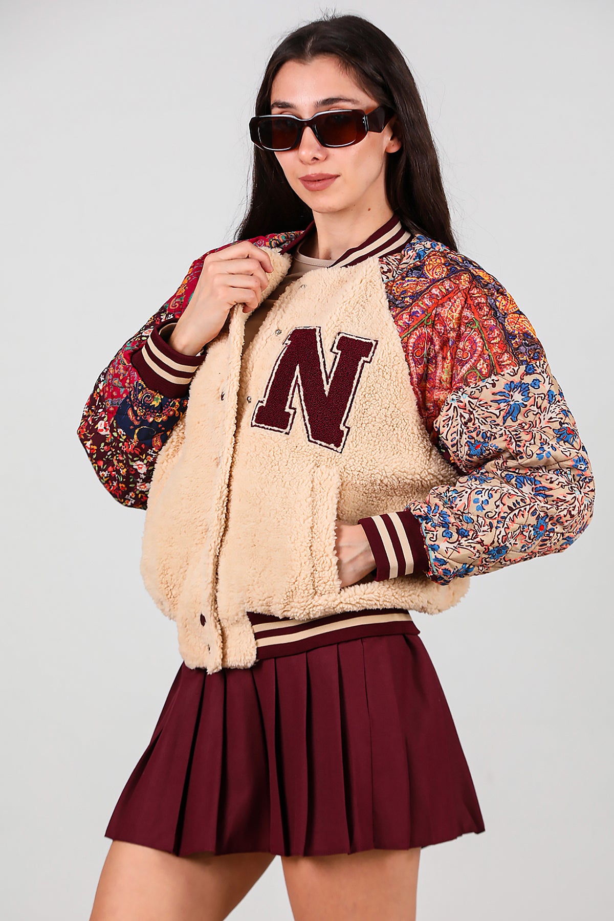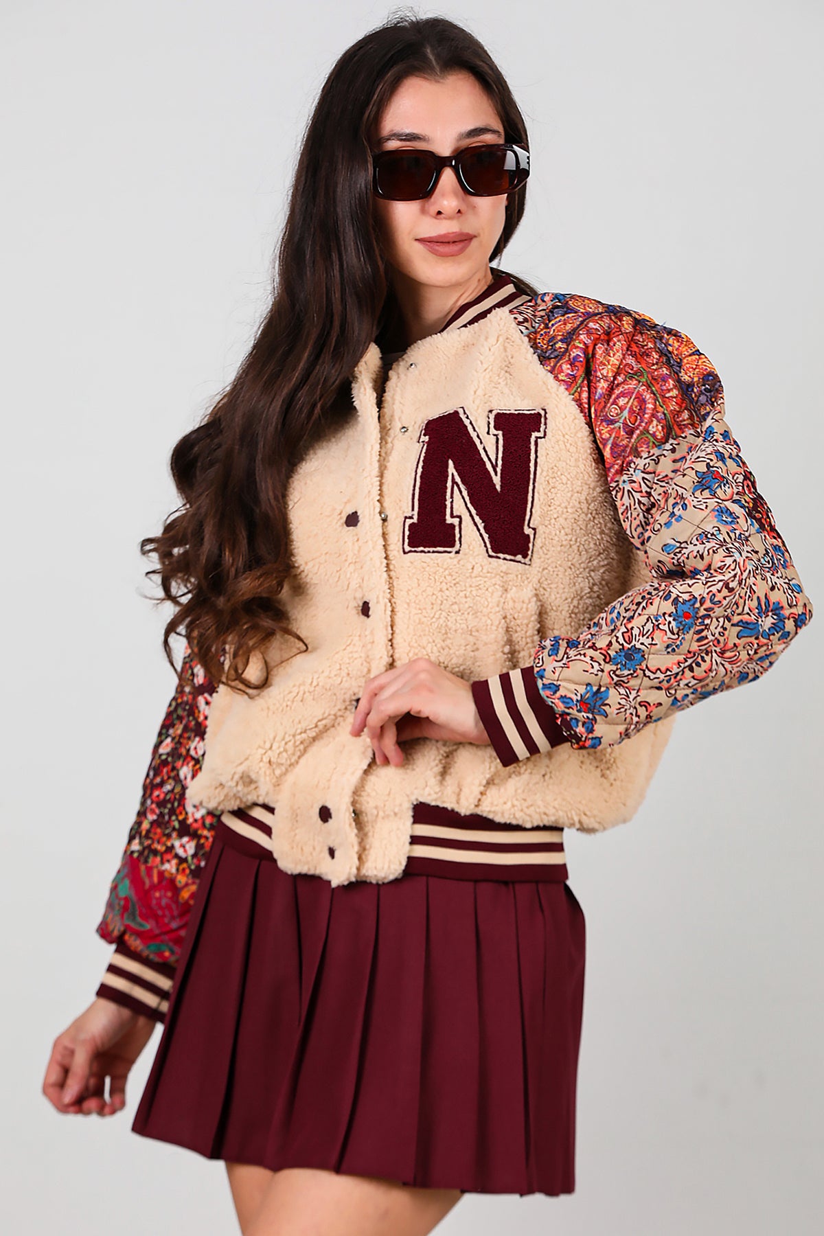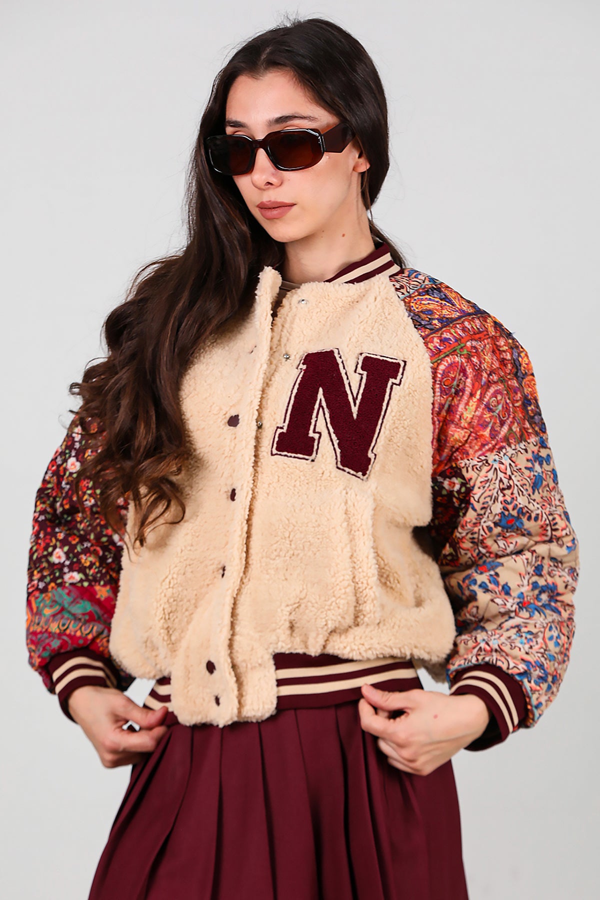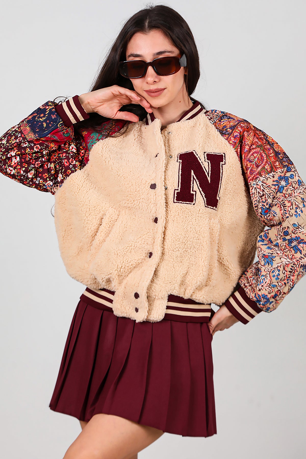 Kadın Kolları Desenli Ceket Krem