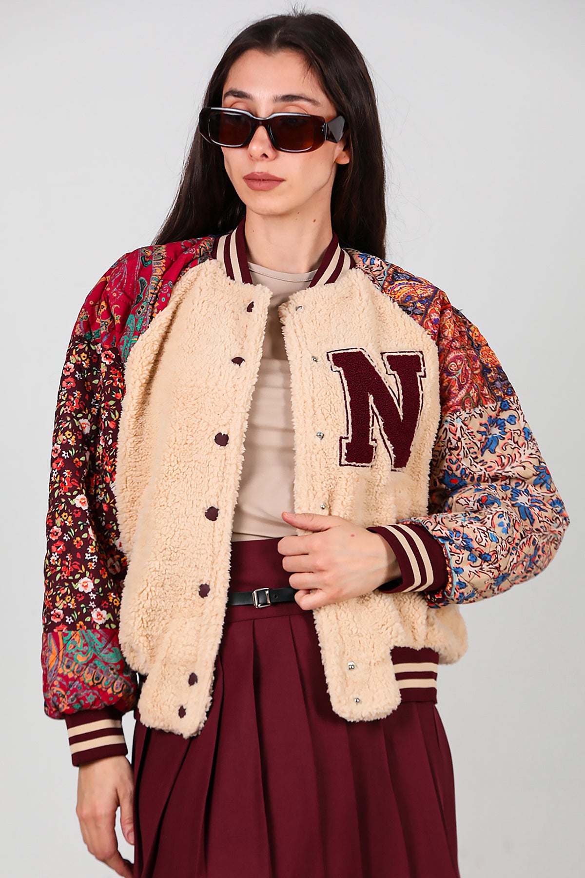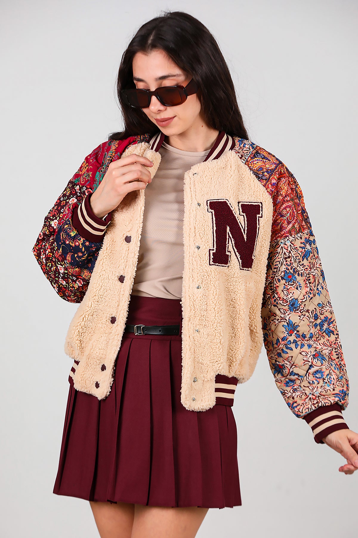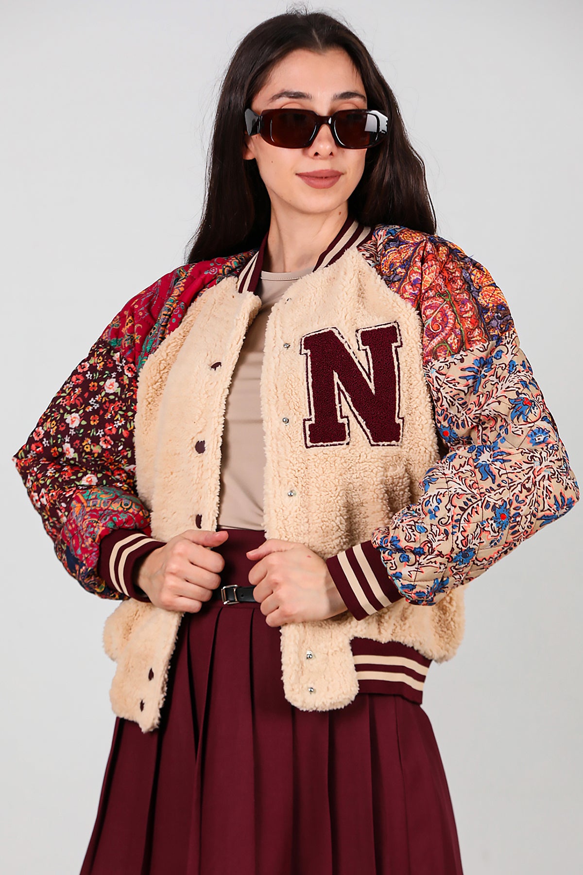 Kadın Kolları Desenli Ceket Krem