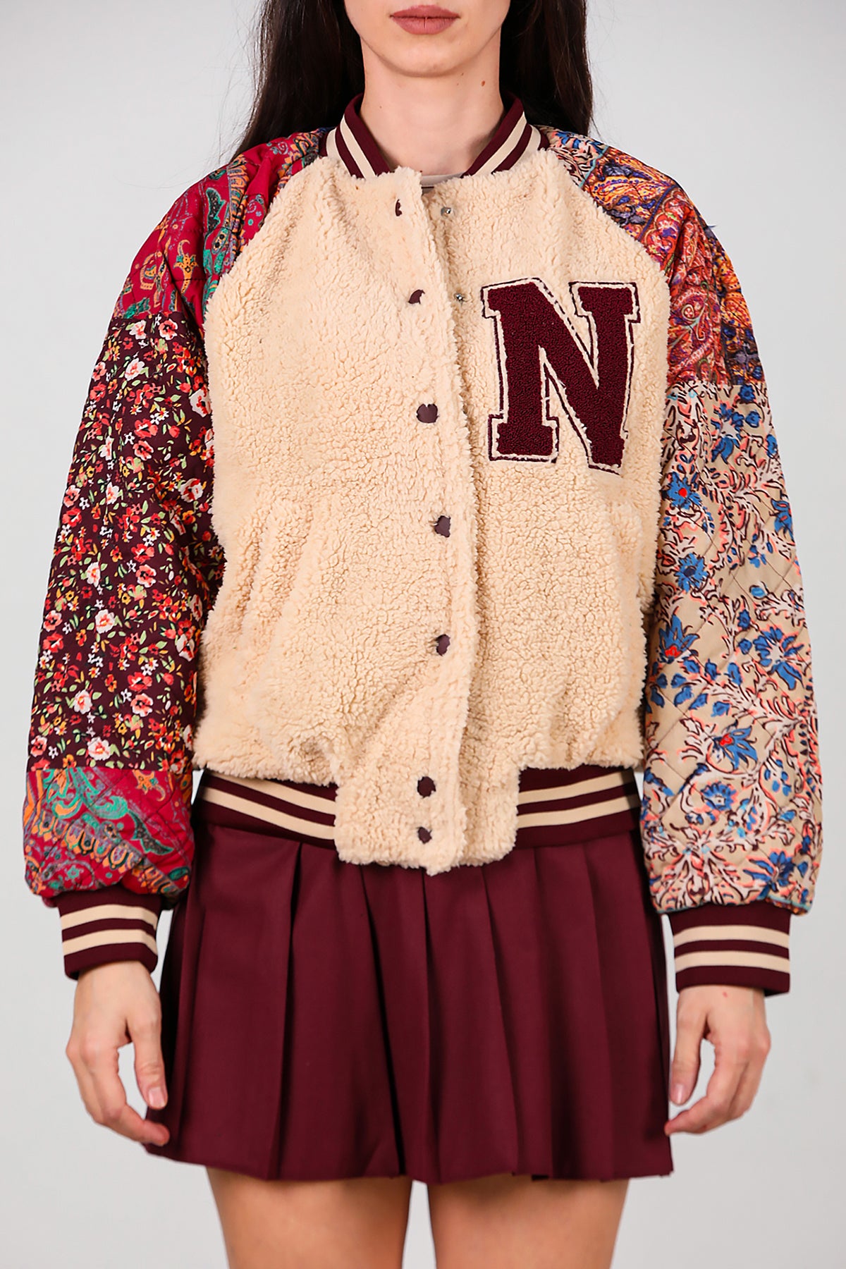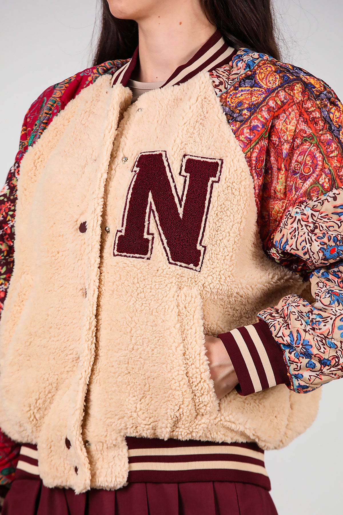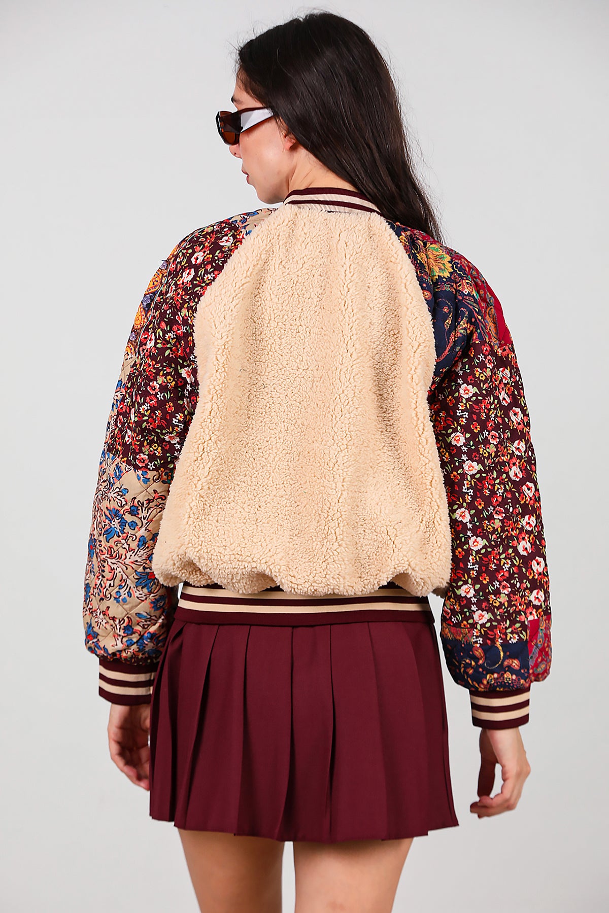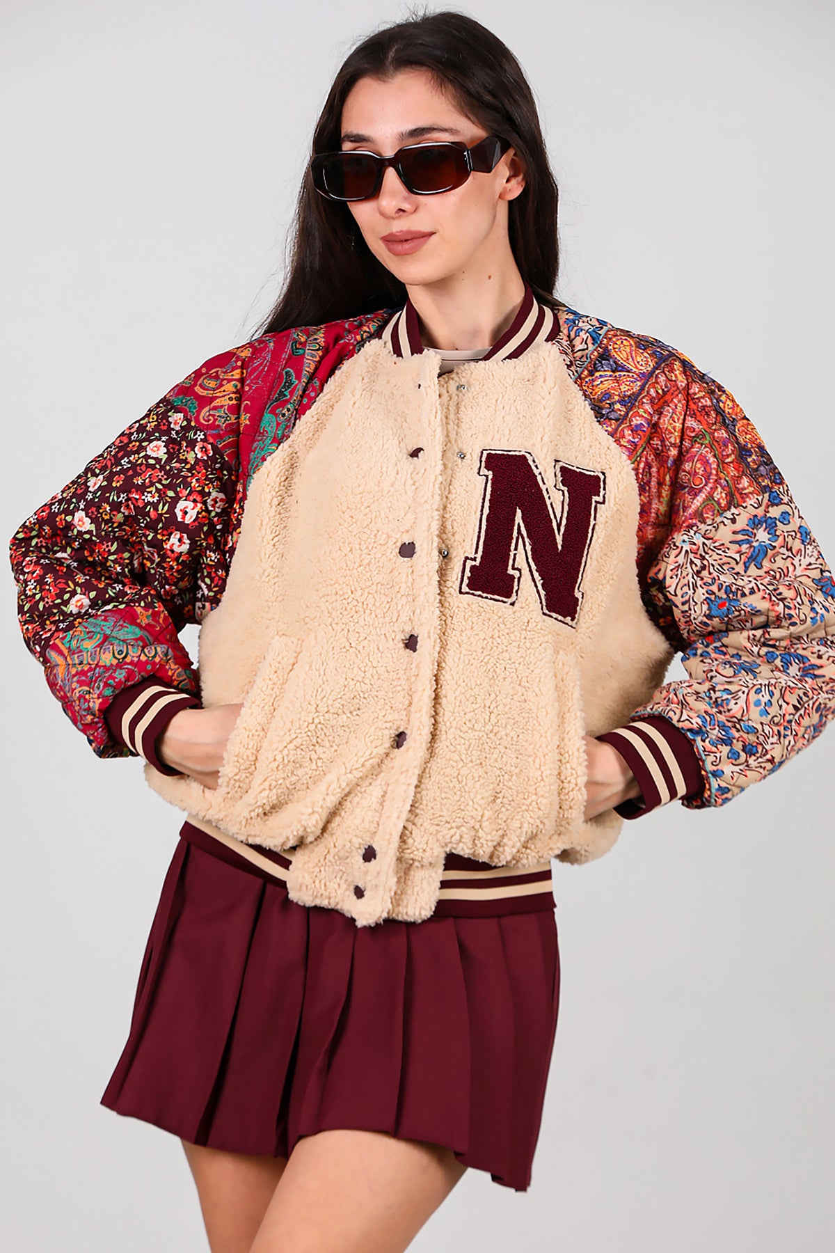 Kadın Kolları Desenli Ceket Krem