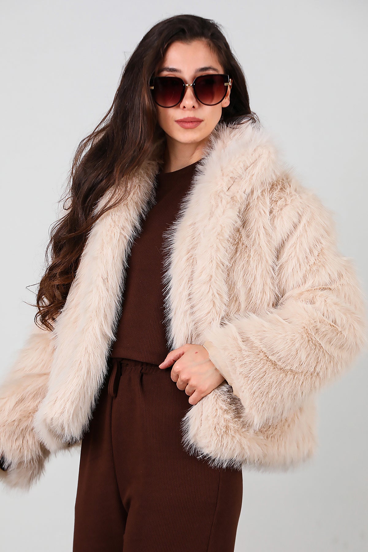 Kadın Kürk Ceket Krem