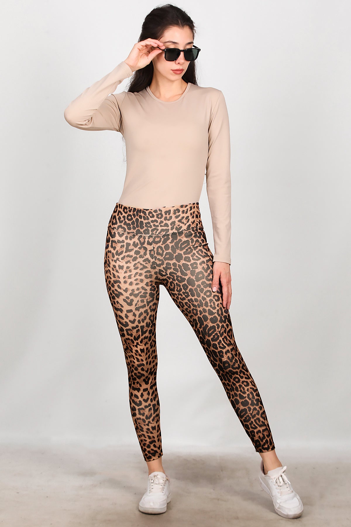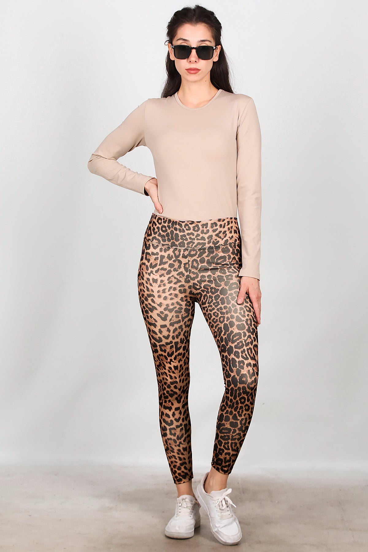 Kadın Leopar Desenli Tayt Kahverengi