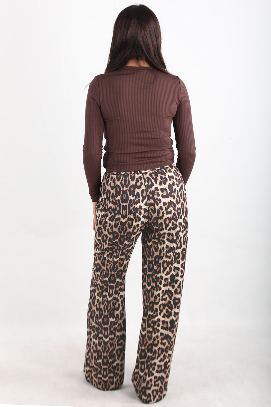 Leowide Kadın Leoparlı Bol Paça Pantolon Kahverengi