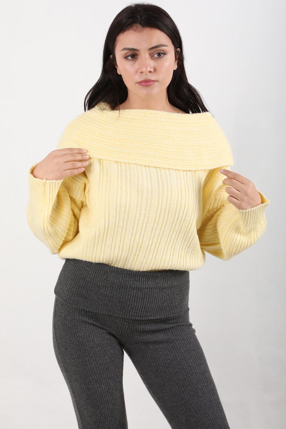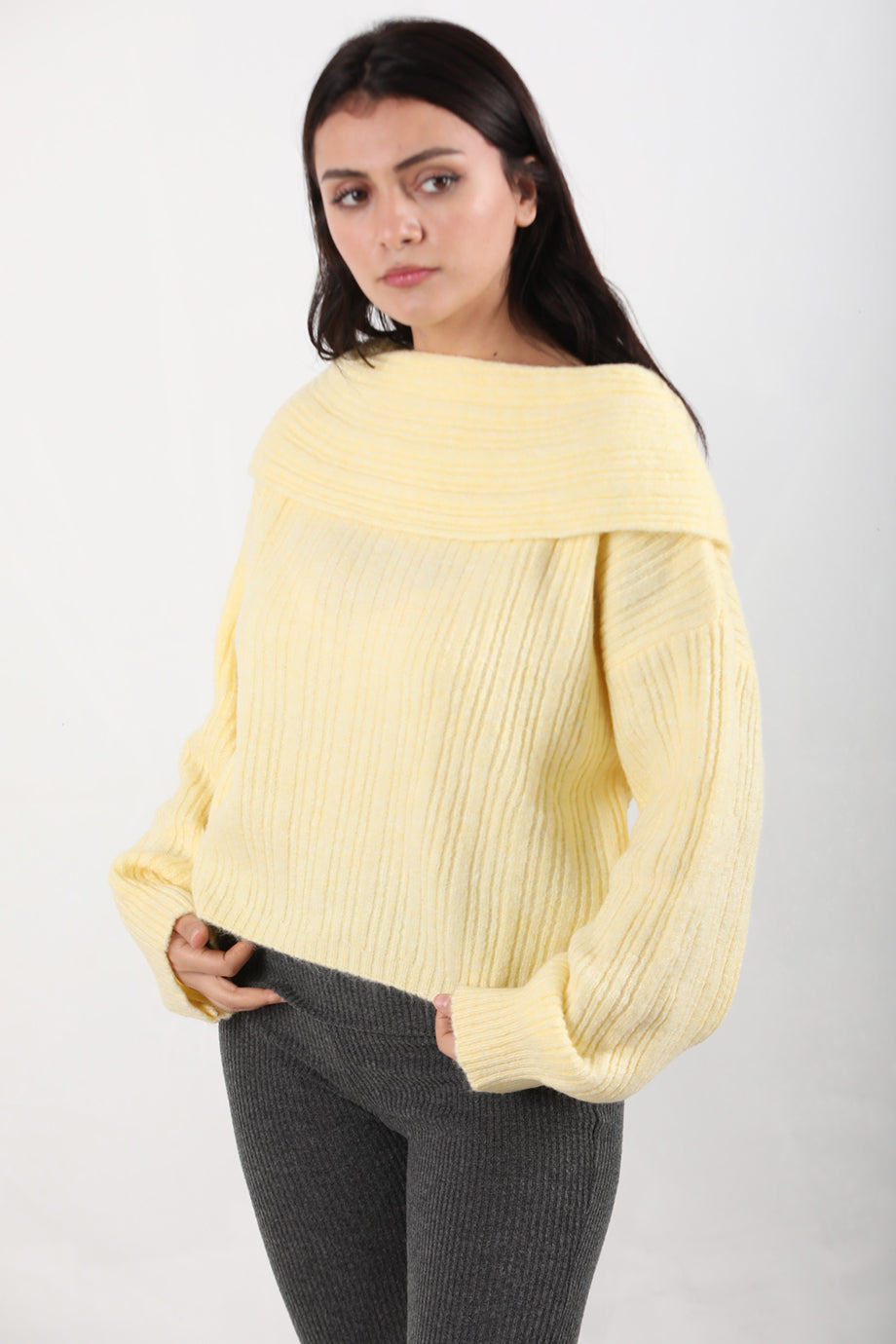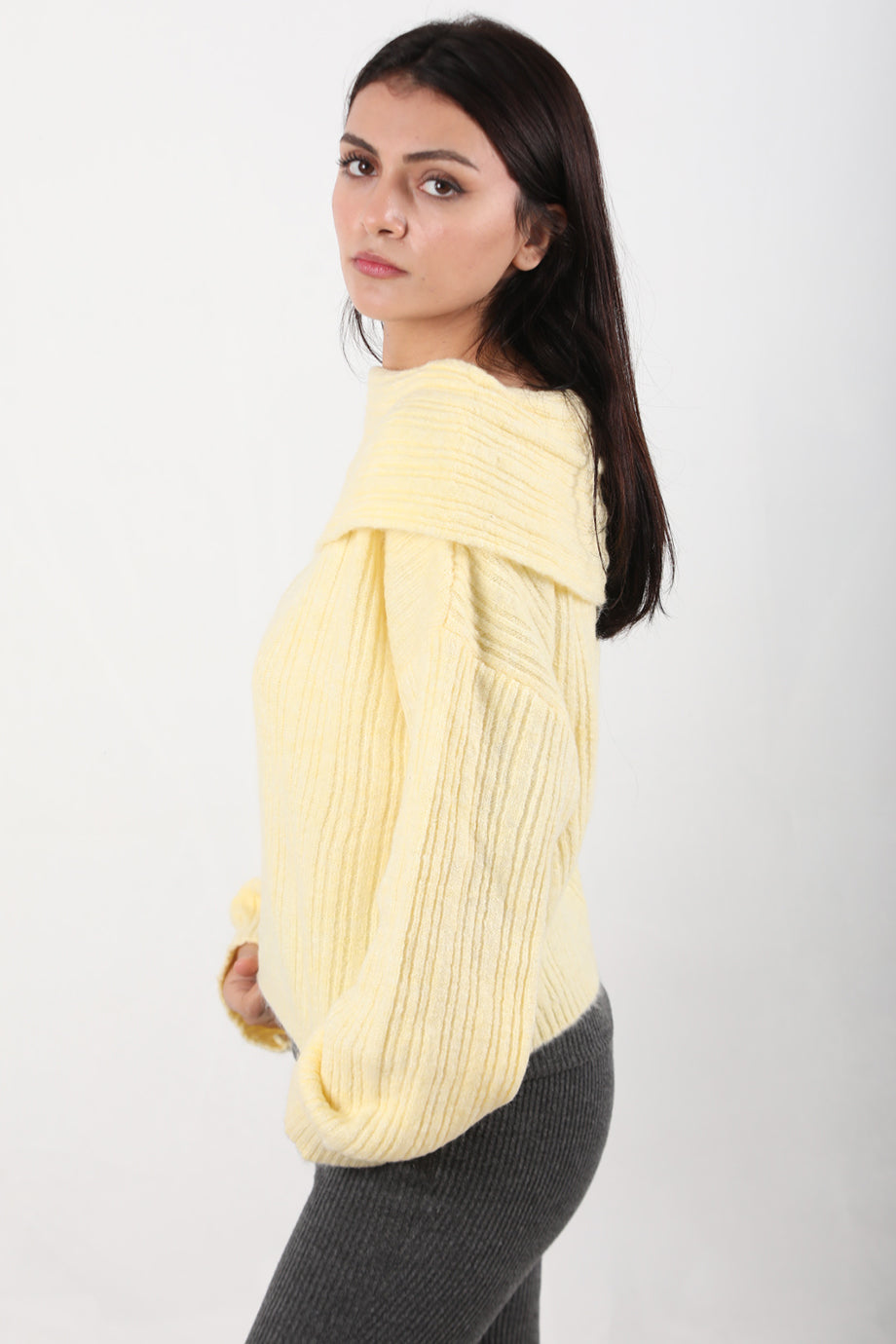 Offeria Kadın Madonna Yaka Kazak Sarı