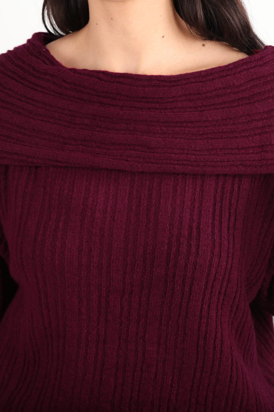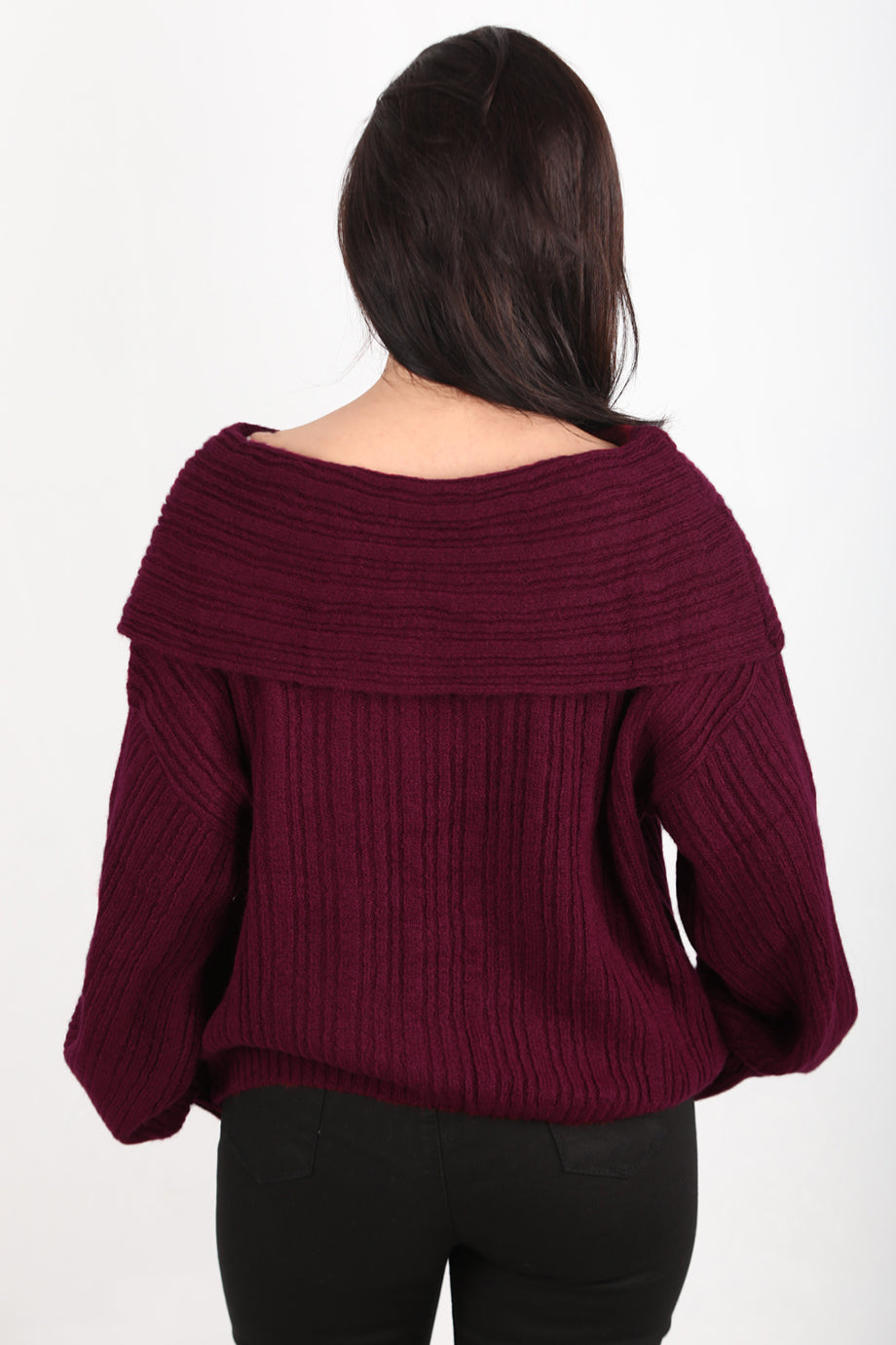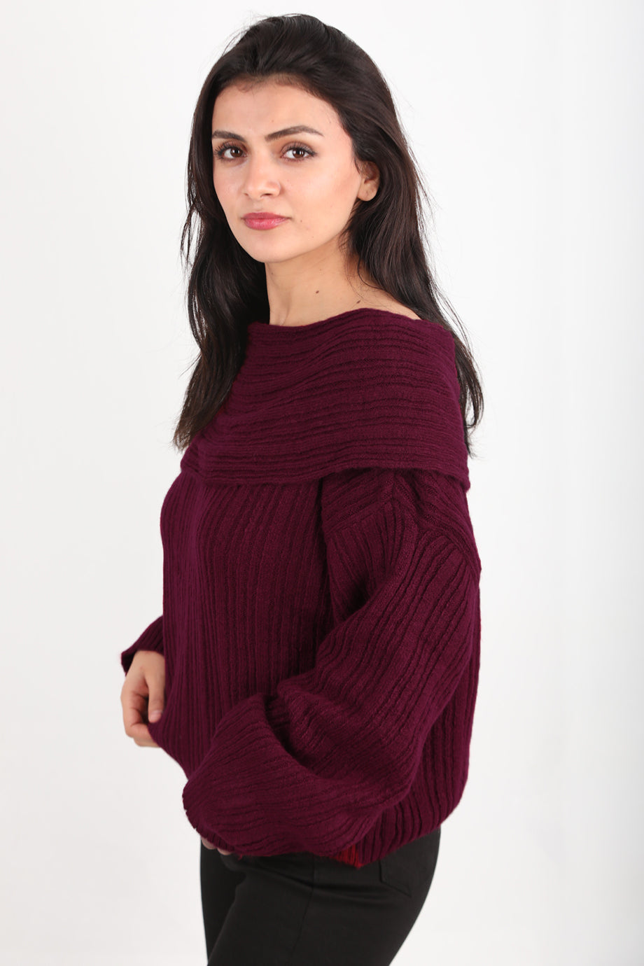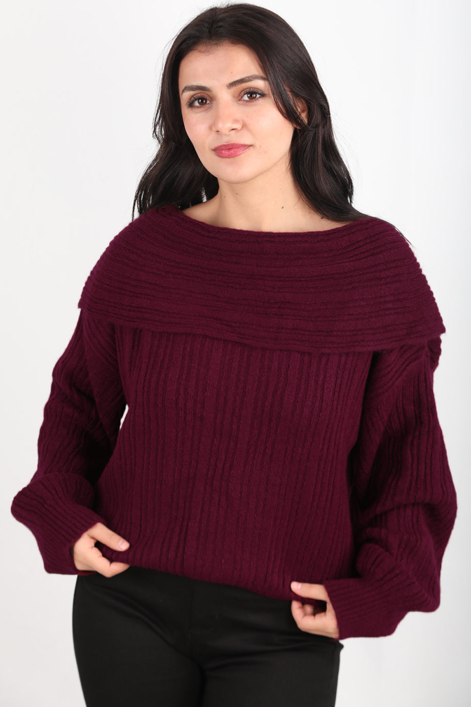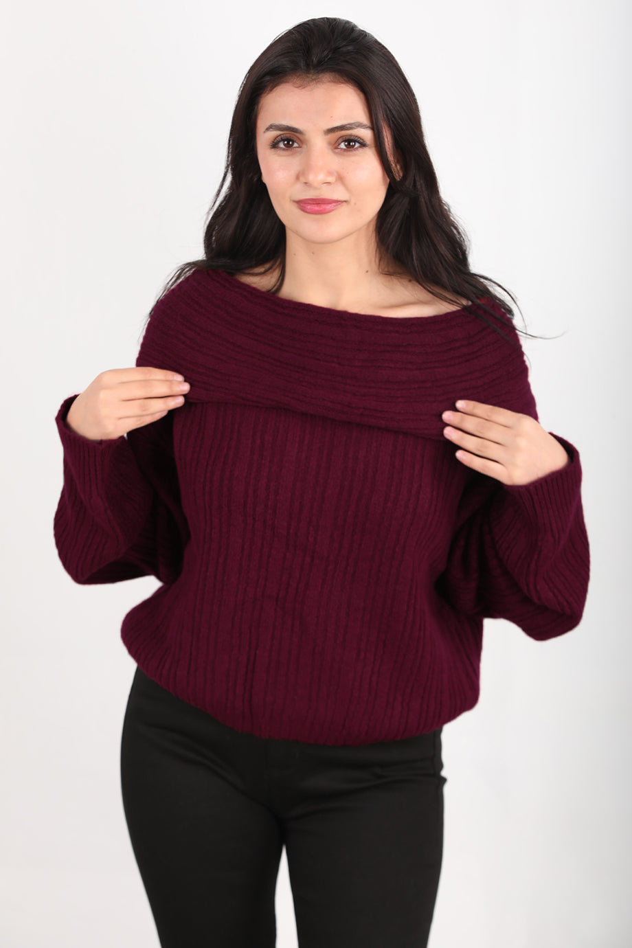 Offeria Kadın Madonna Yaka Kazak Bordo