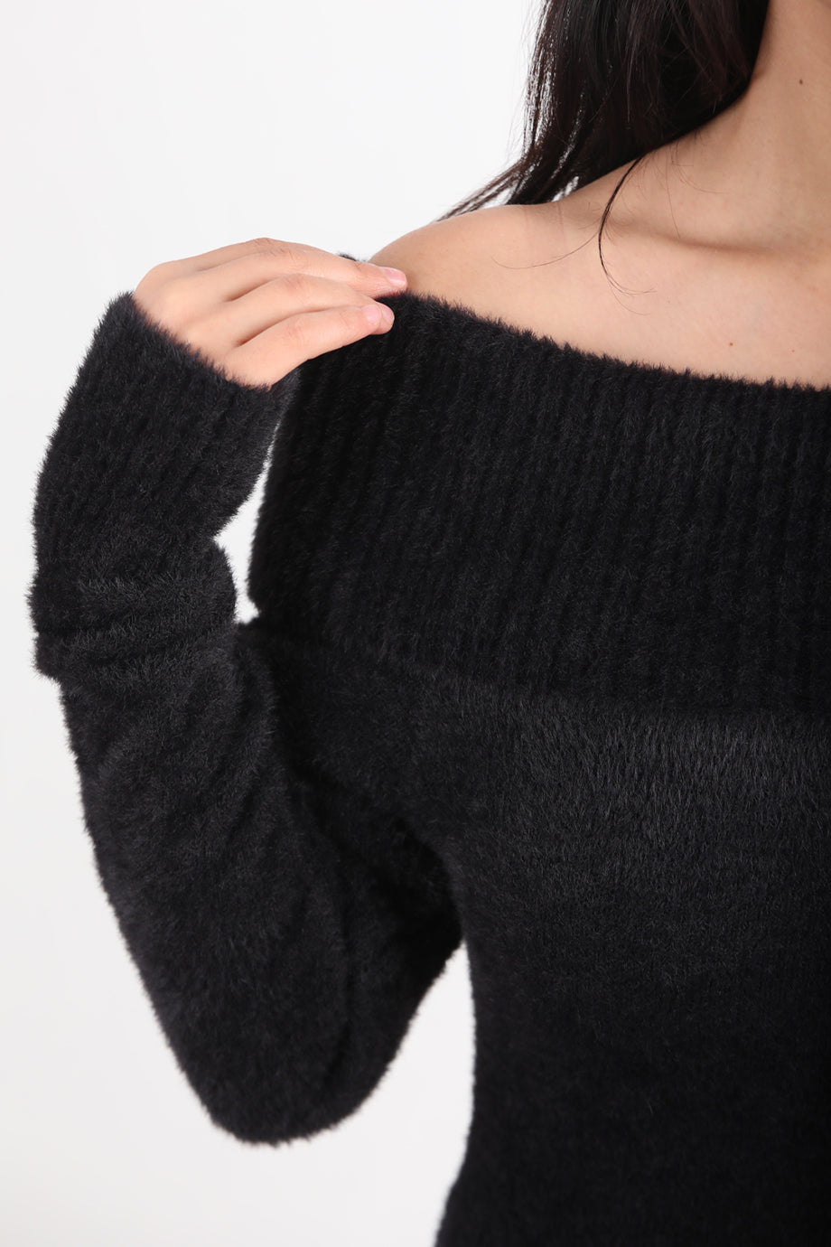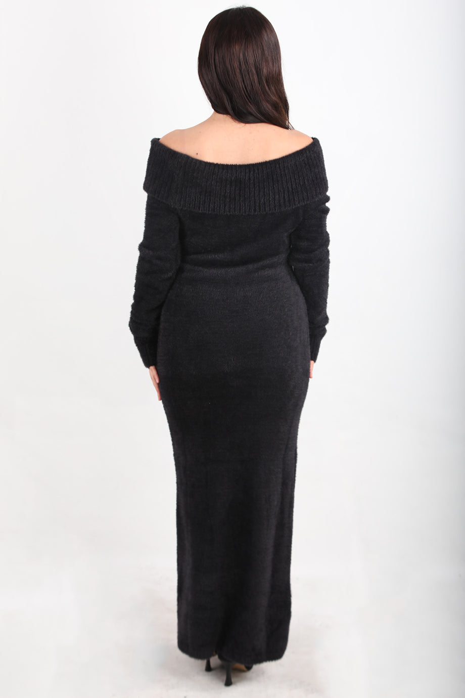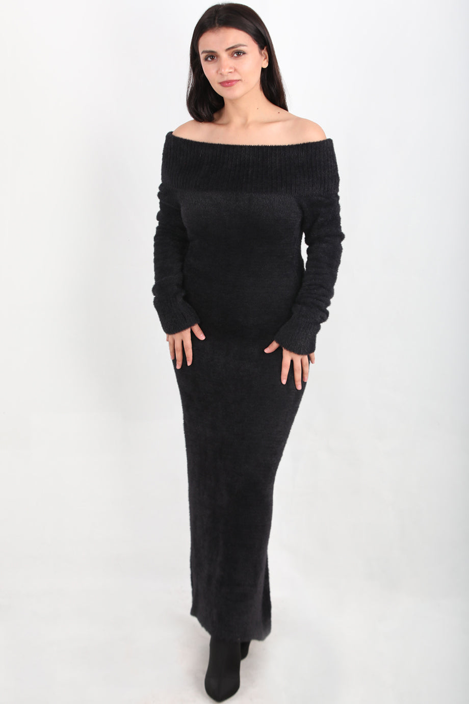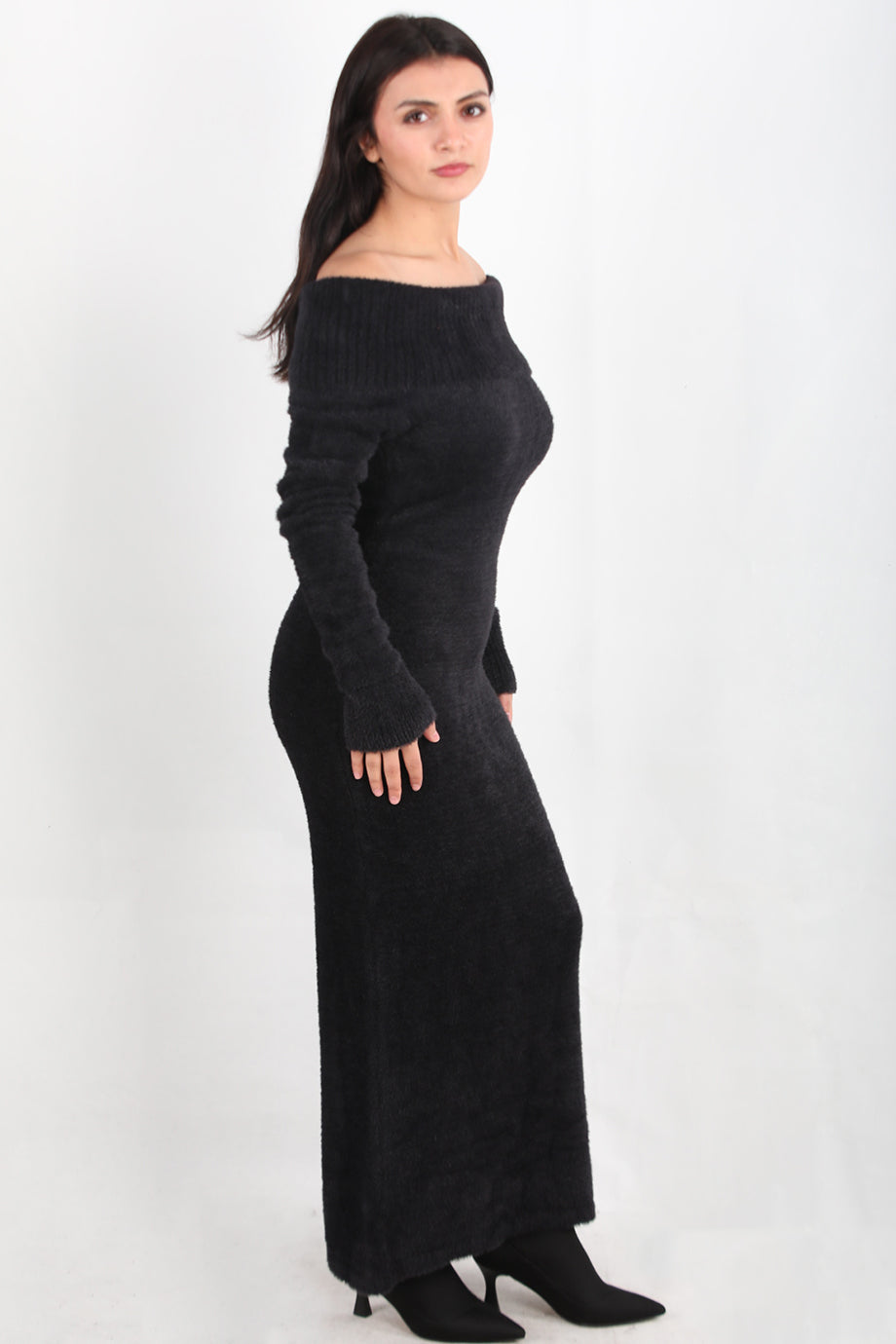 Bardot Kadın Madonna Yaka Sakallı Elbise Siyah