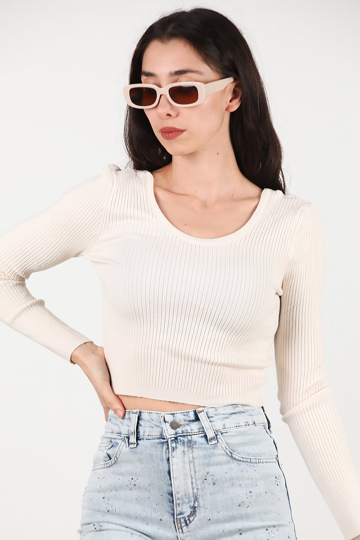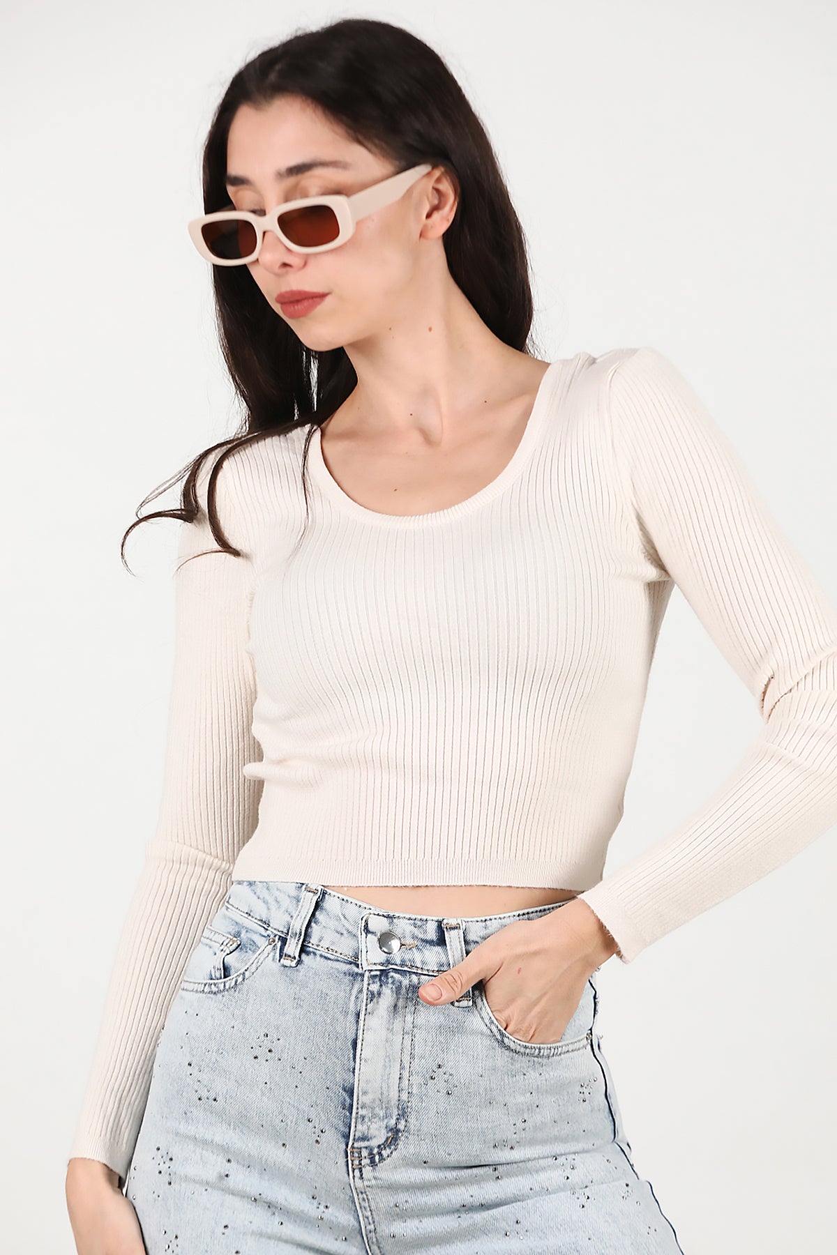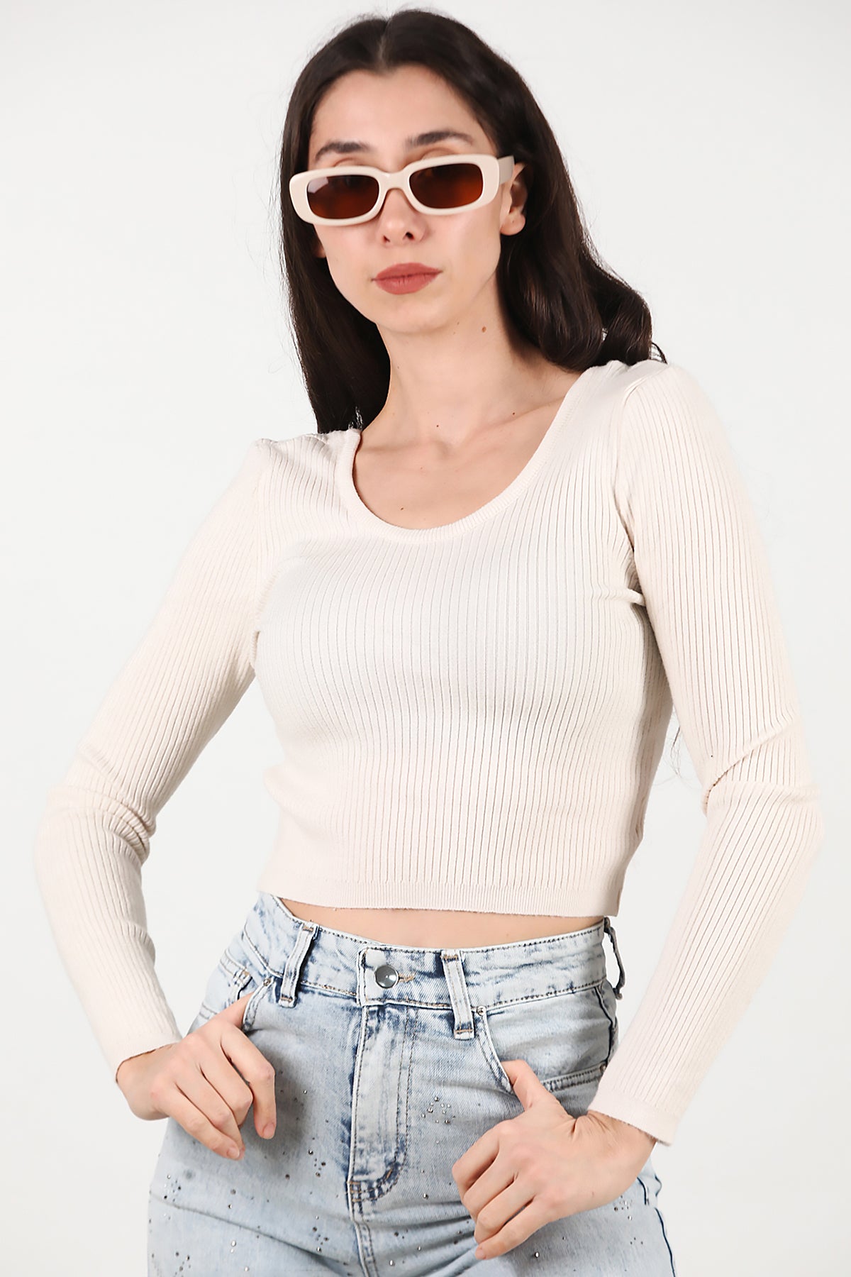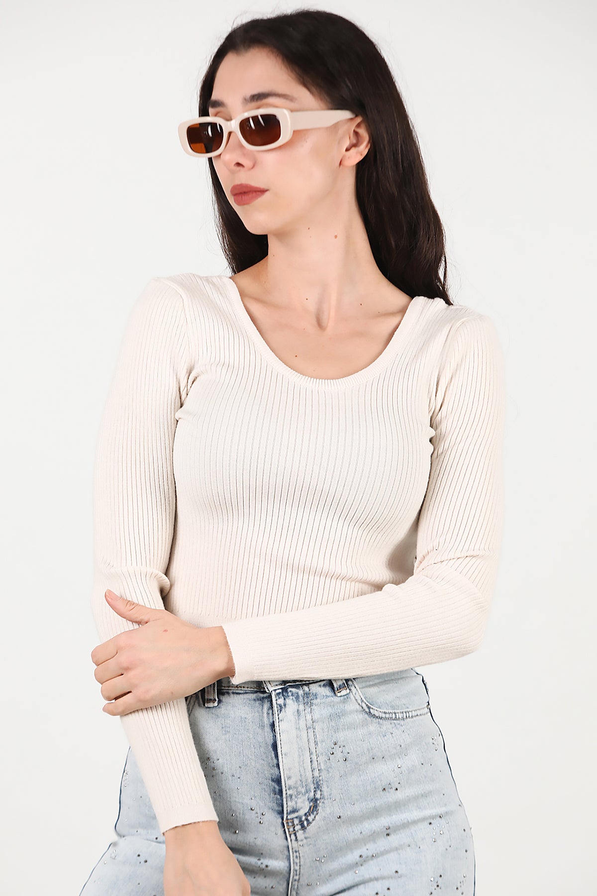 Kadın Triko Bluz Ekru