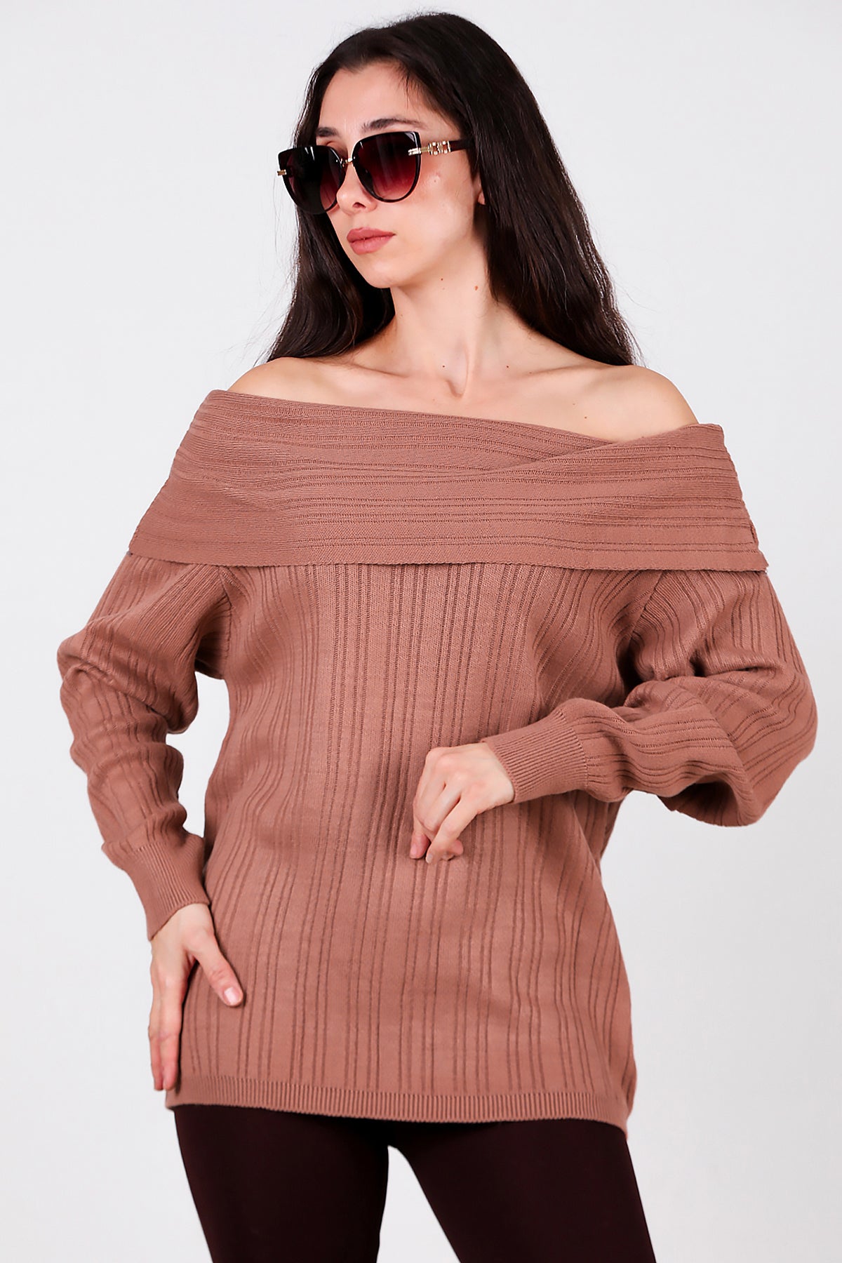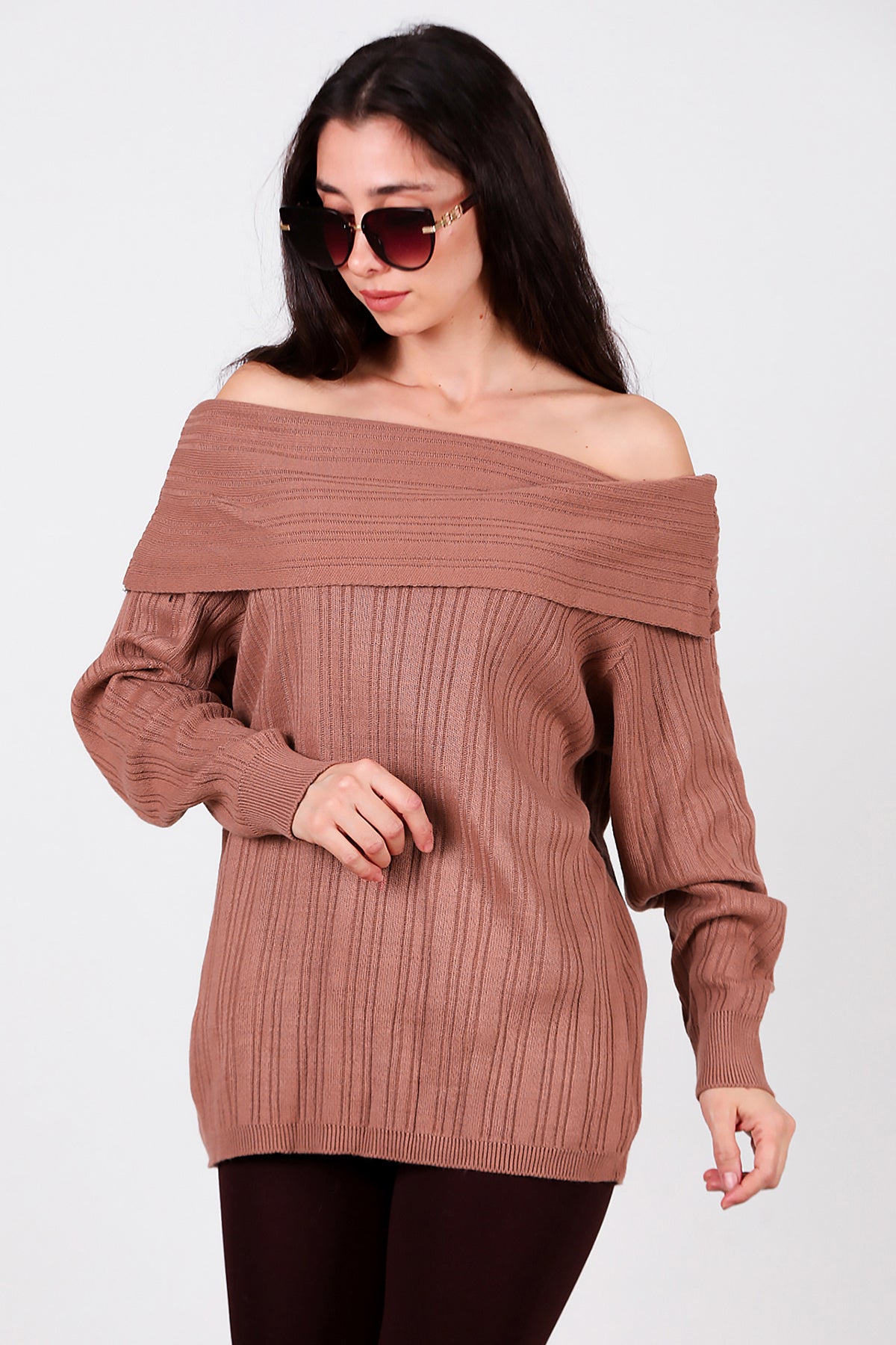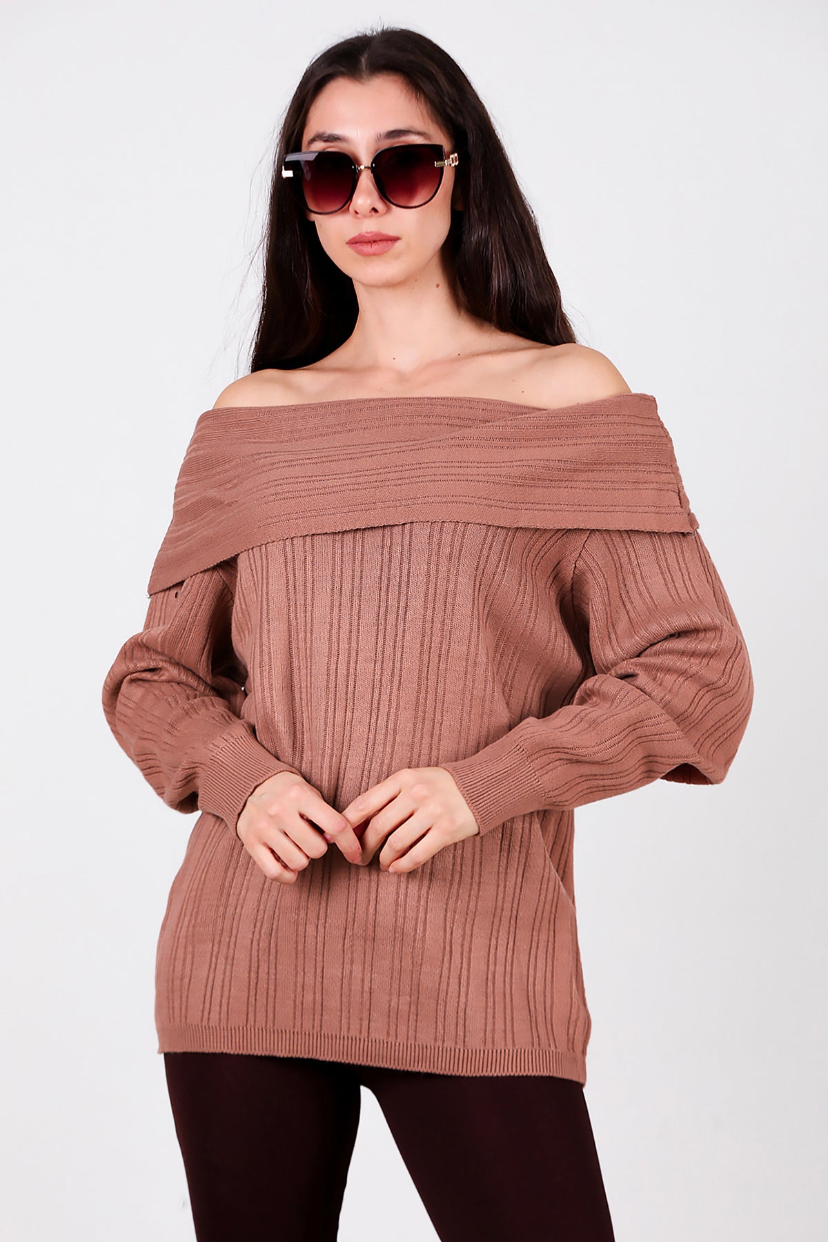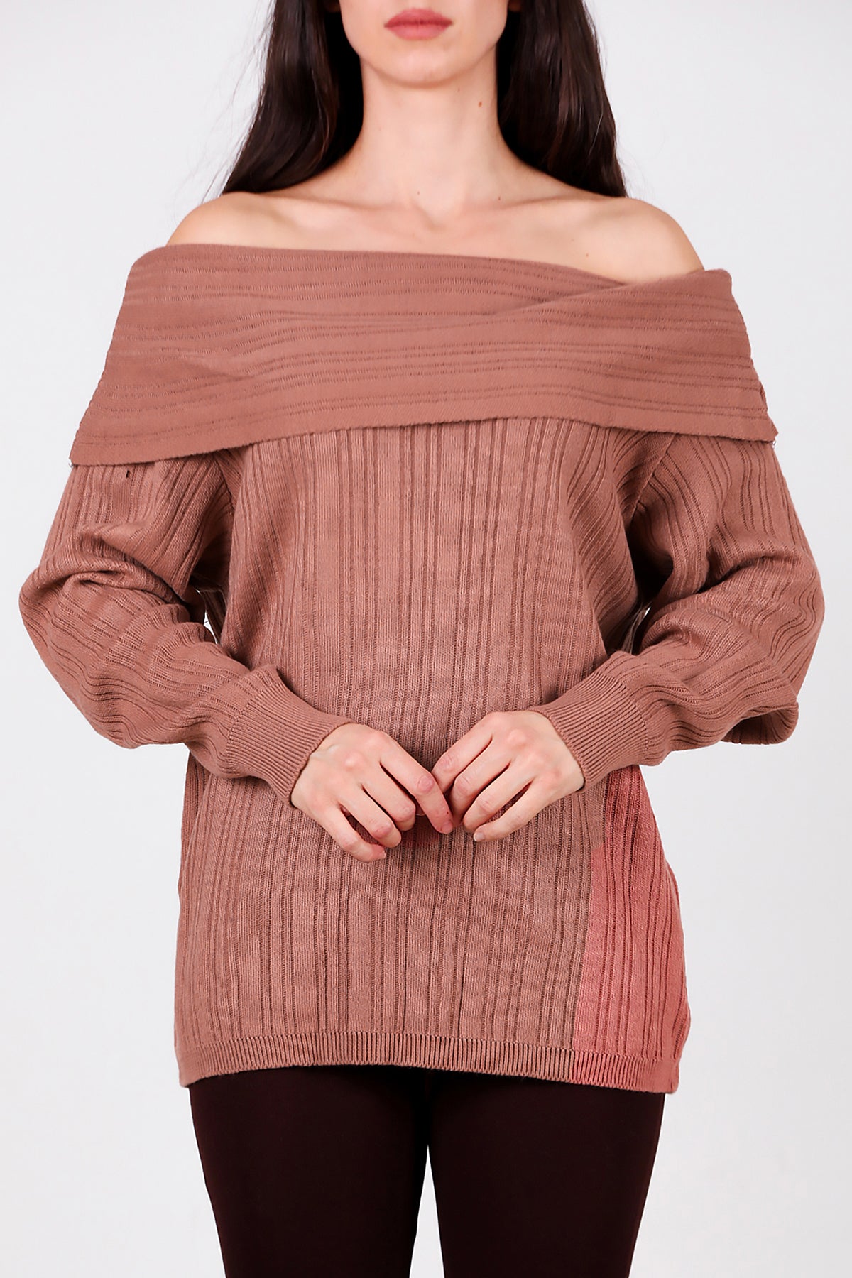 Kadın Madonna Yaka Triko Bluz Gül Kurusu