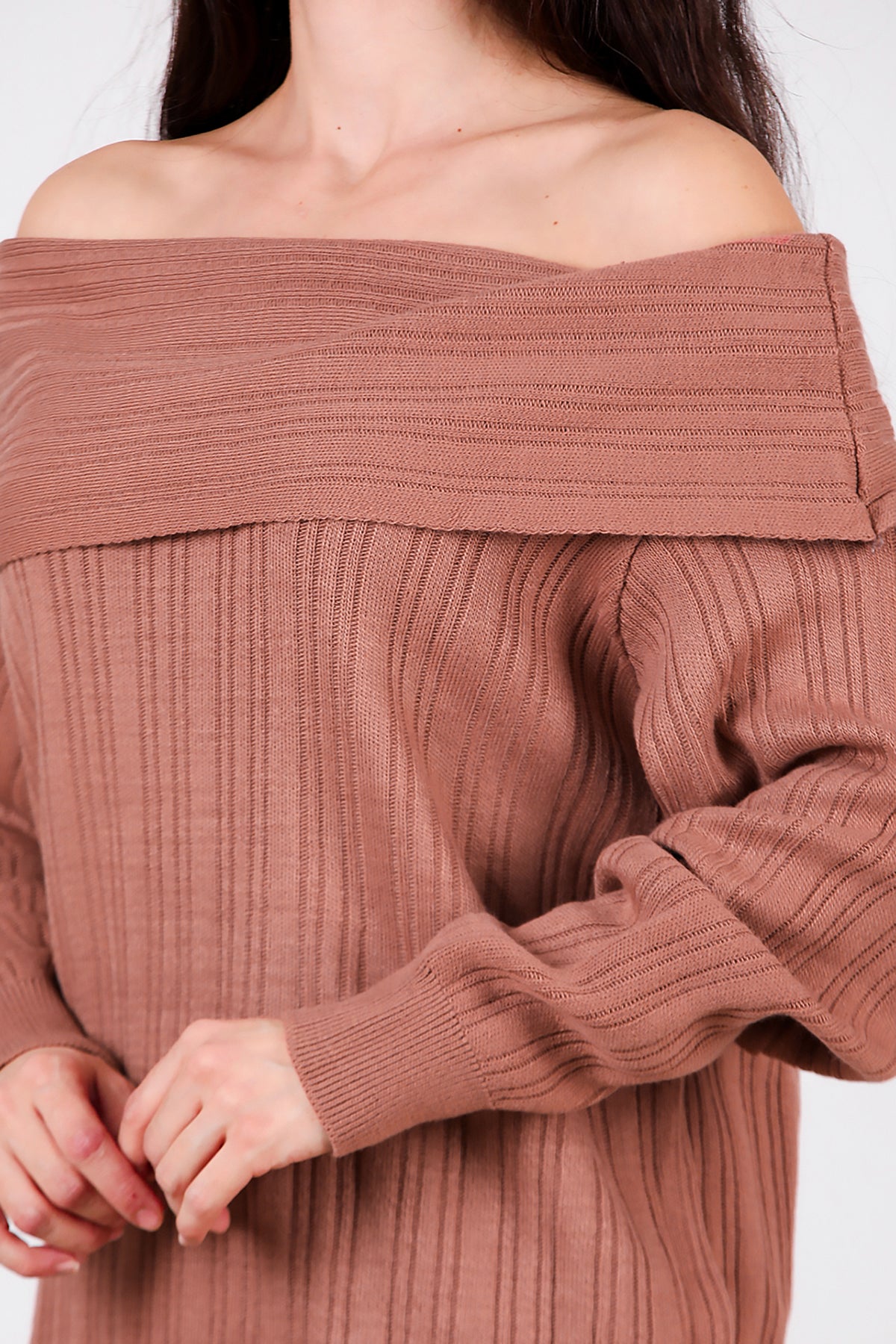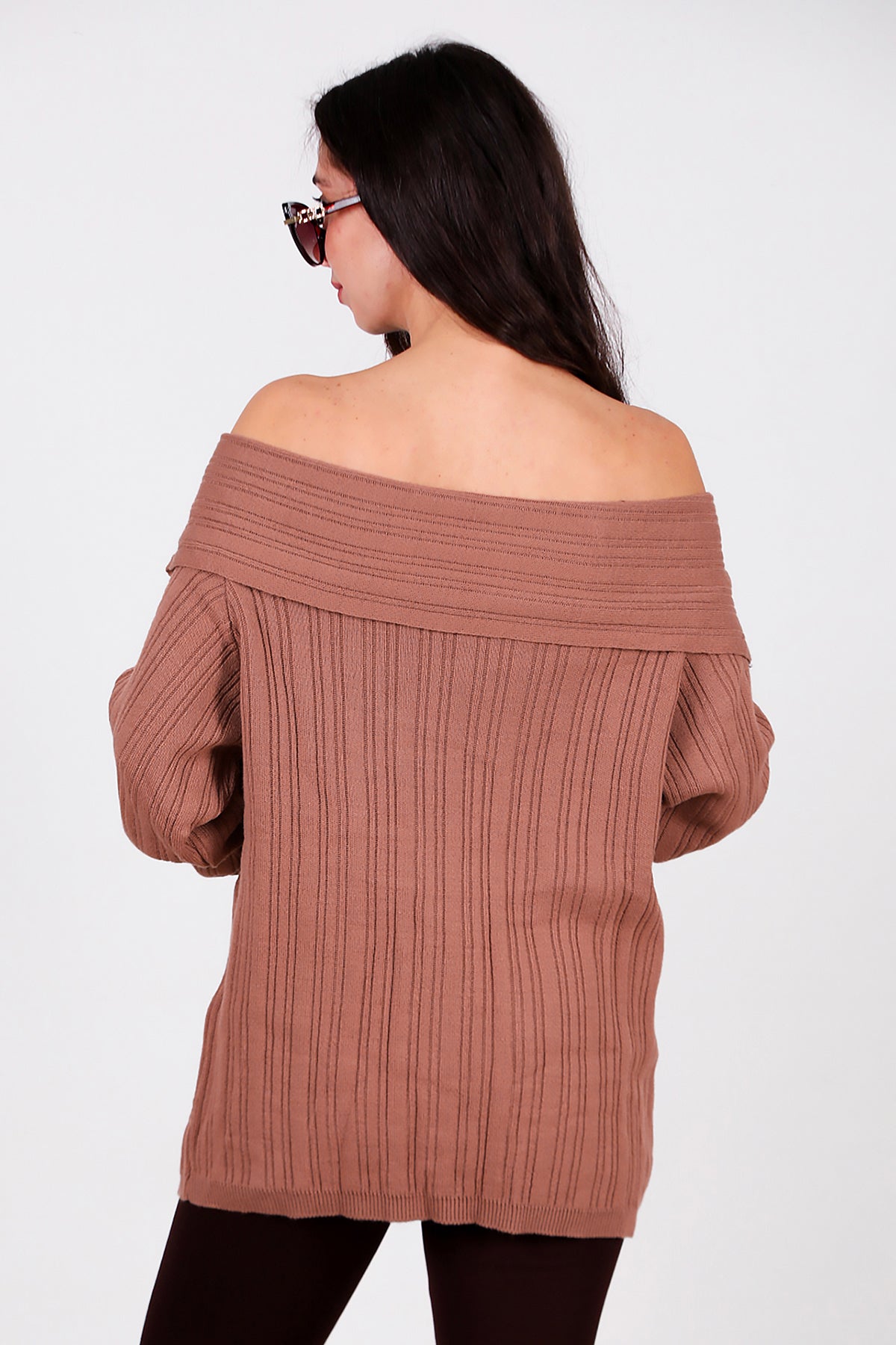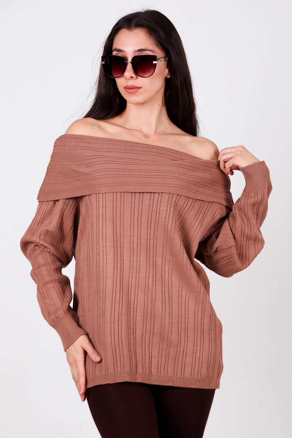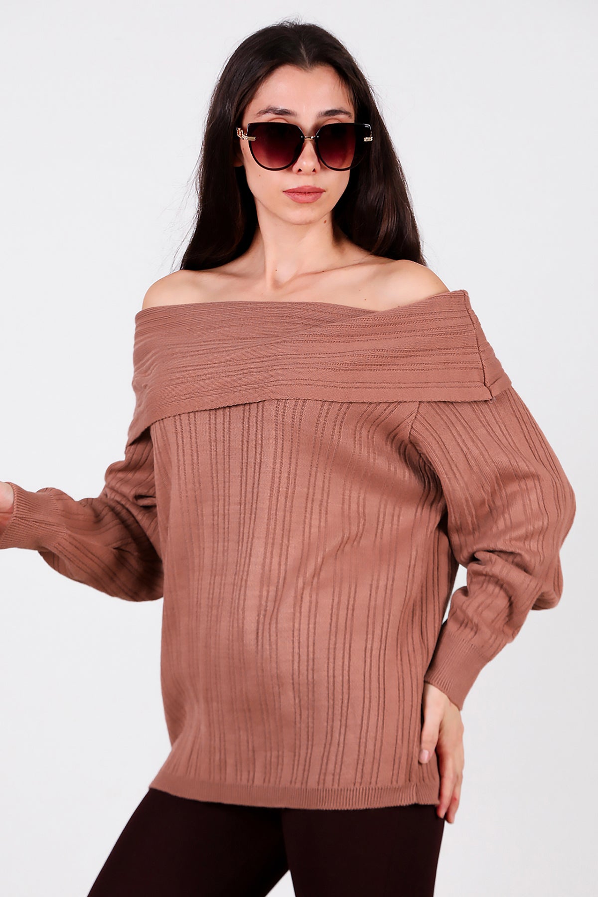Kadın Madonna Yaka Triko Bluz Gül Kurusu
