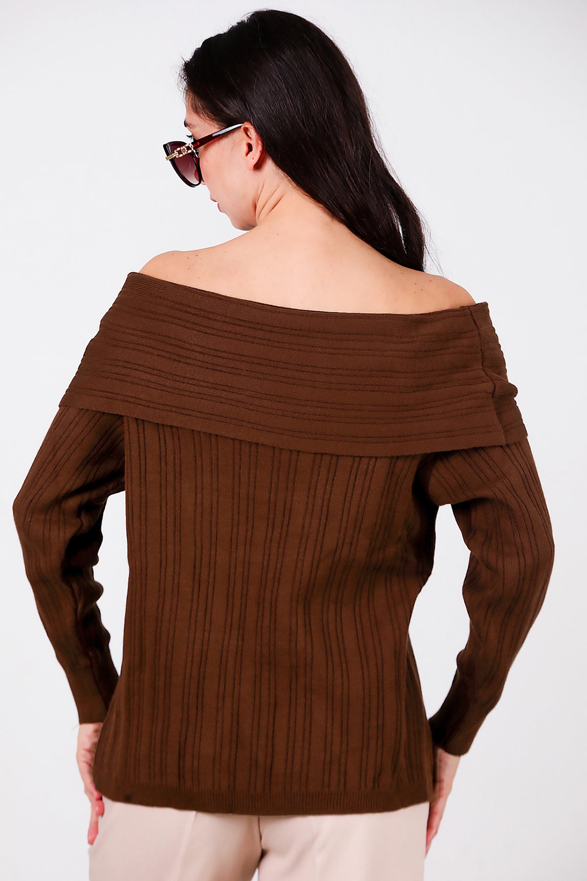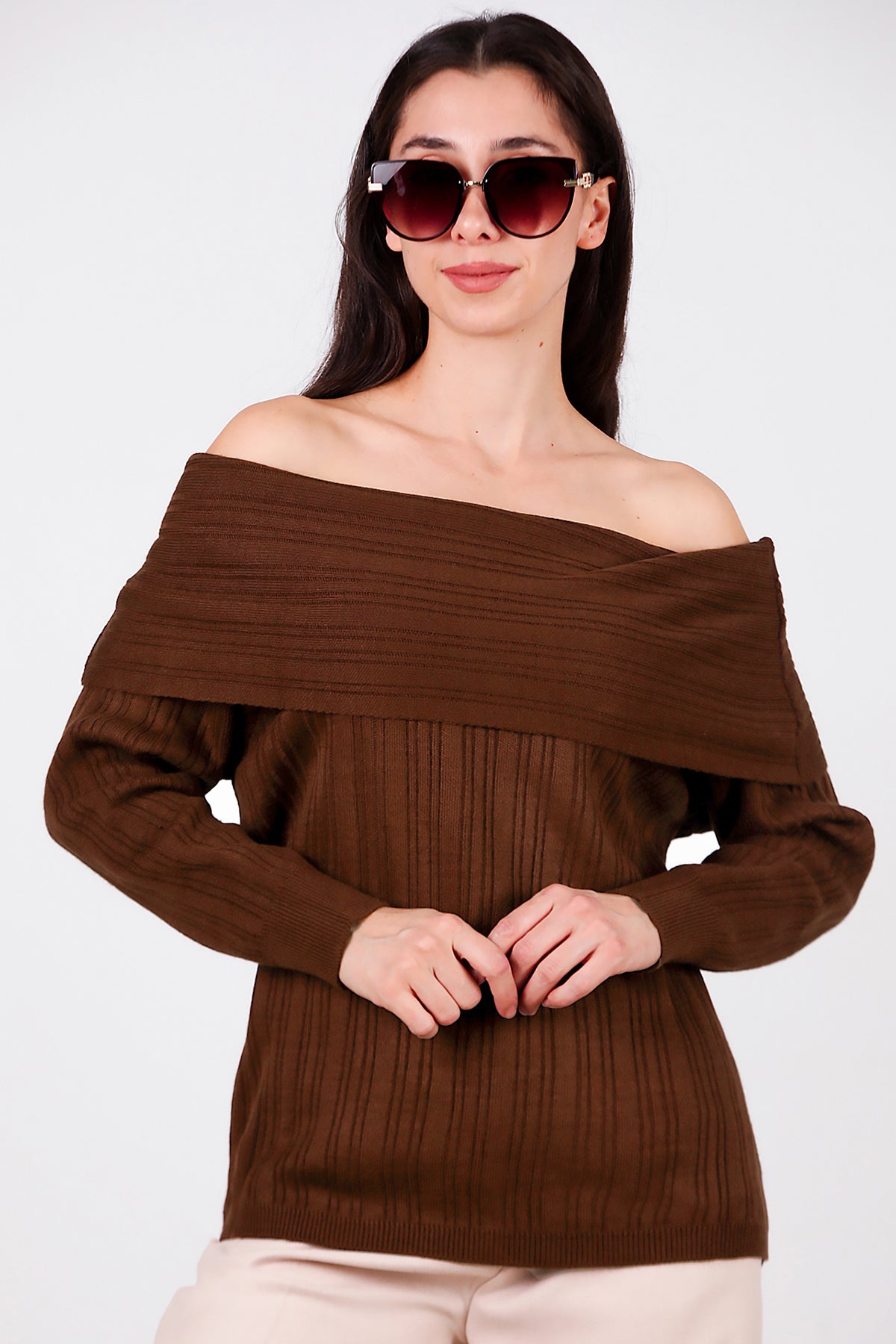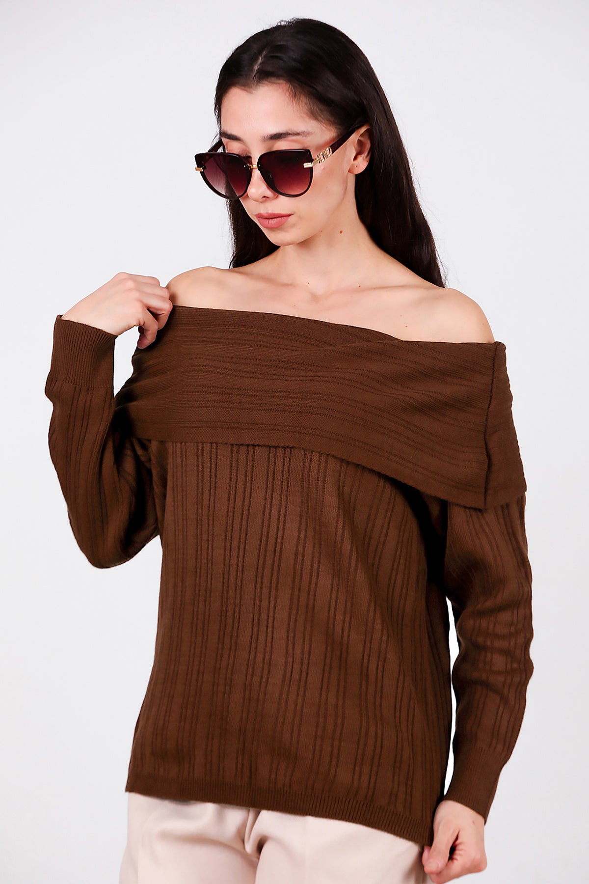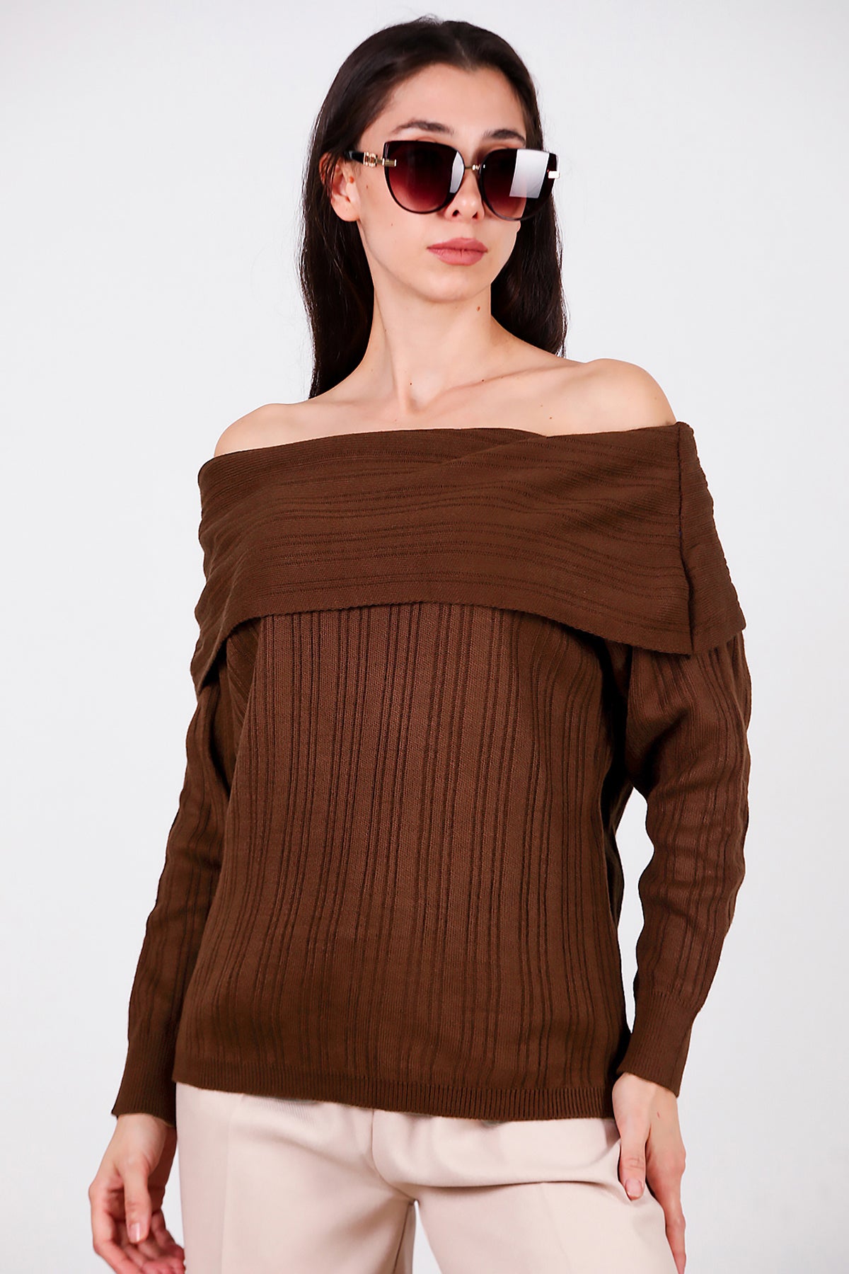Kadın Madonna Yaka Triko Bluz Kahverengi