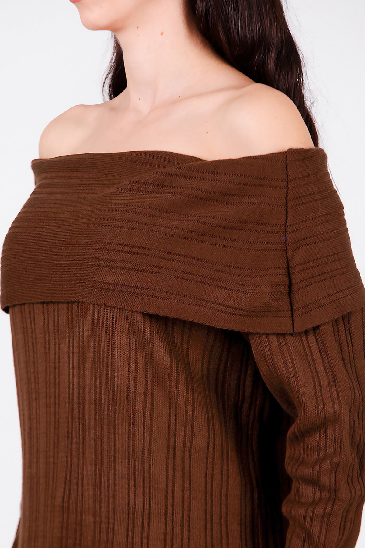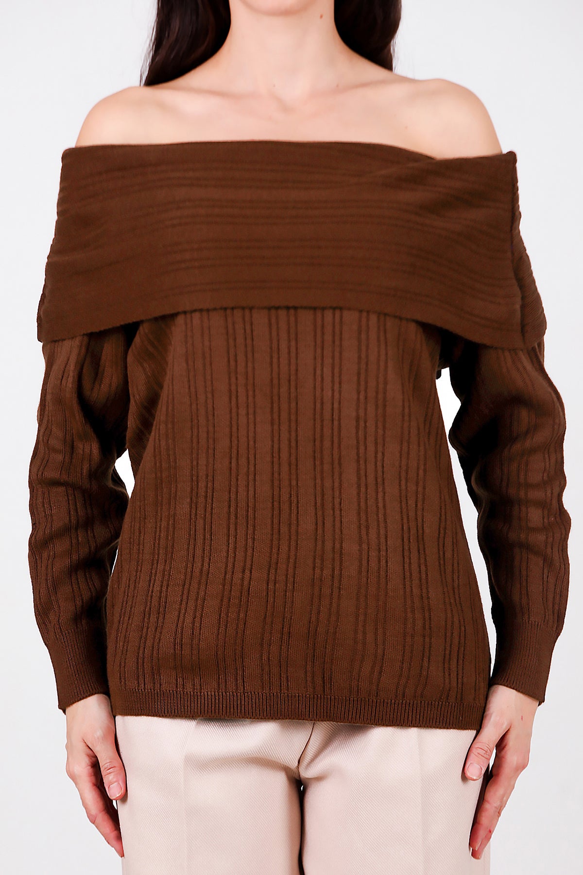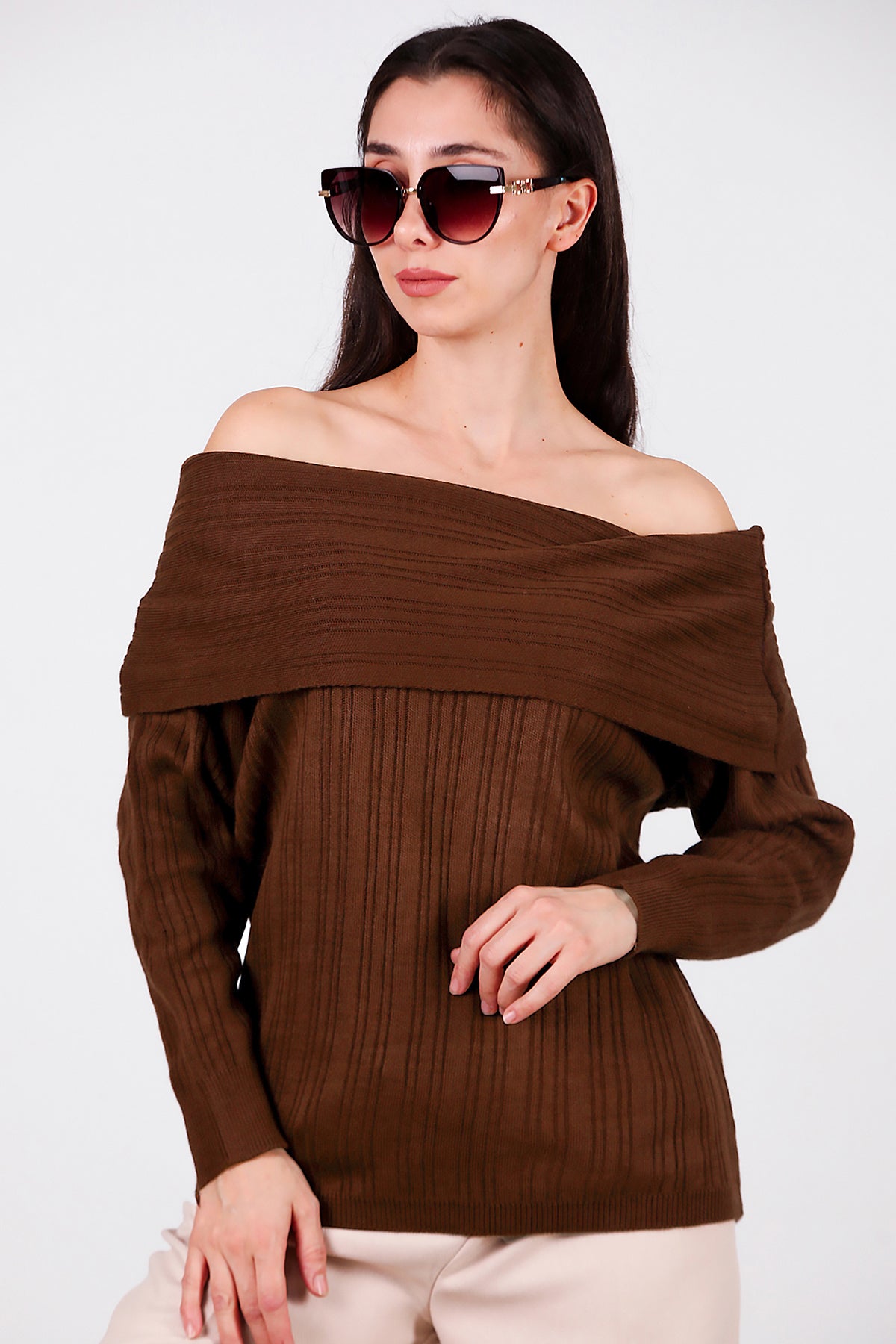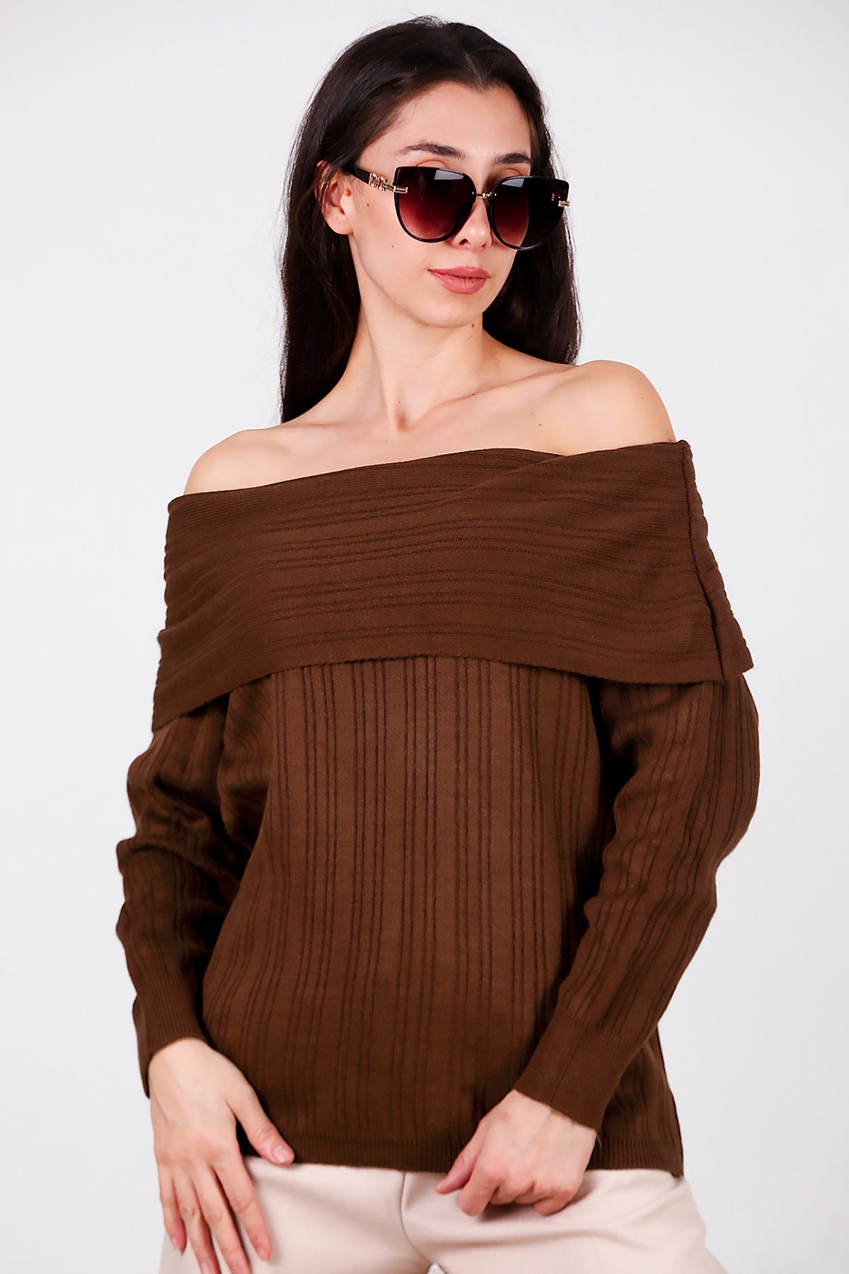 Kadın Madonna Yaka Triko Bluz Kahverengi