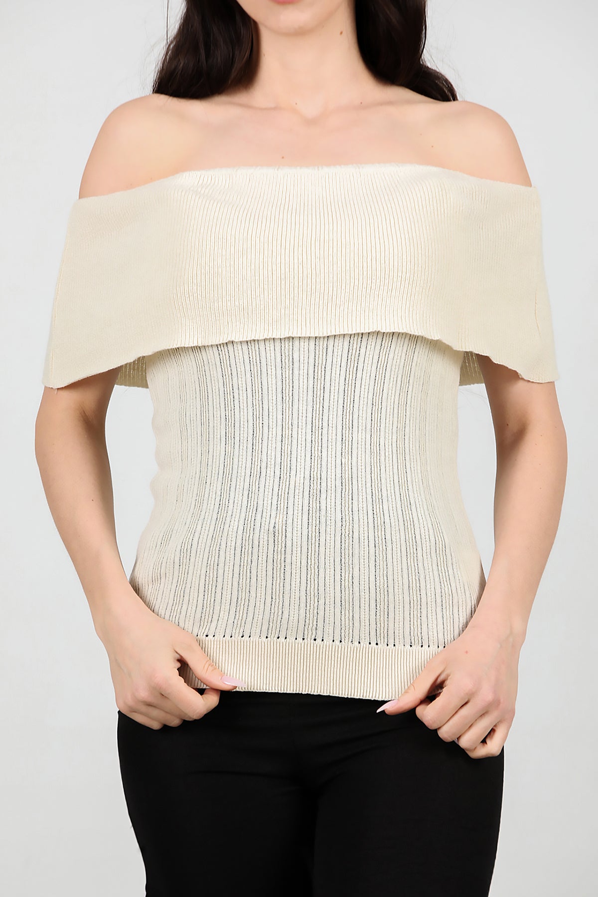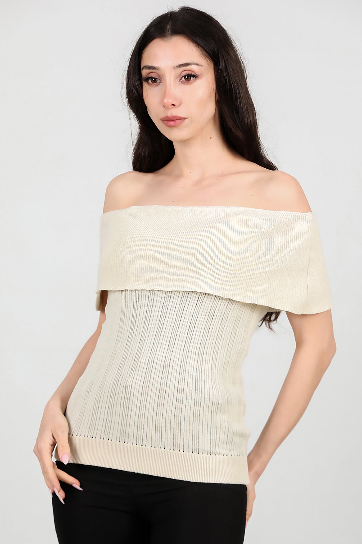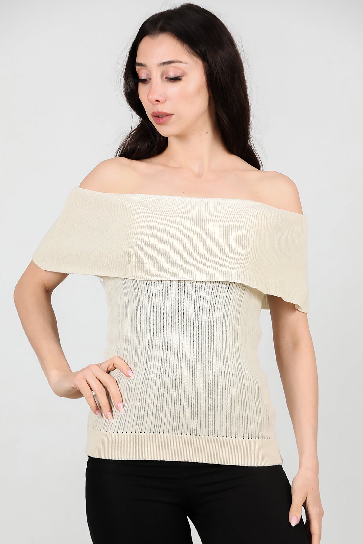 Kadın Madonna Yaka Triko Taş