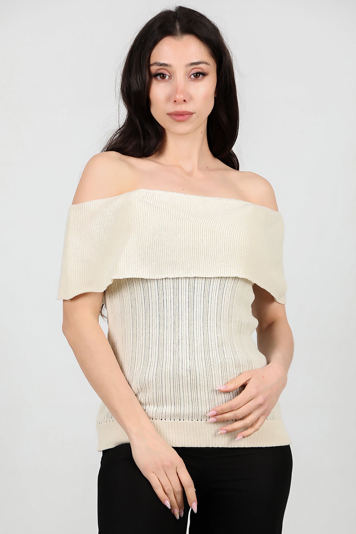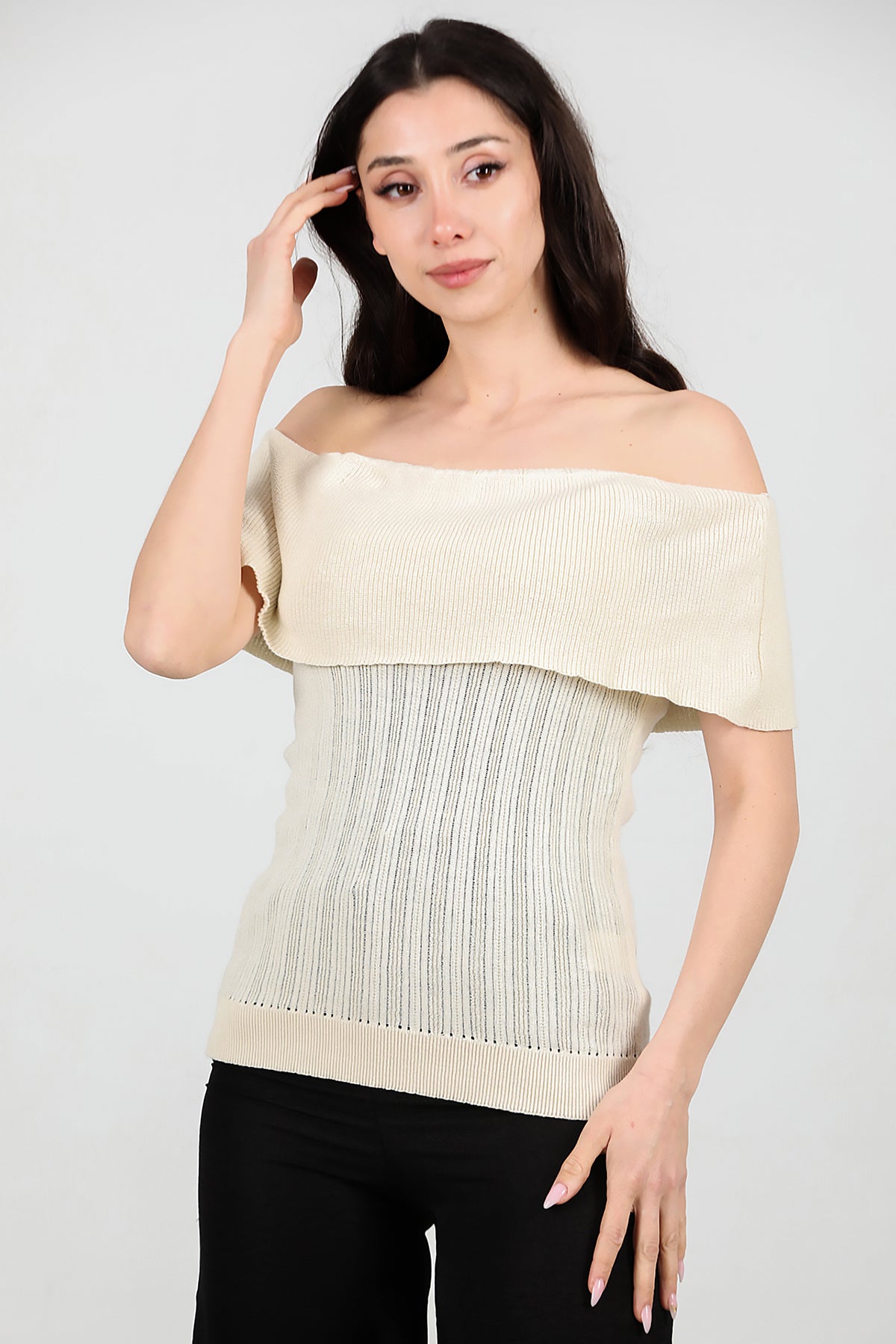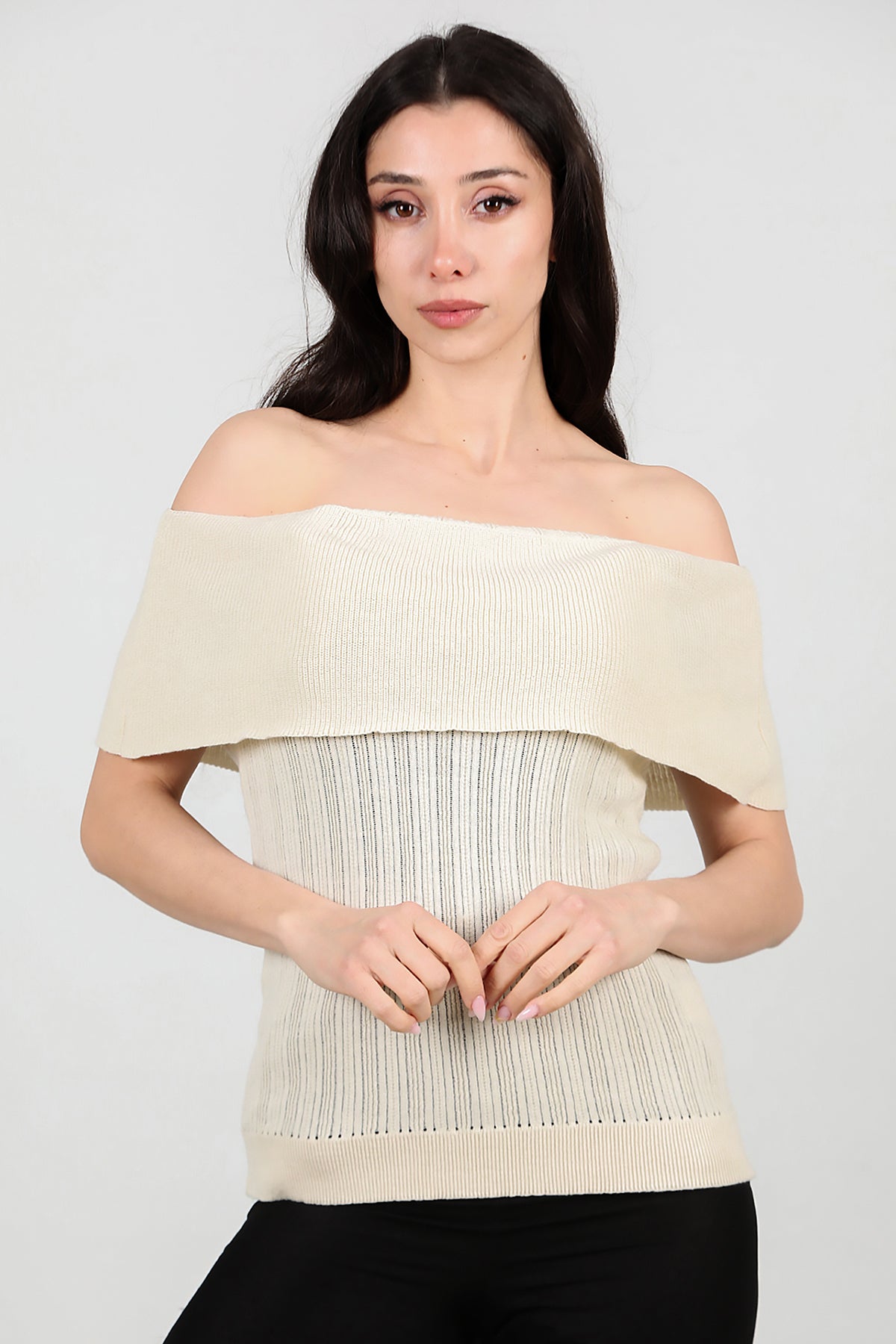 Kadın Madonna Yaka Triko Taş