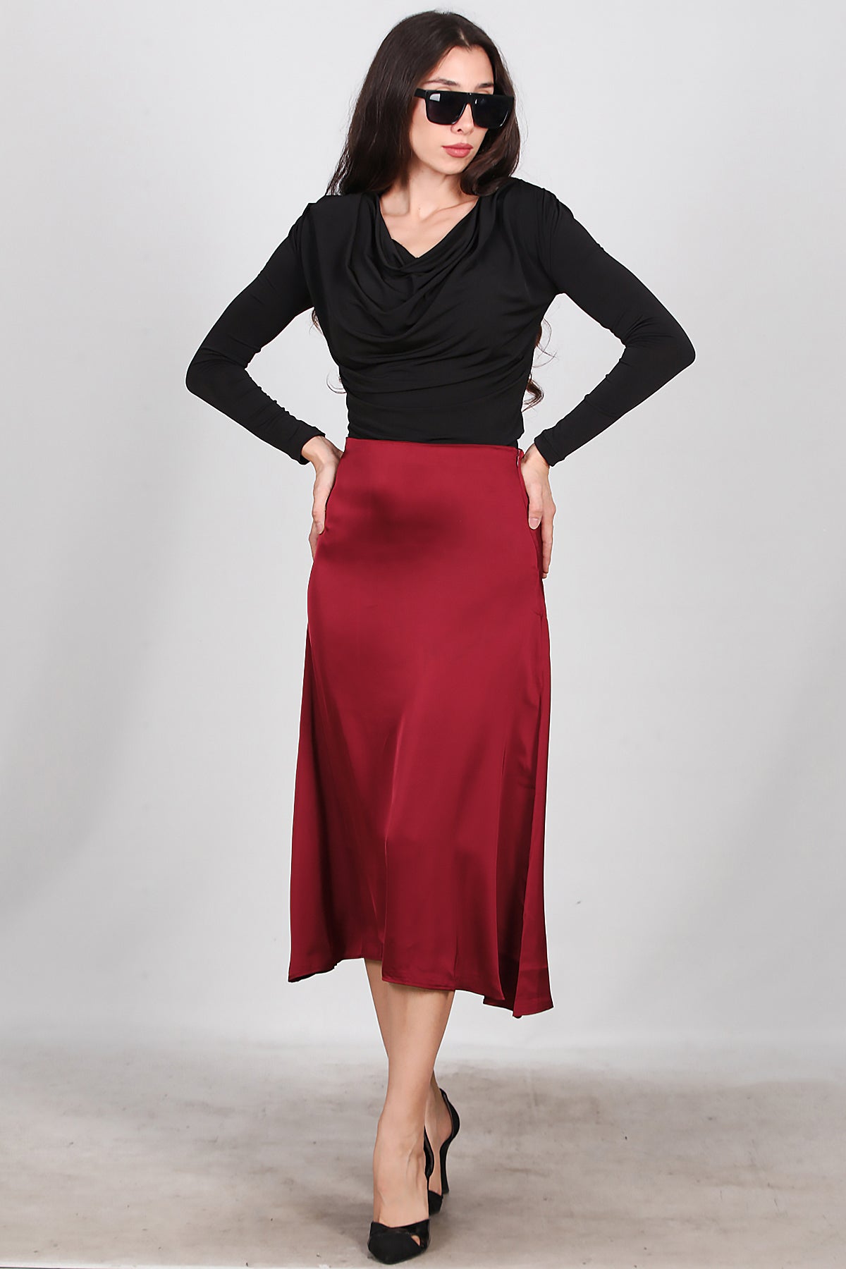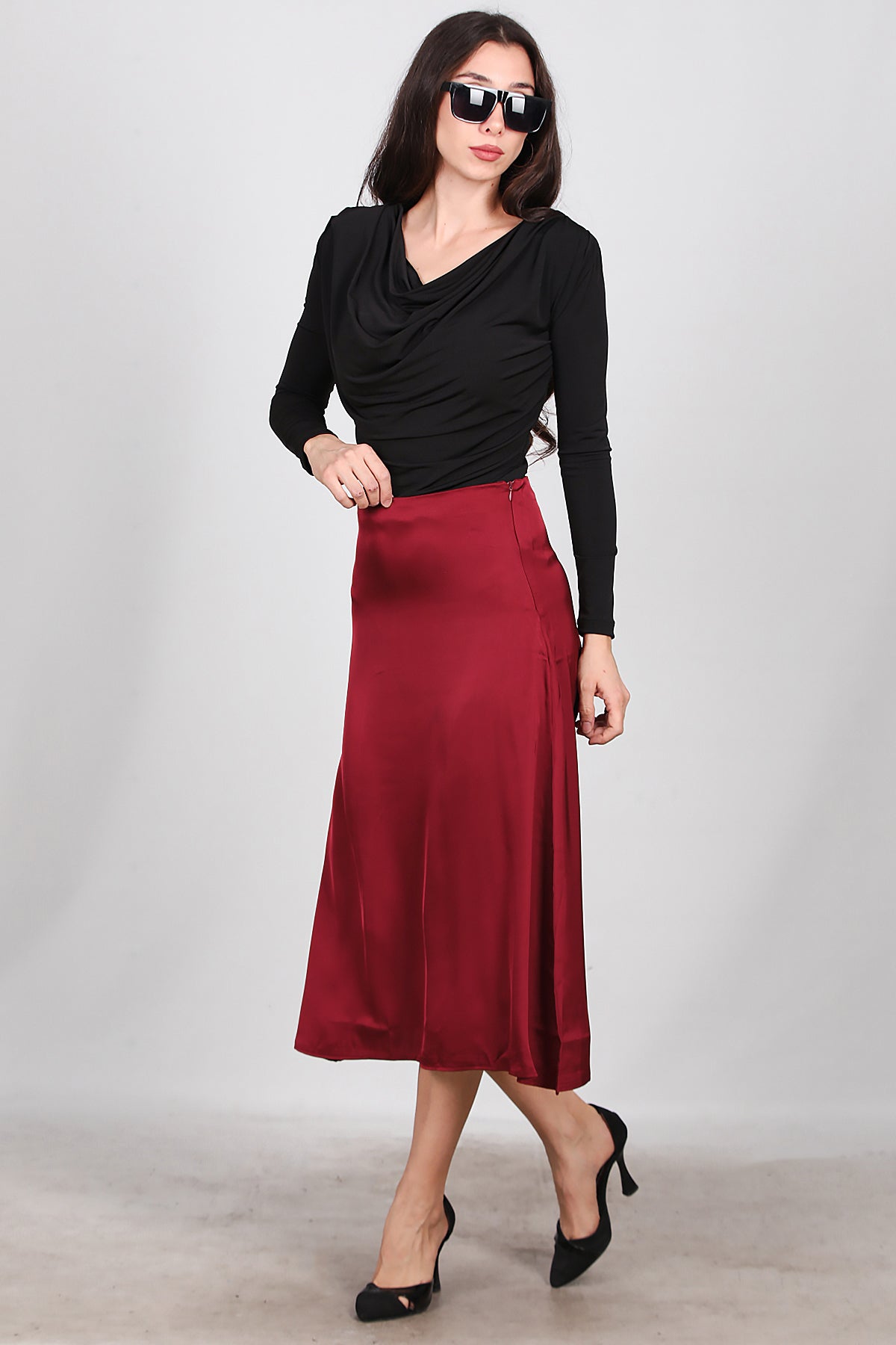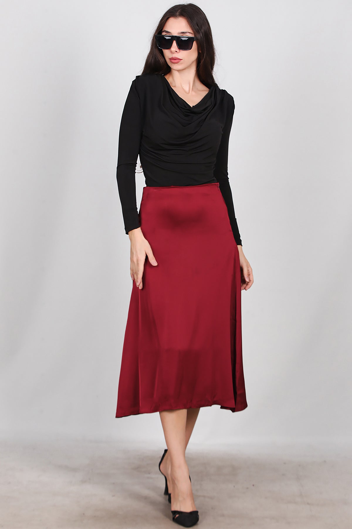 Kadın Midi Boy Çan Etek Bordo