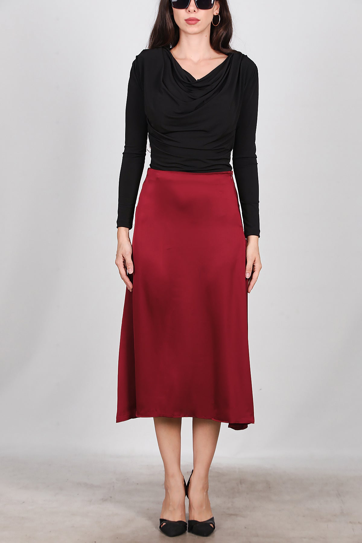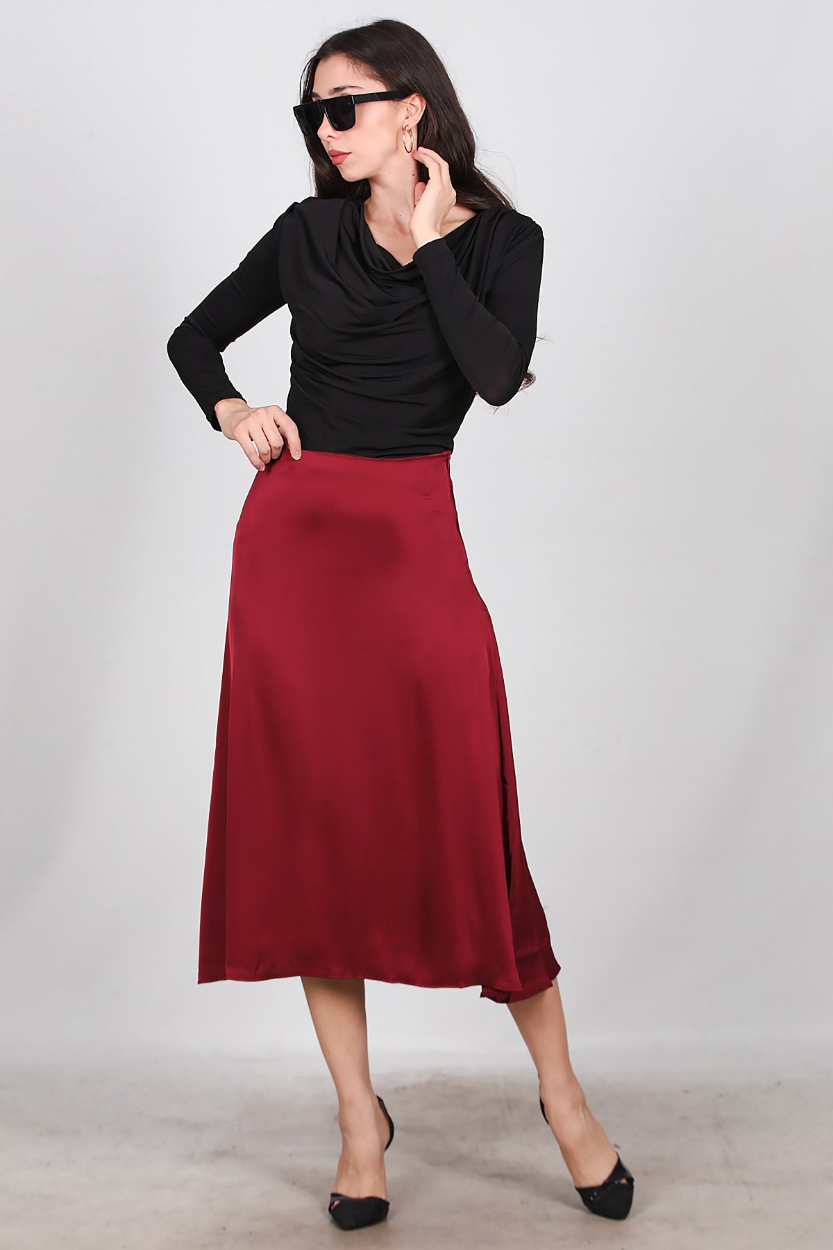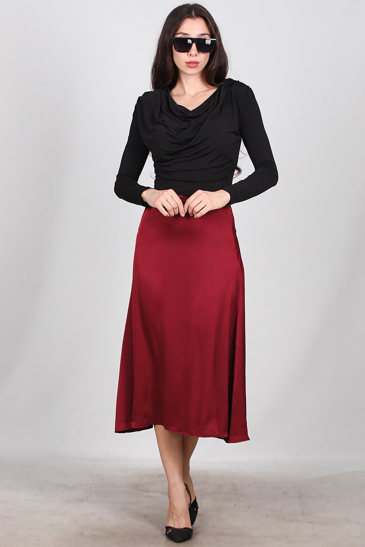 Kadın Midi Boy Çan Etek Bordo