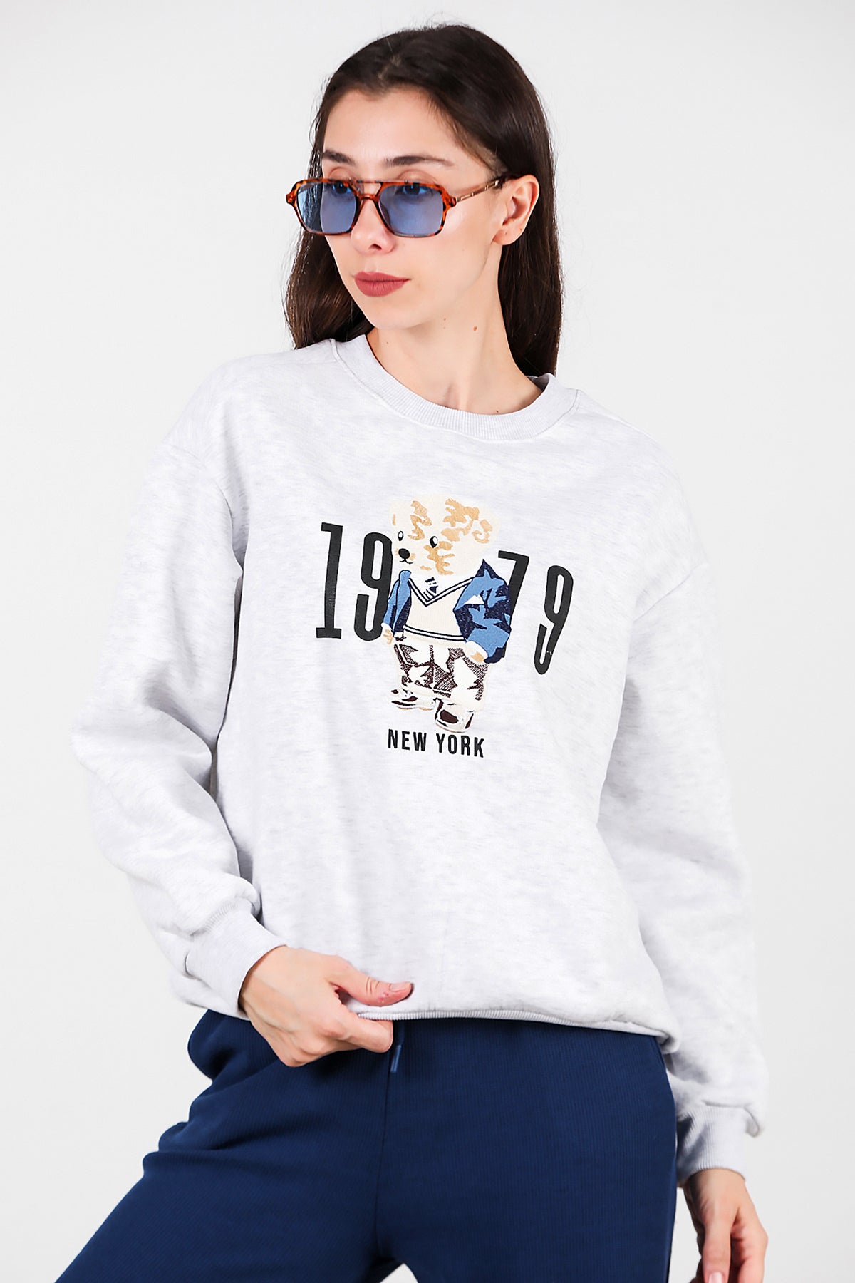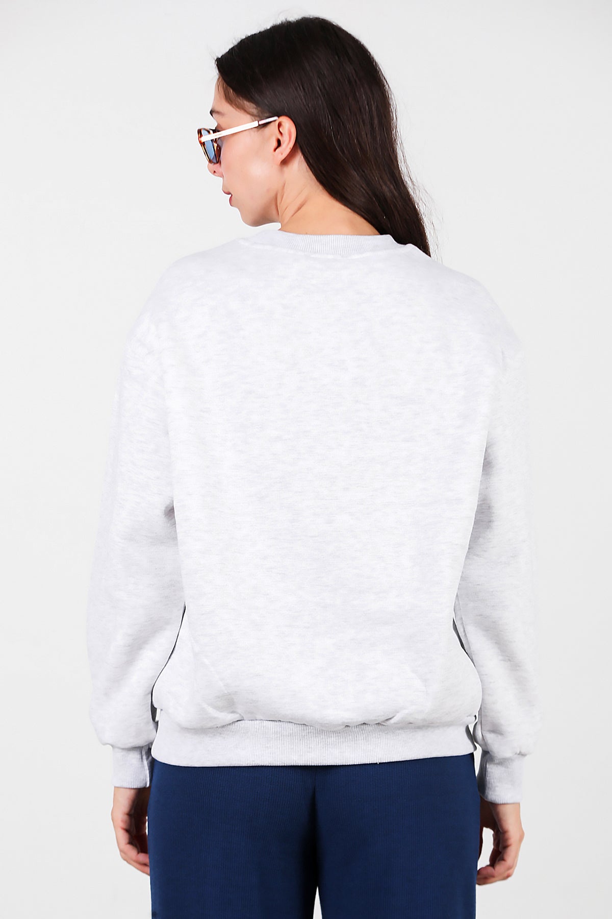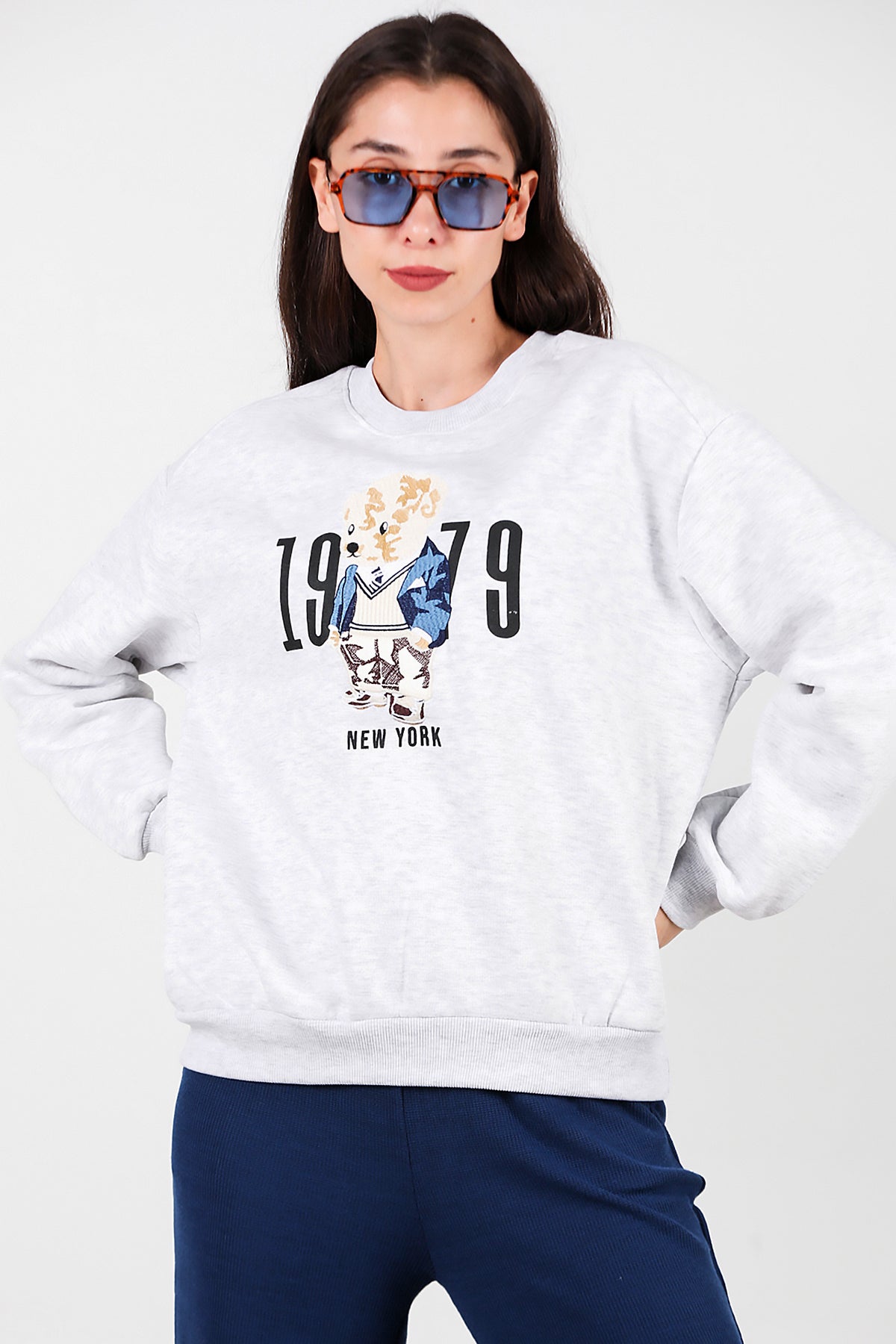 Kadın Nakışlı Şardonlu Bisiklet Yaka Sweat Gri