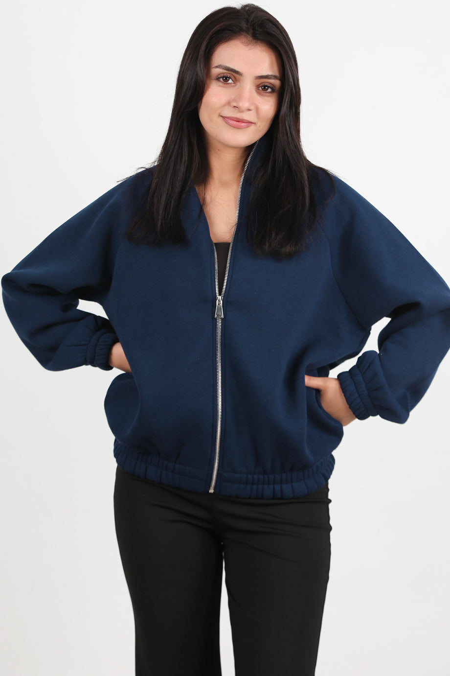 Flexjacket Kadın Ön Fermuarlı Dik Yaka Bel Lastikli Ceket Lacivert