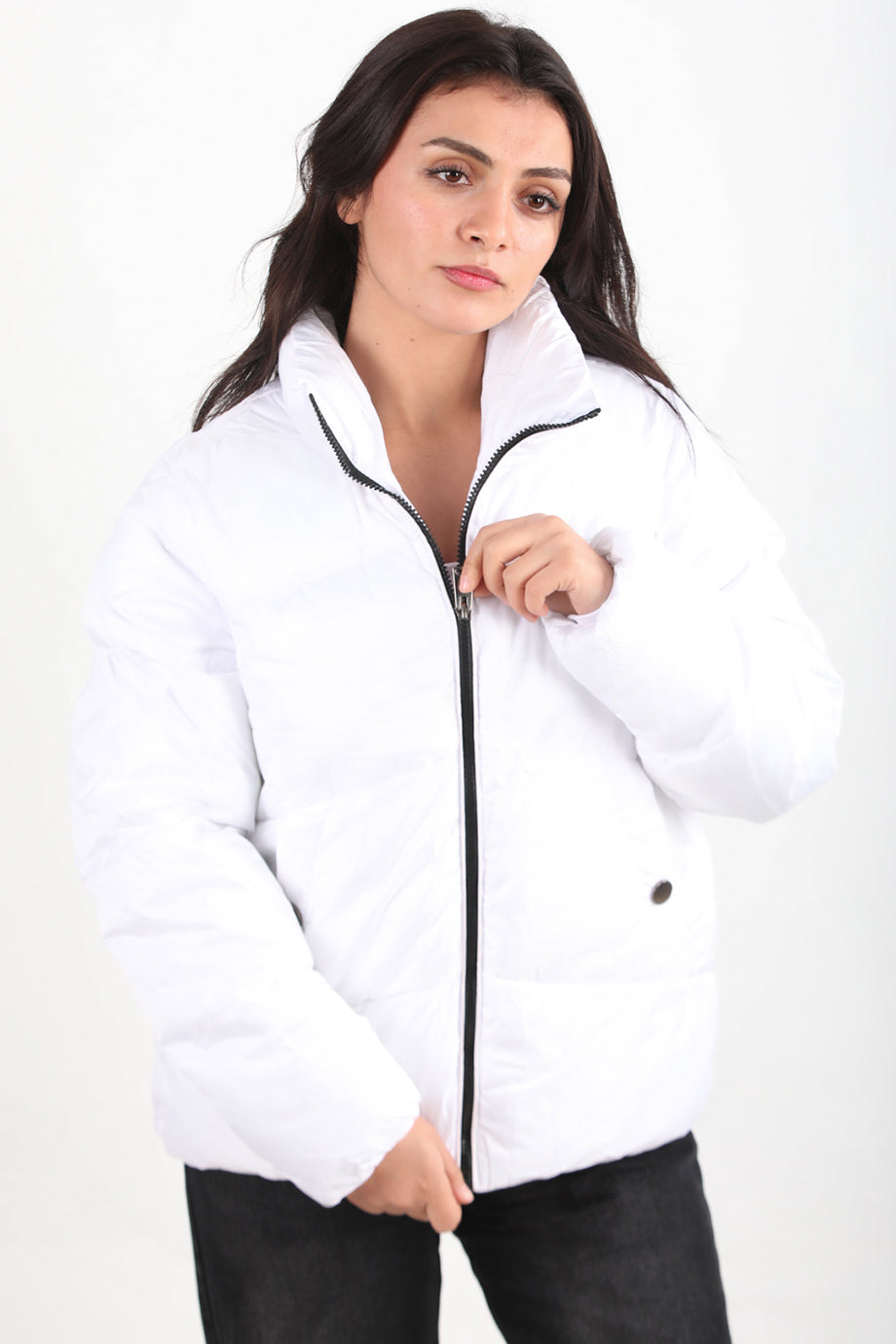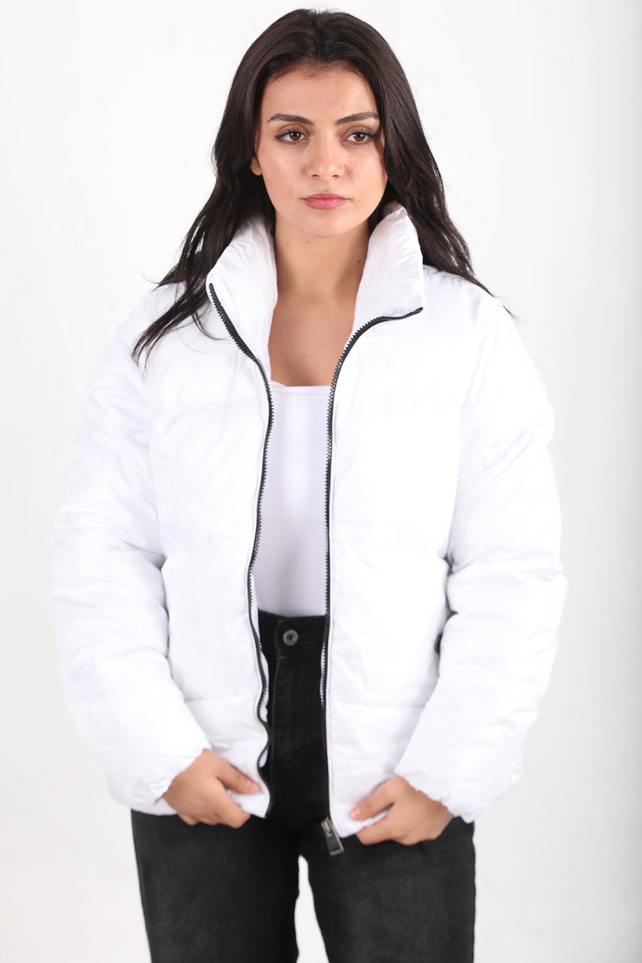 Snowra Kadın Ön Fermuarlı Şişme Mont Beyaz