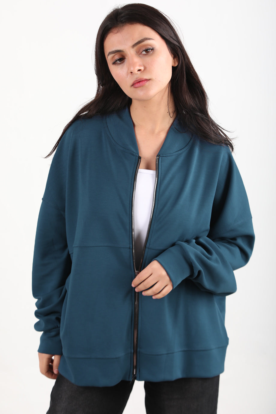 Ziphoodie Kadın Ön Fermuarlı Sweat İndigo