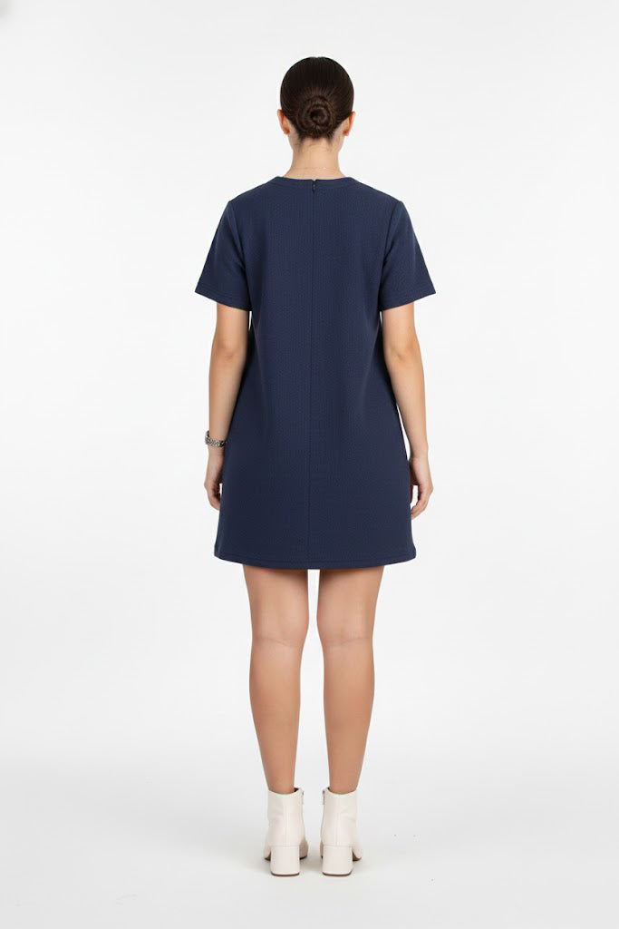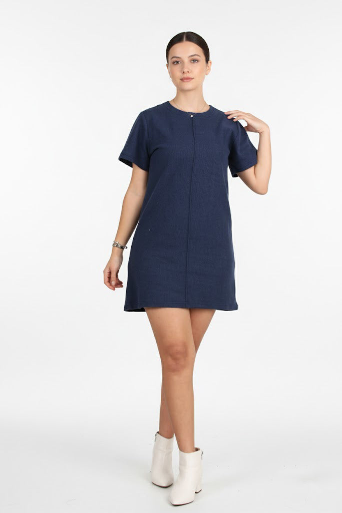 Ribfit Kadın Önü Çimalı Fitilli Elbise Lacivert