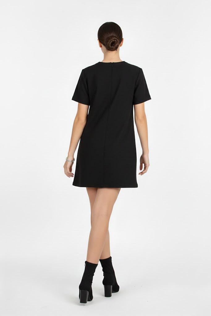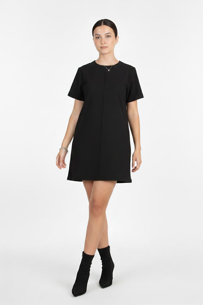Ribfit Kadın Önü Çimalı Fitilli Elbise Siyah