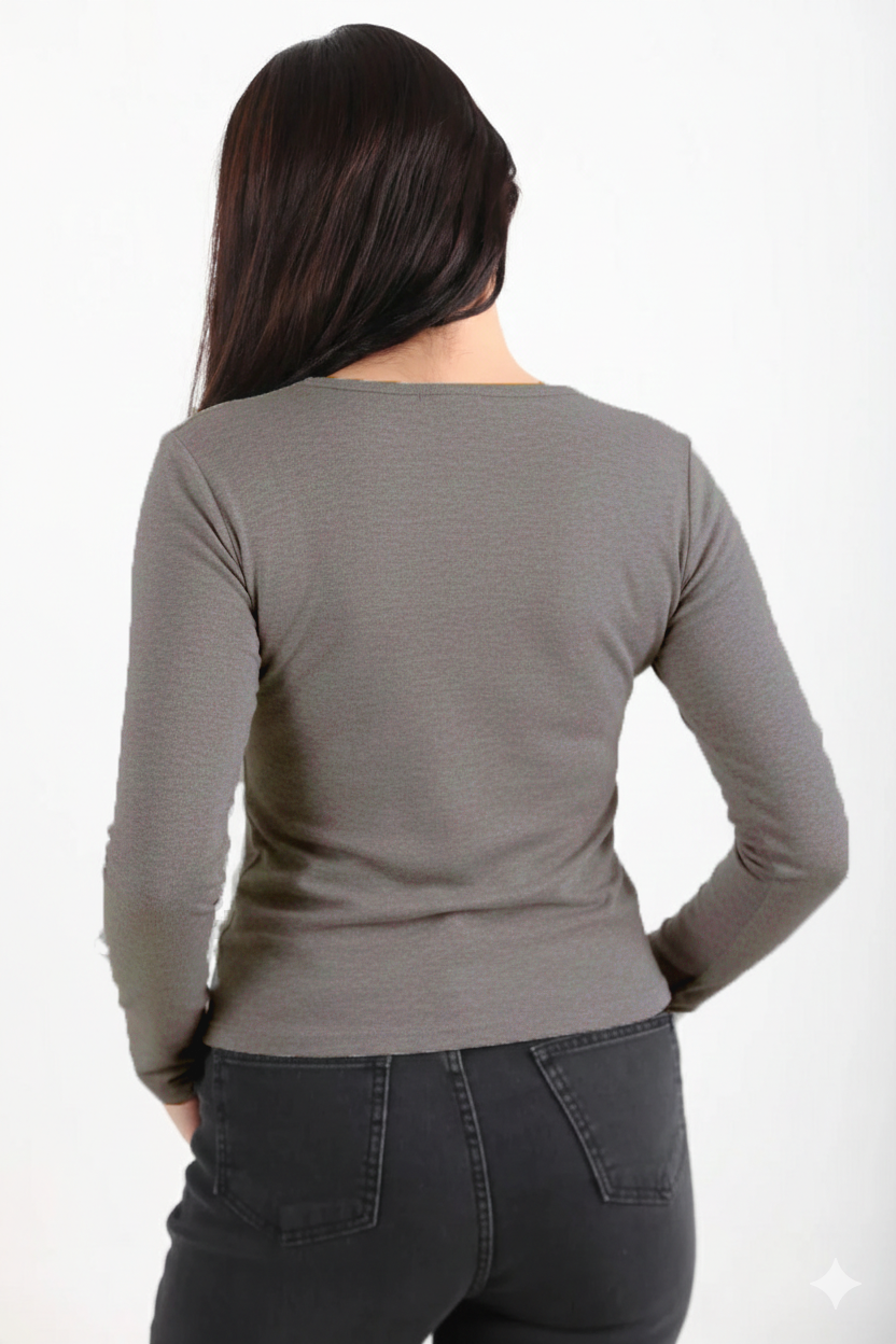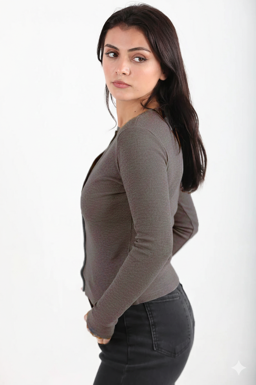 Pressline Kadın Önü Çıtçıtlı Bluz Kahverengi