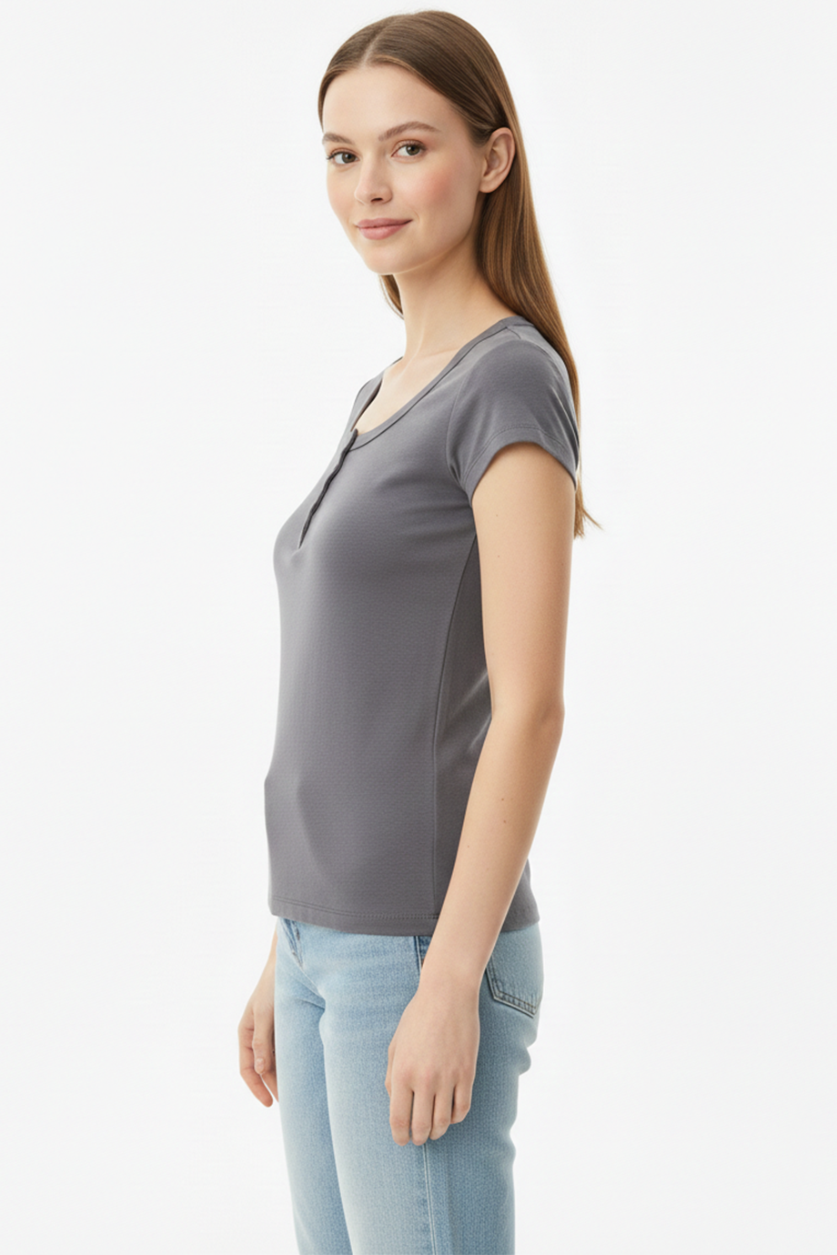 Kadın Önü Düğmeli Patlı Bady Bluz Füme