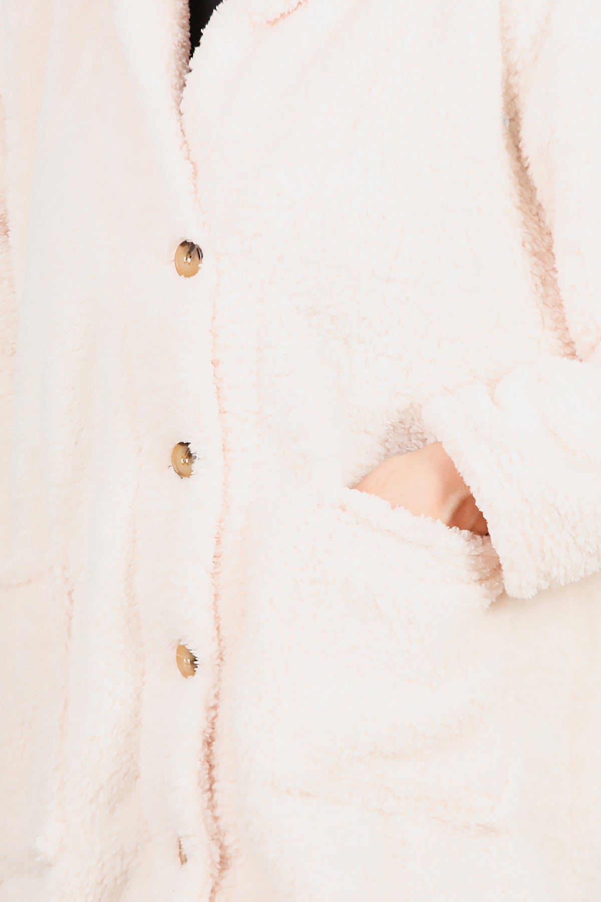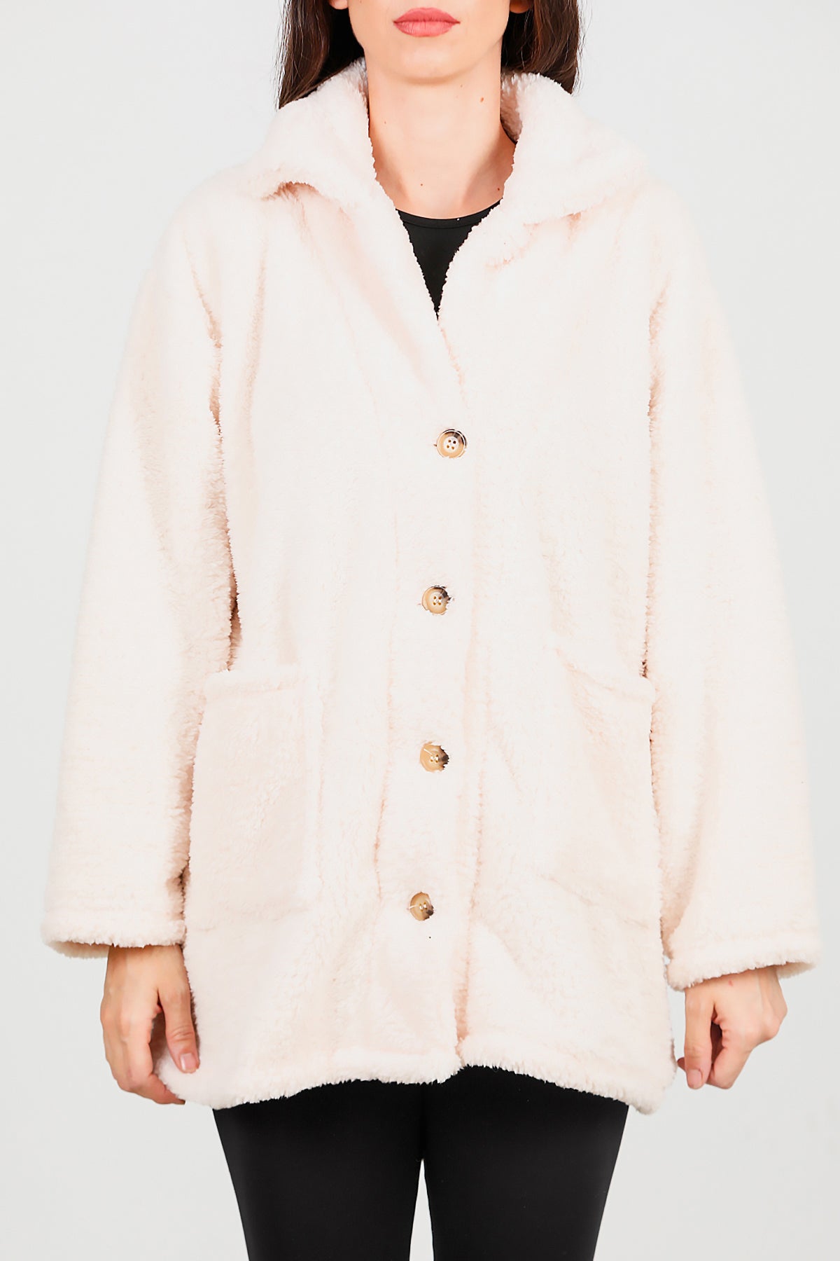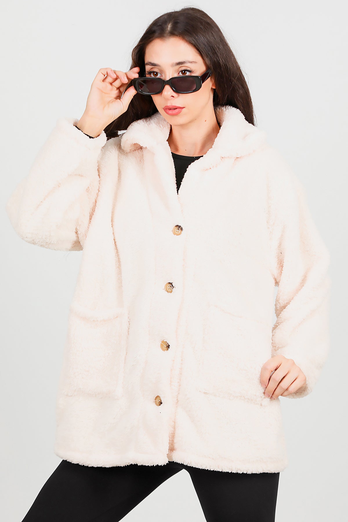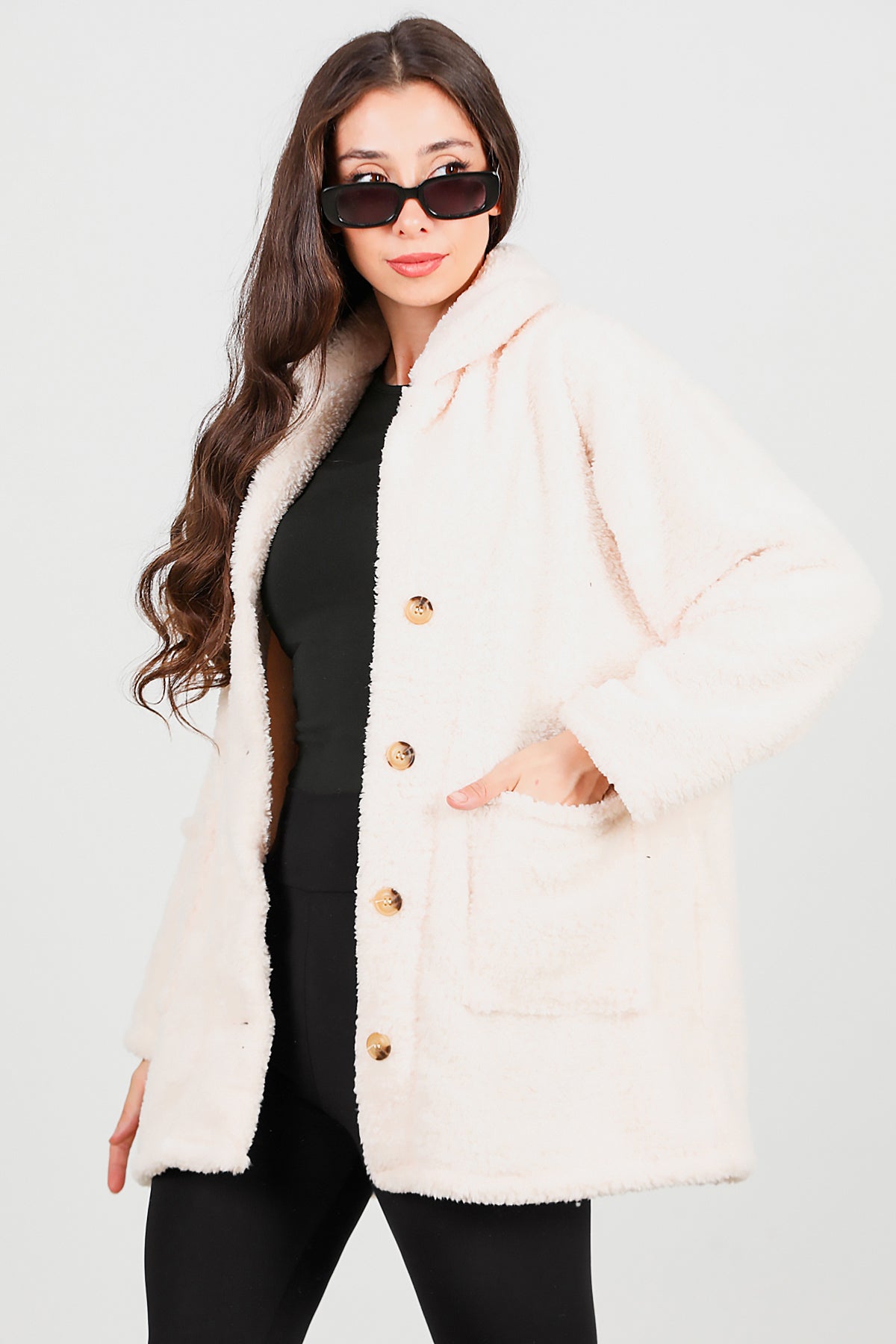 Kadın Önü Düğmeli Peluş Ceket Krem