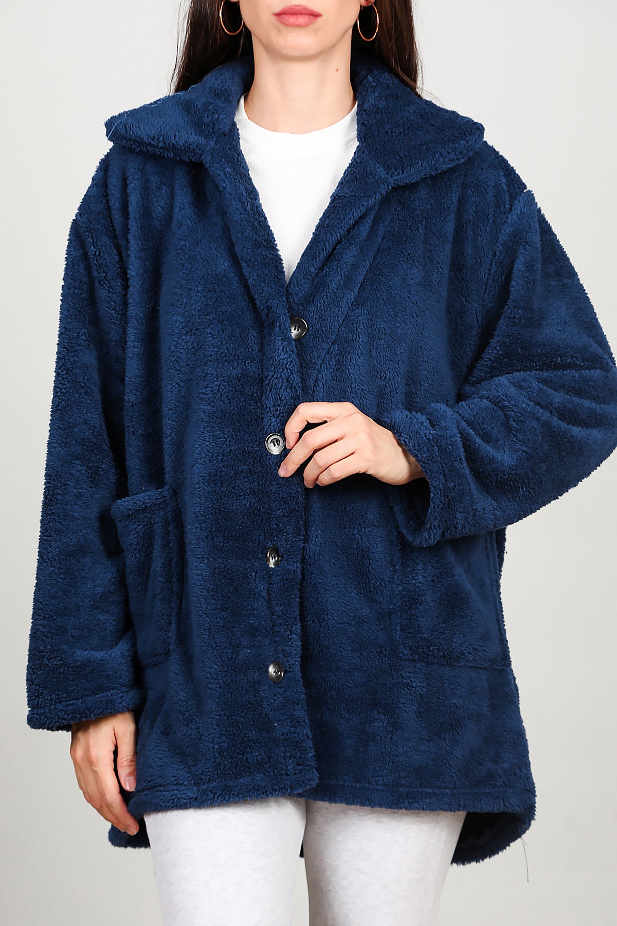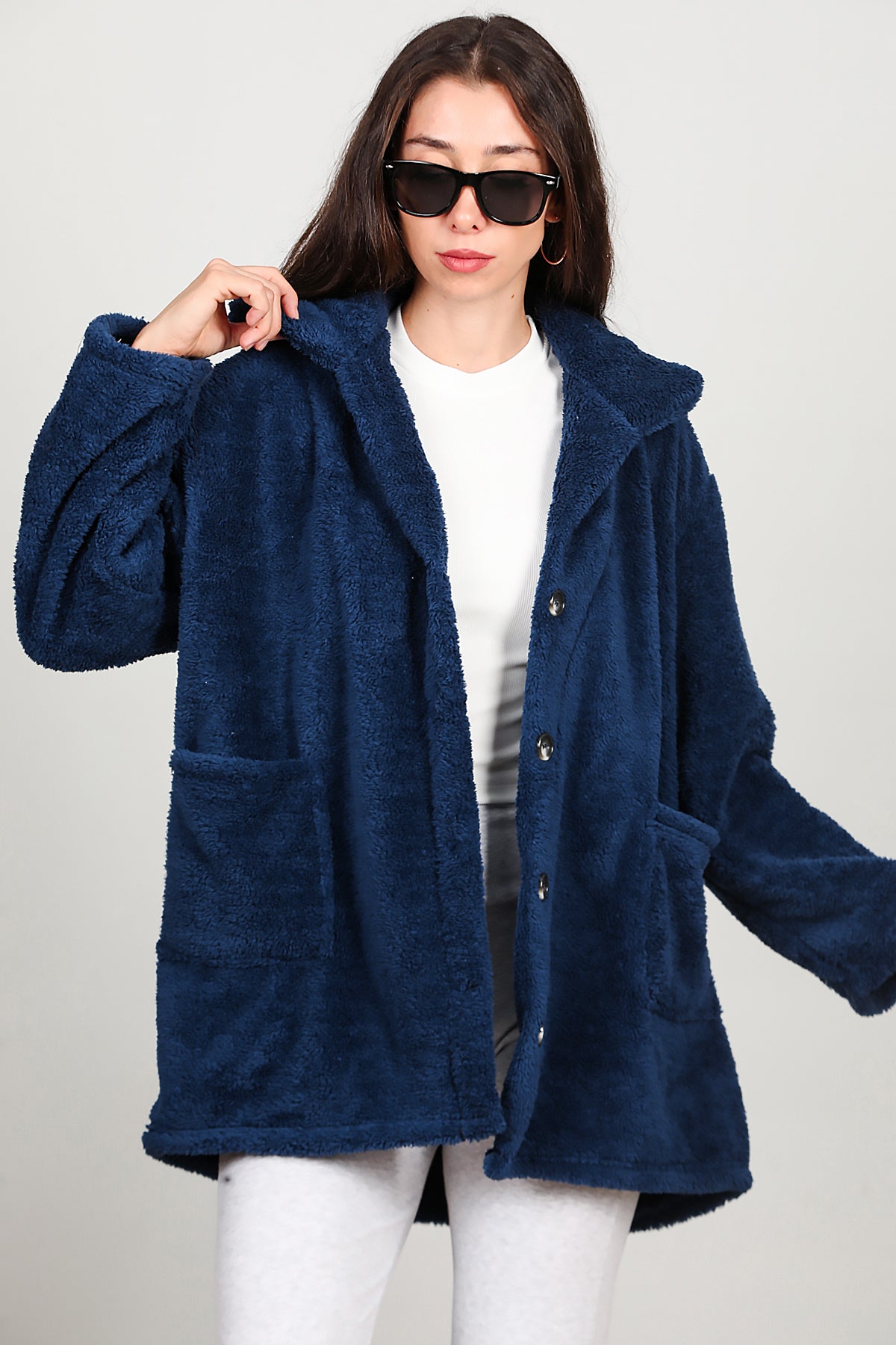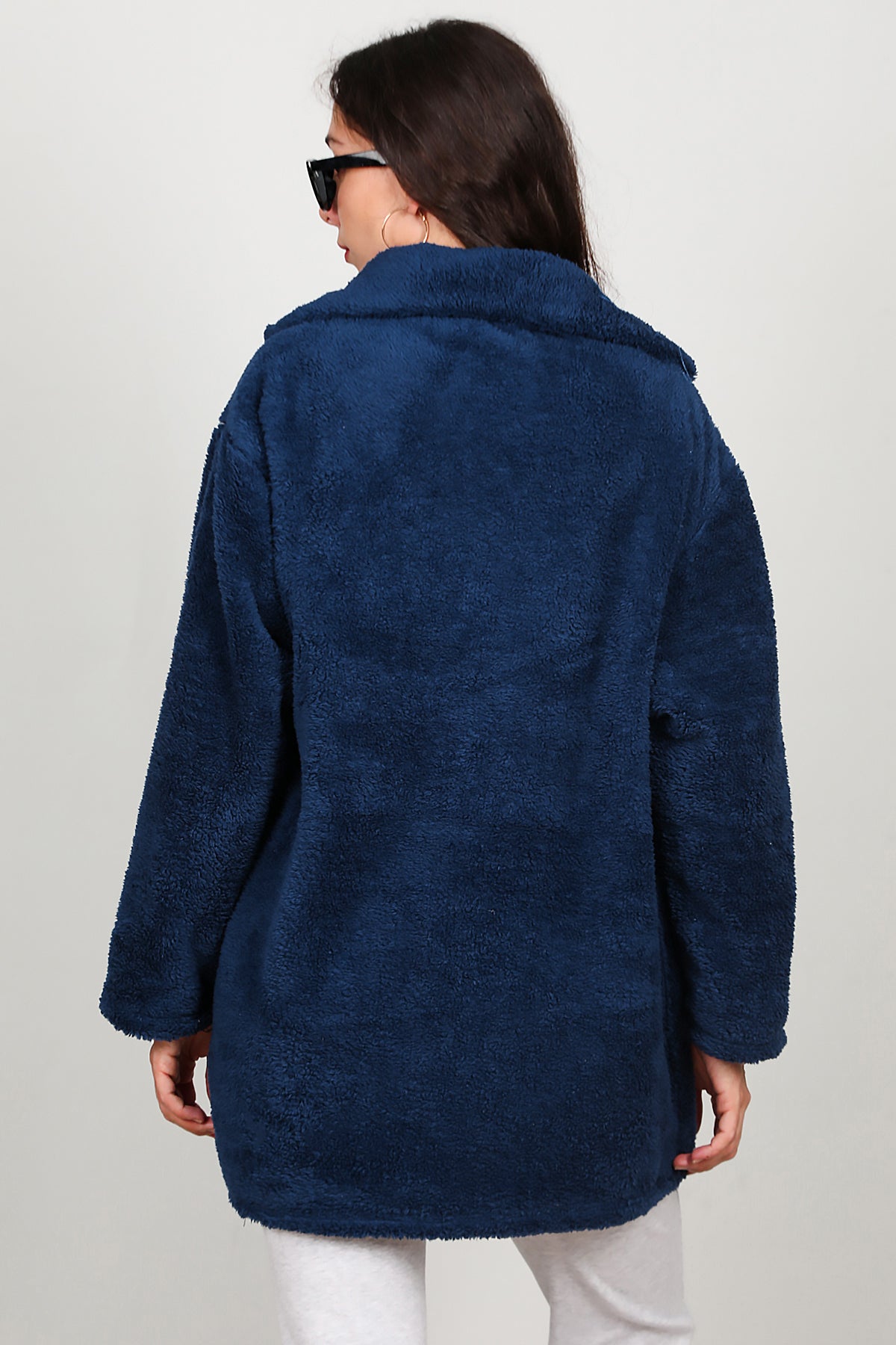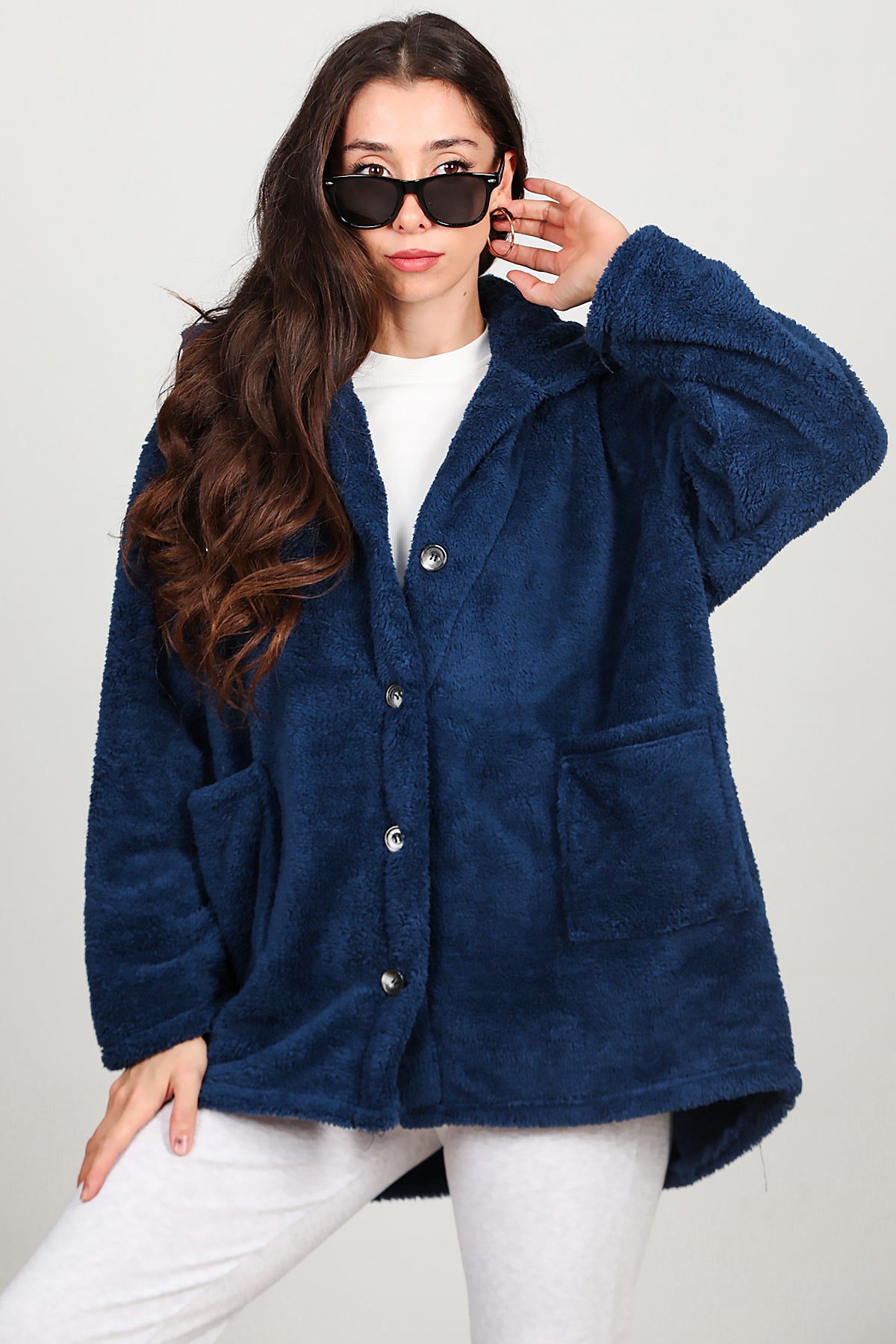Kadın Önü Düğmeli Peluş Ceket Lacivert