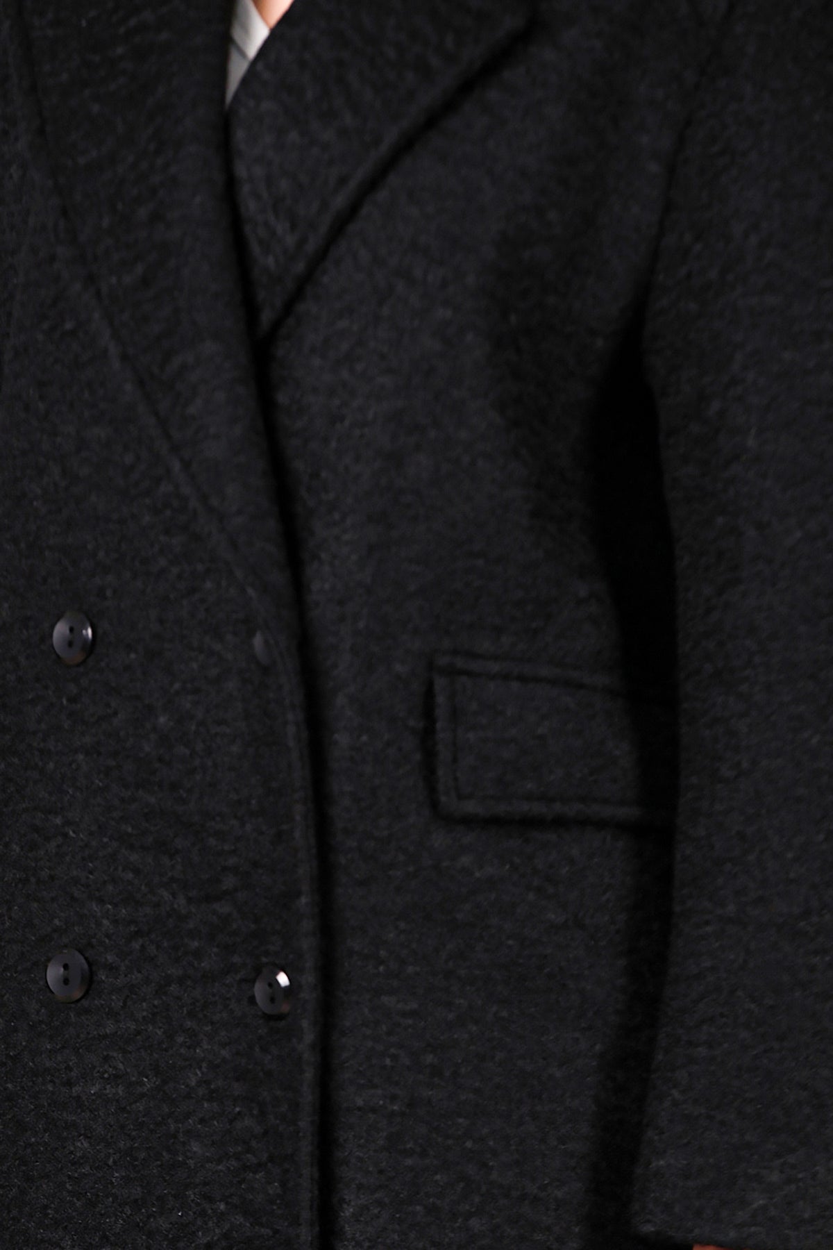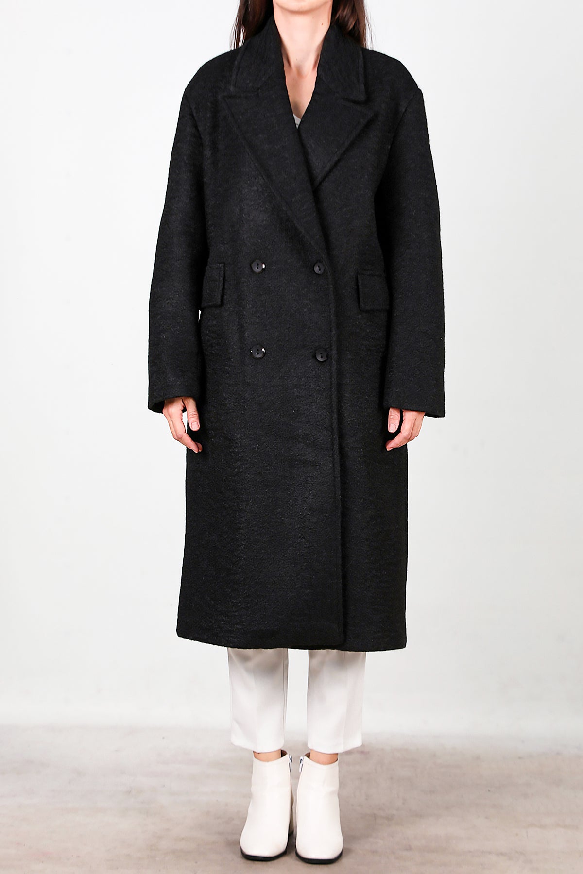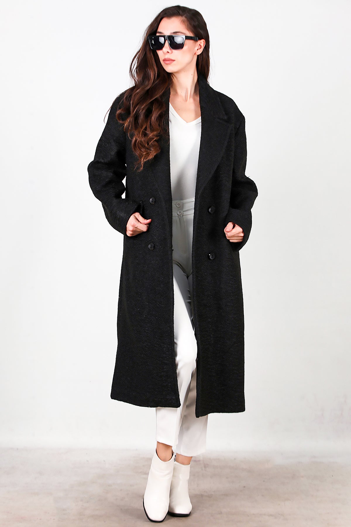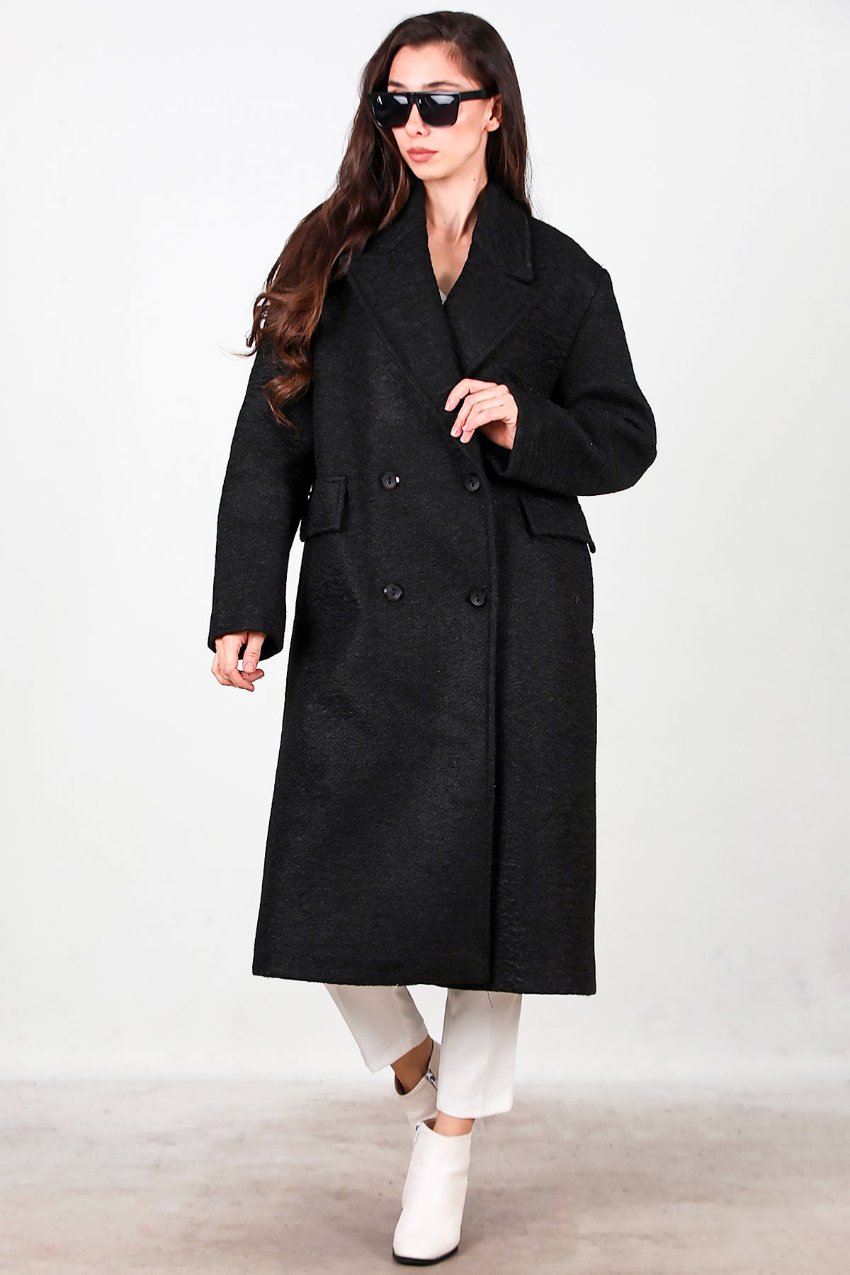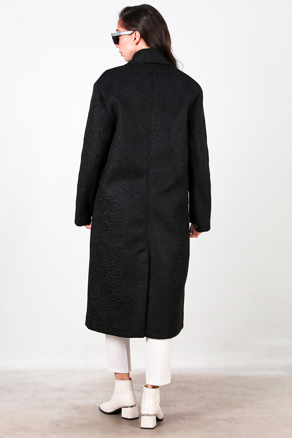 Kadın Önü Düğmeli Uzun Kaşe Kaban Siyah