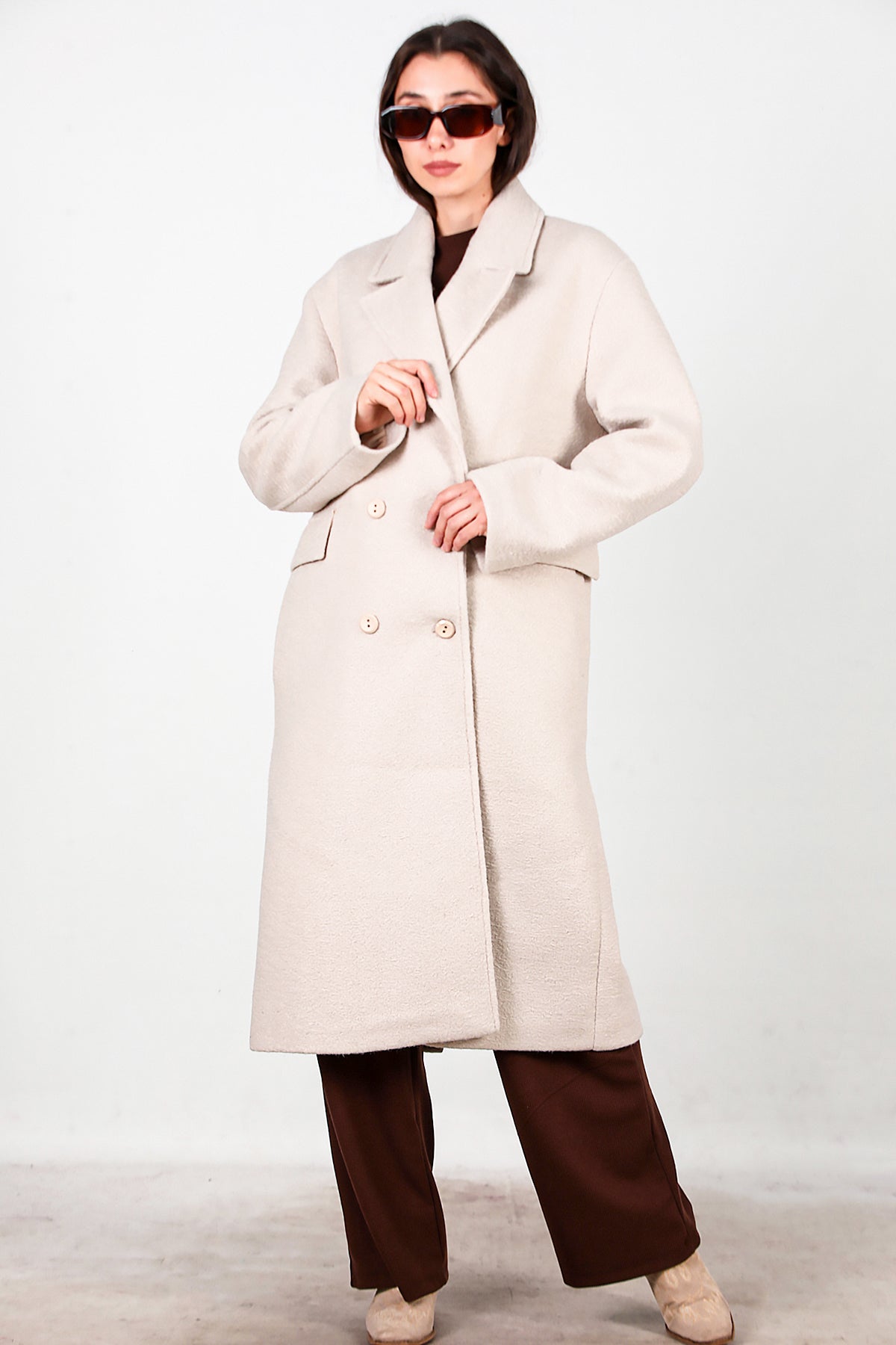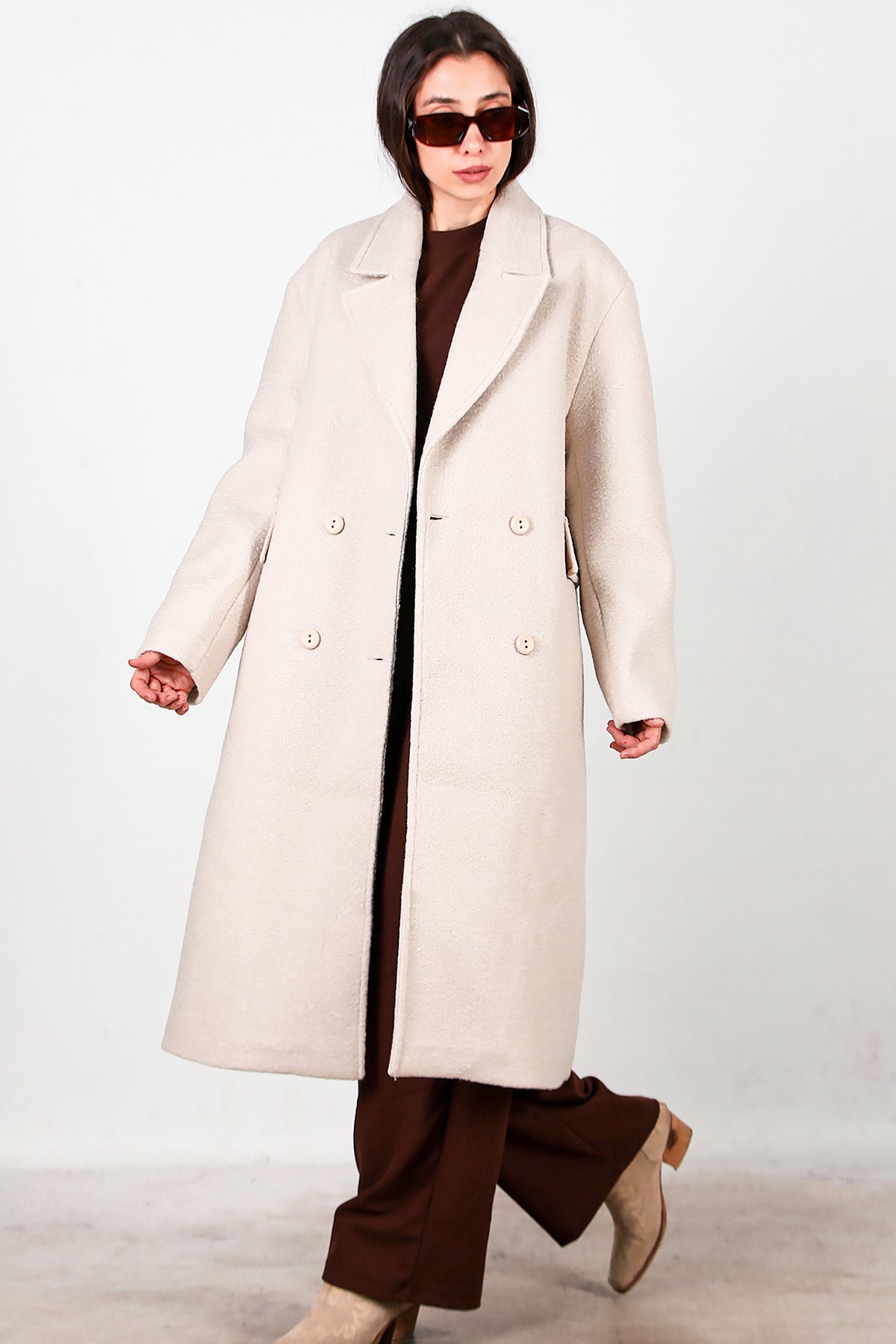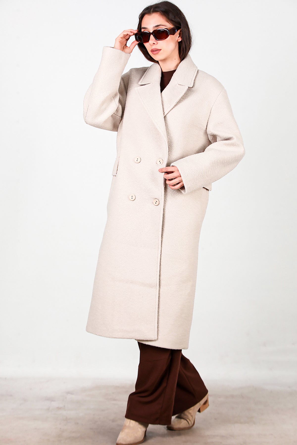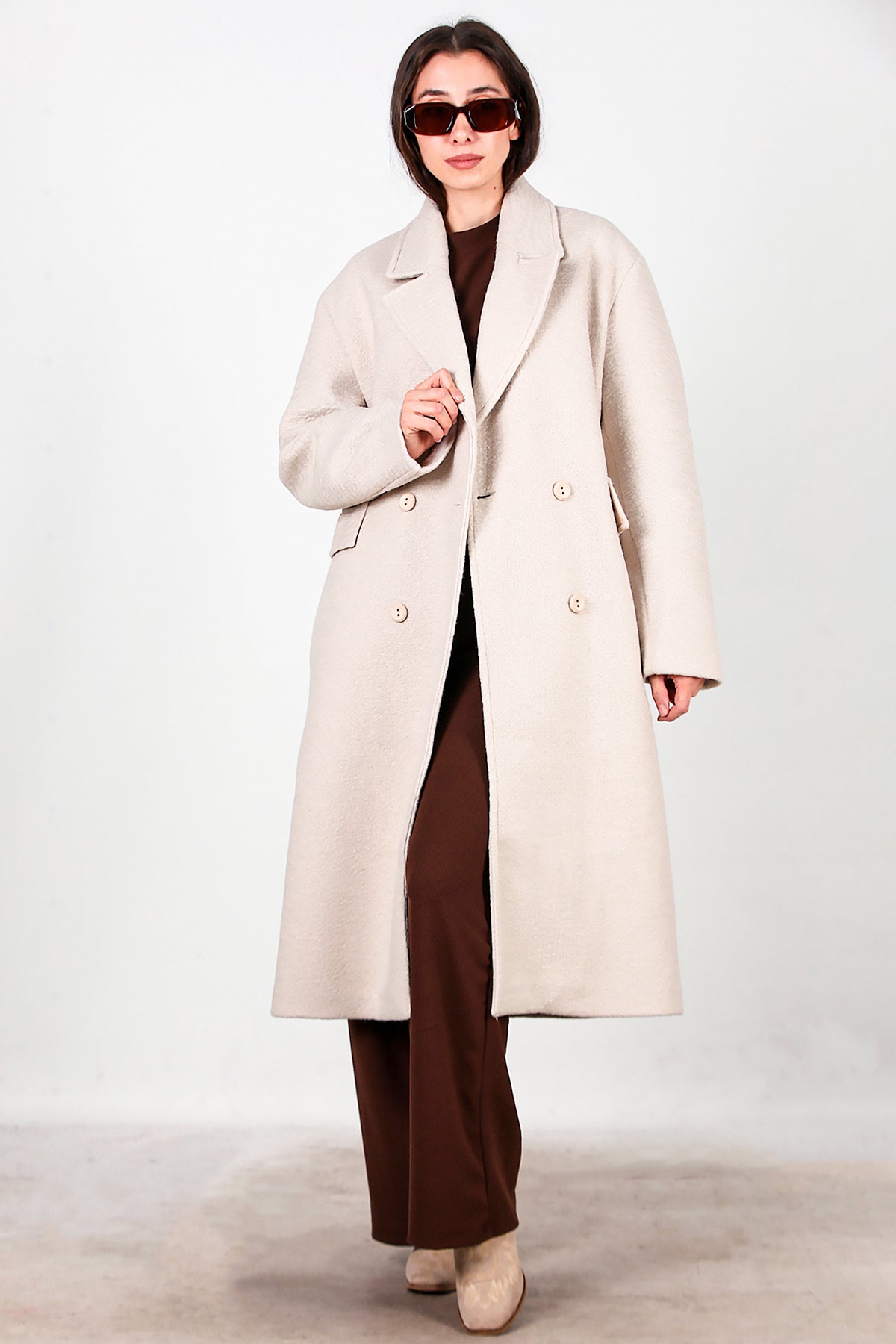 Kadın Önü Düğmeli Uzun Kaşe Kaban Taş