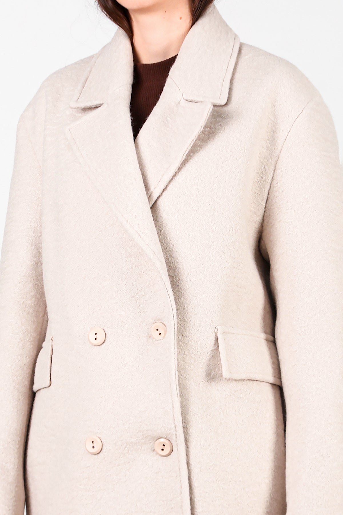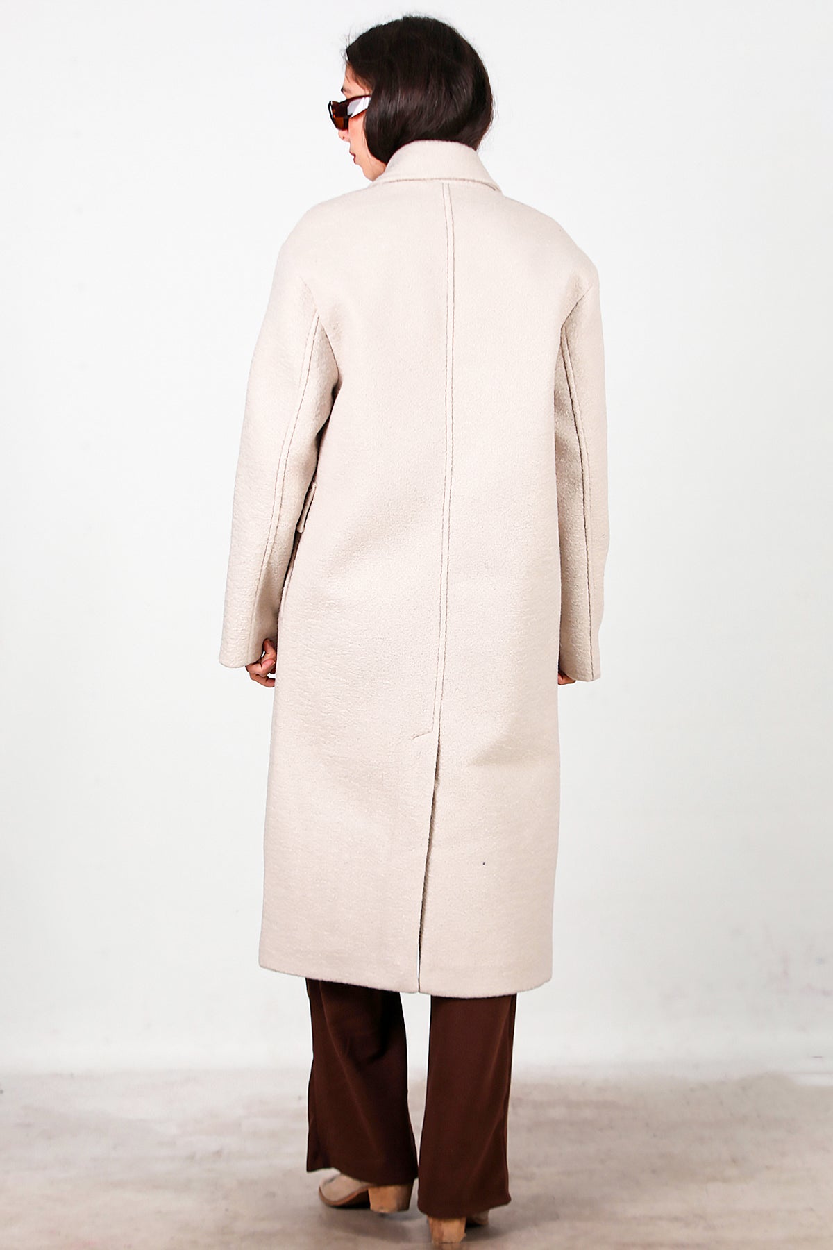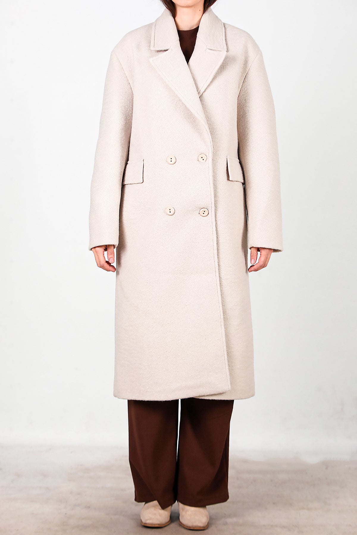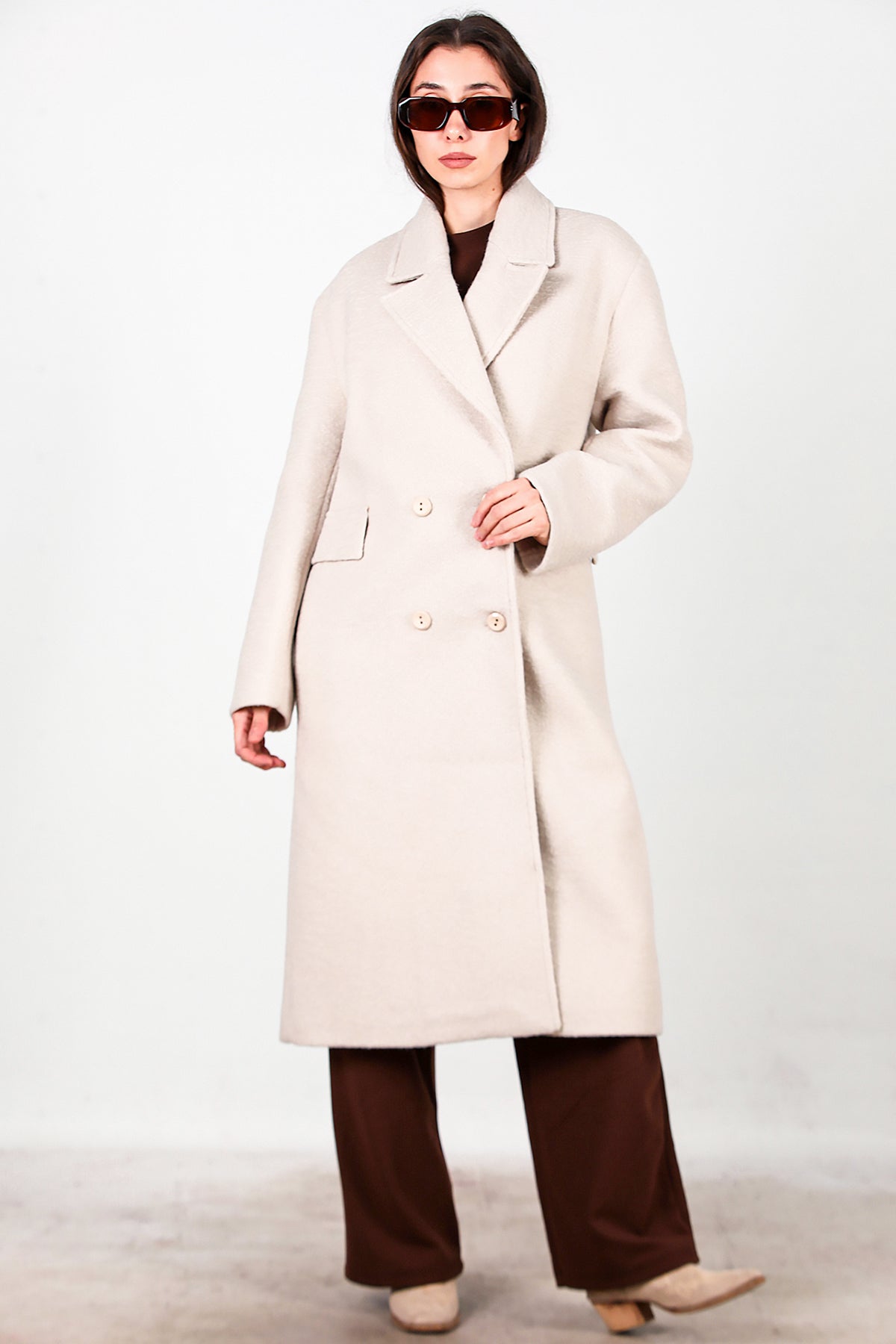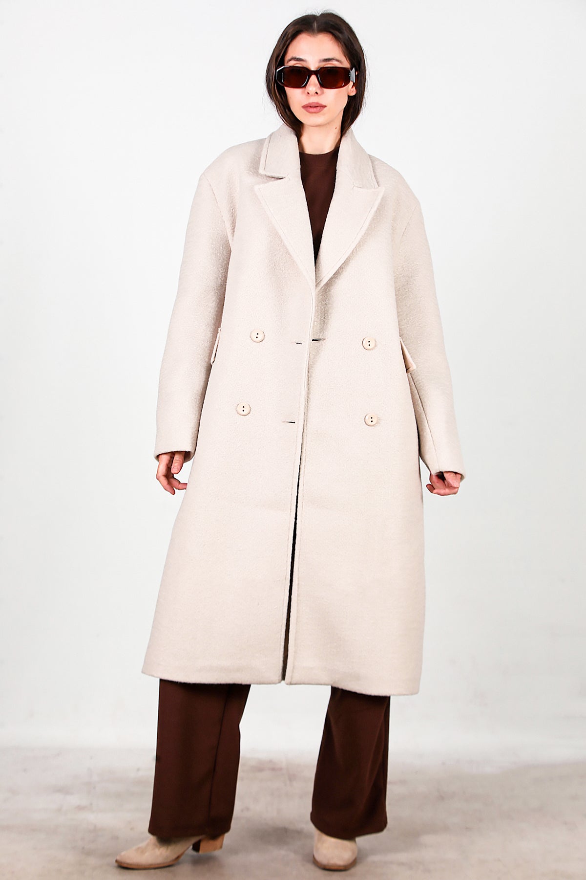 Kadın Önü Düğmeli Uzun Kaşe Kaban Taş