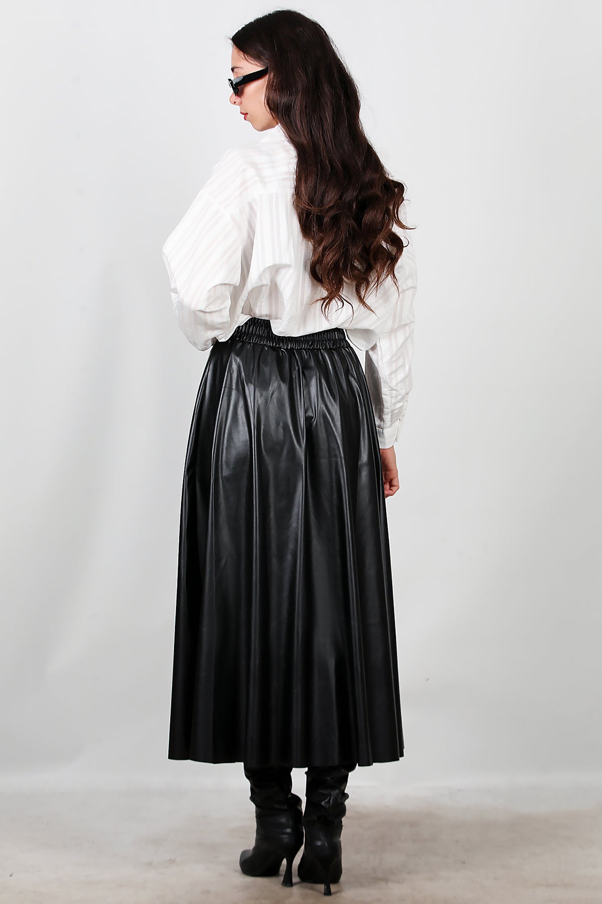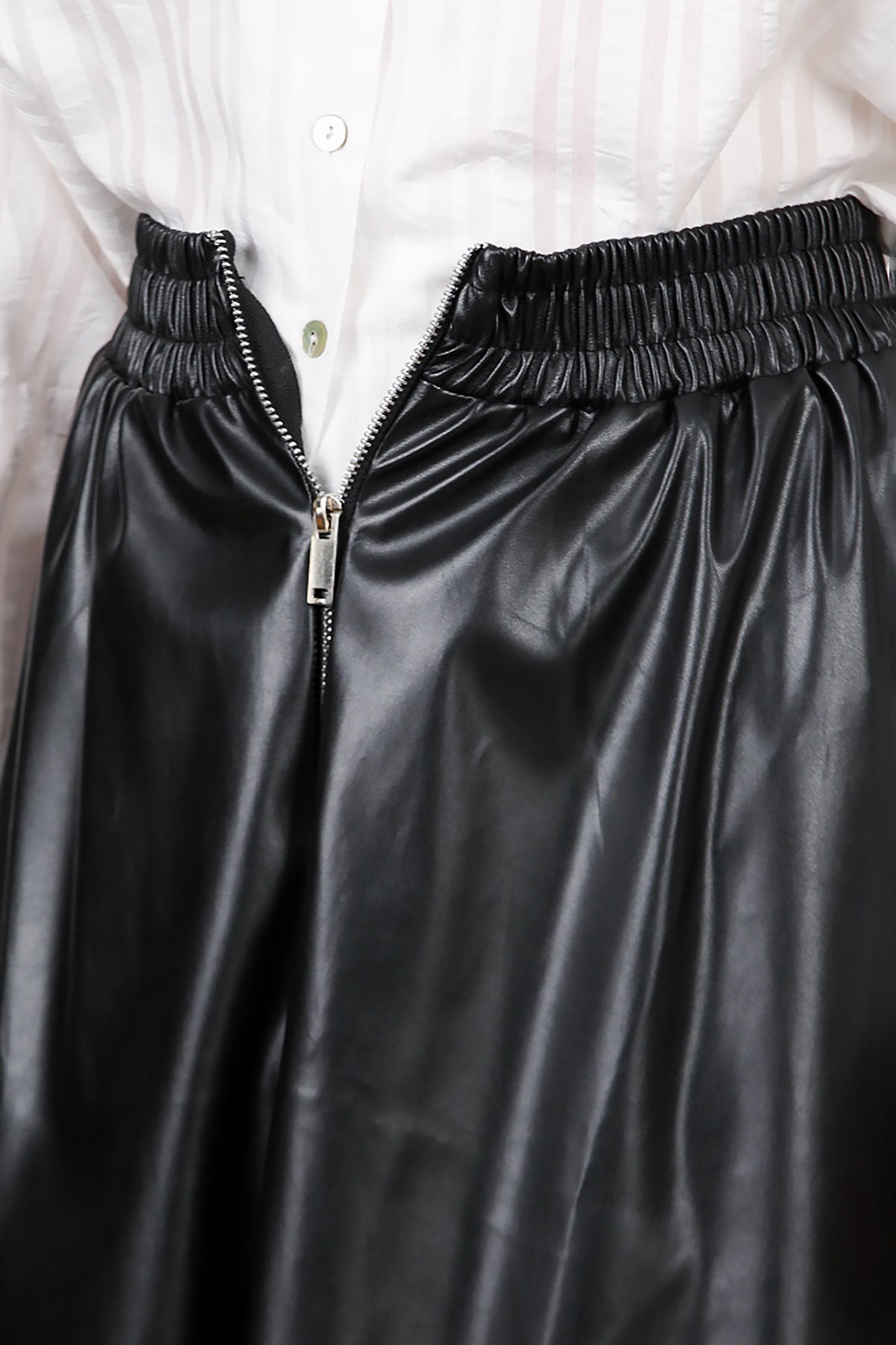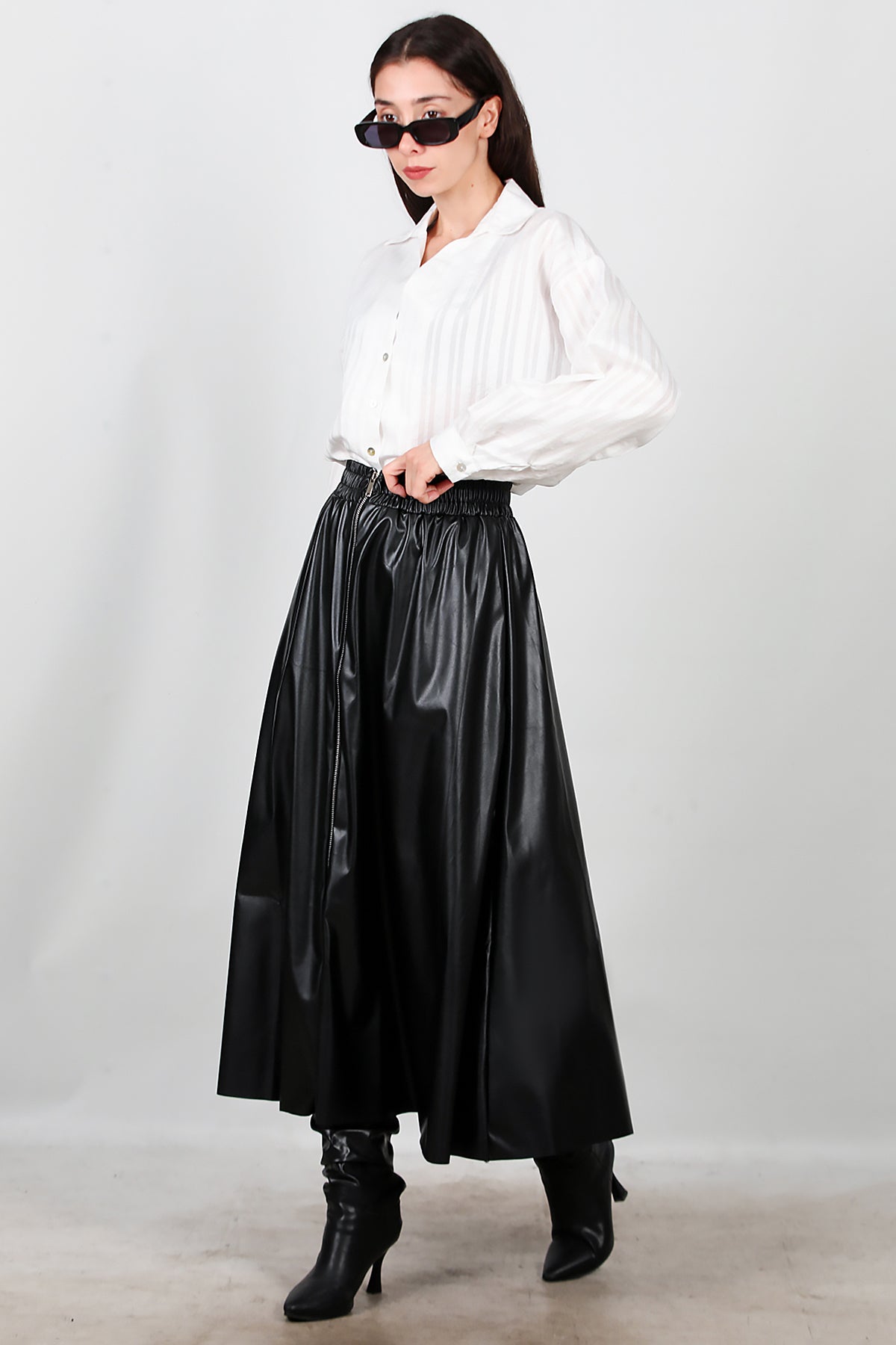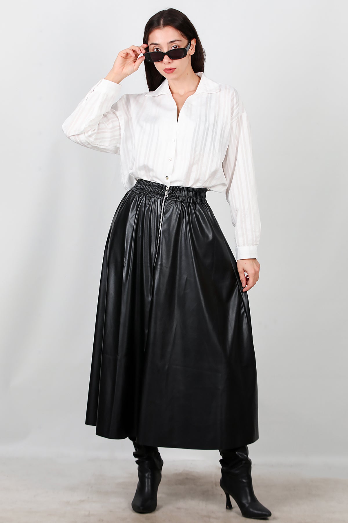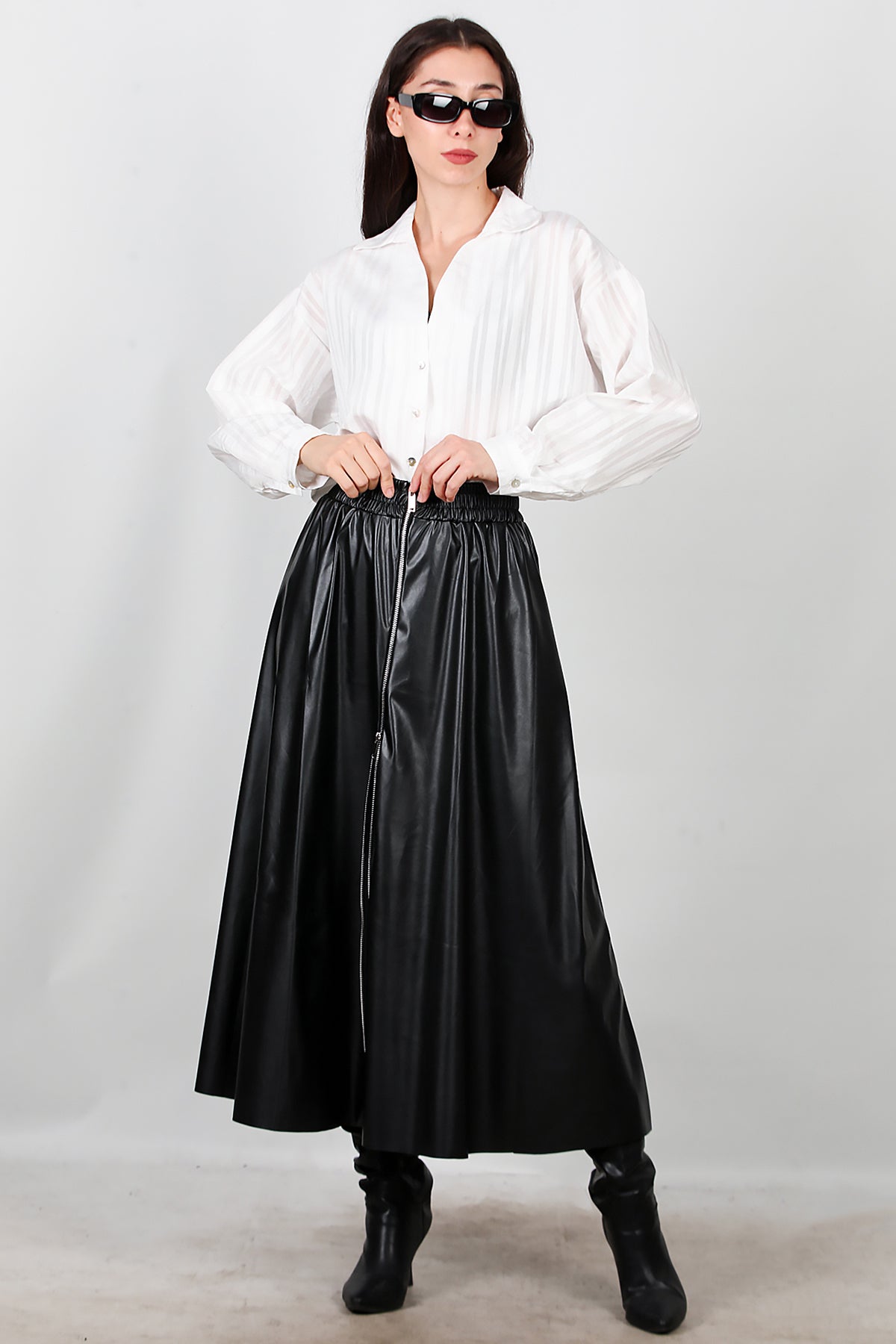 Kadın Önü Fermuarlı Deri Etek Siyah