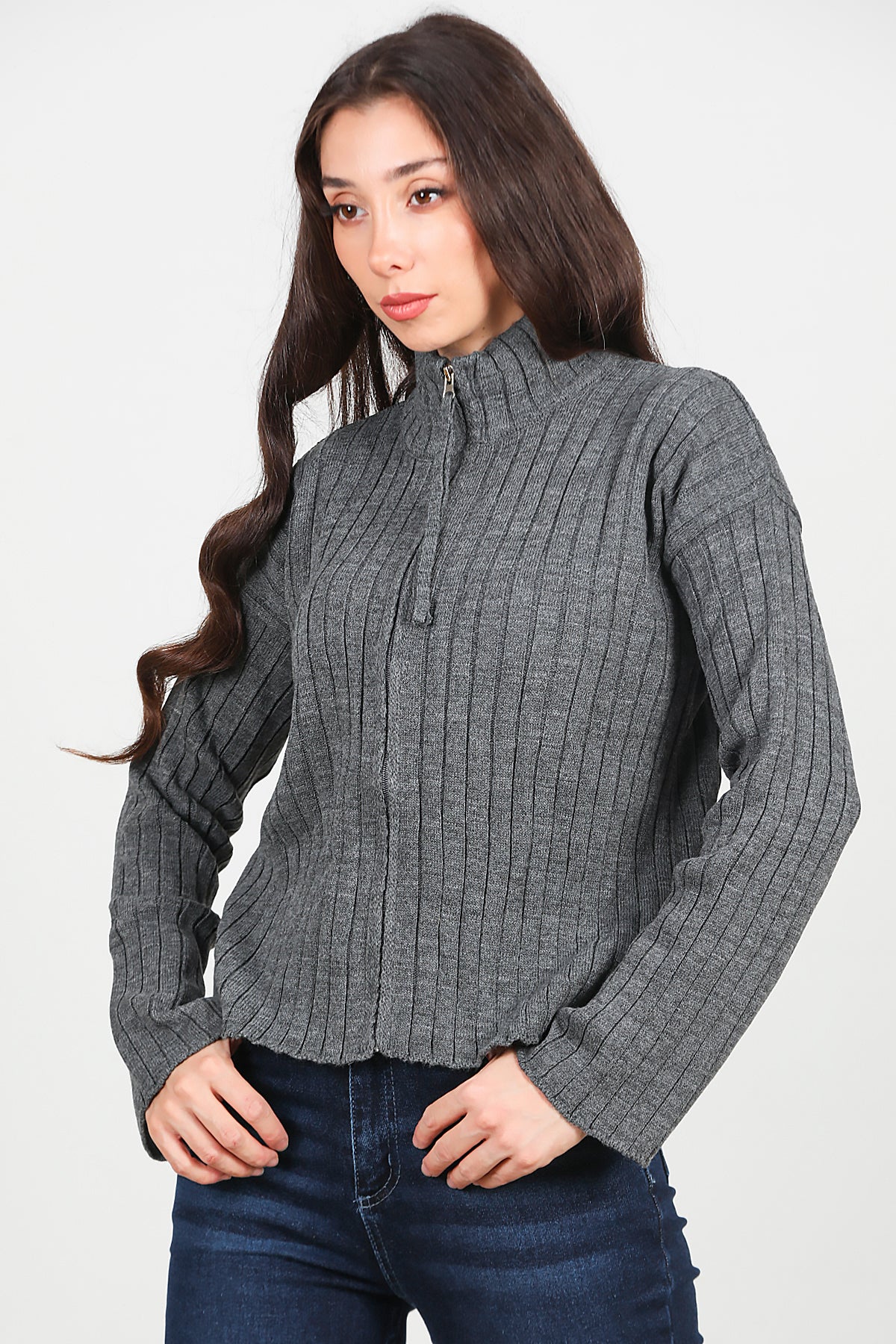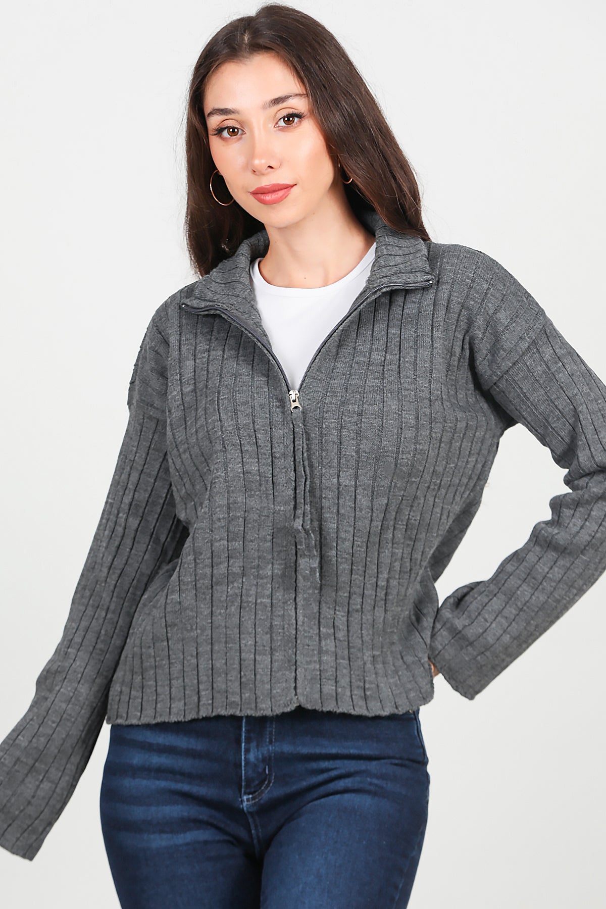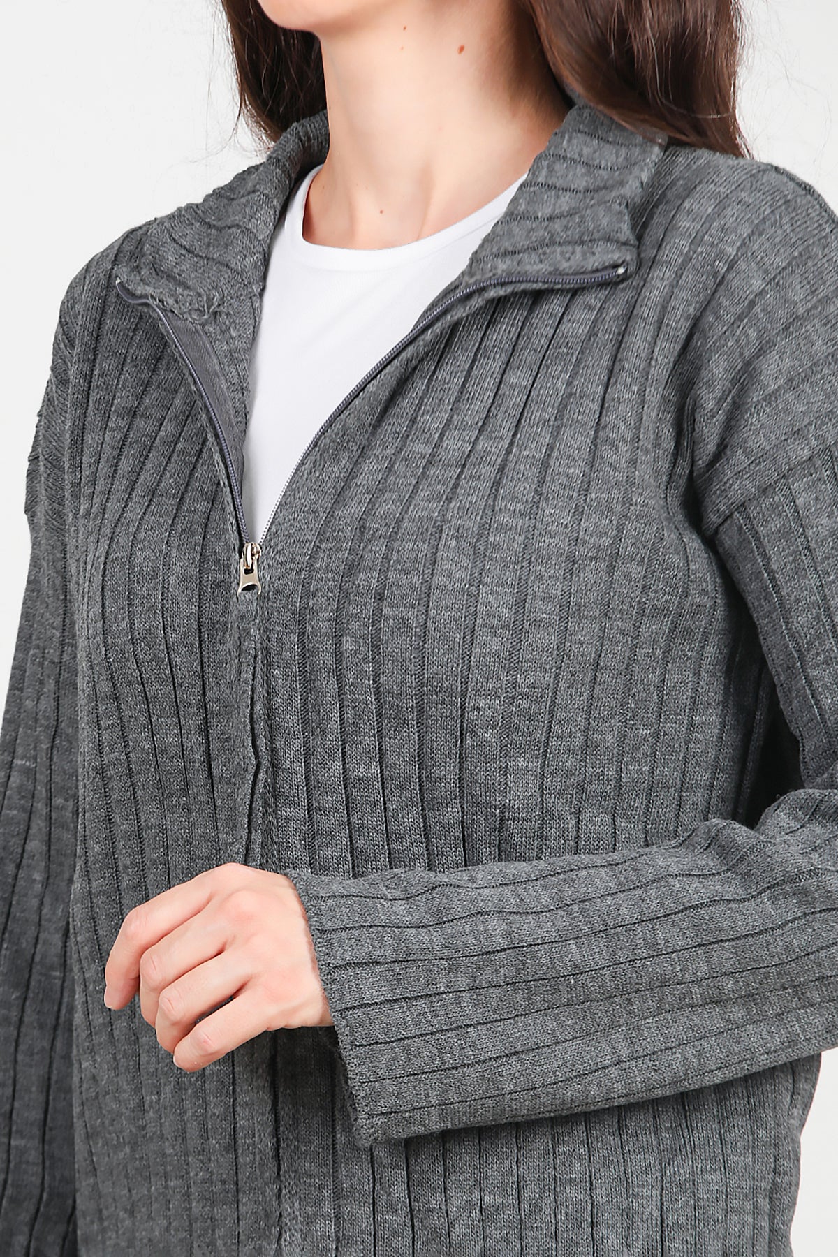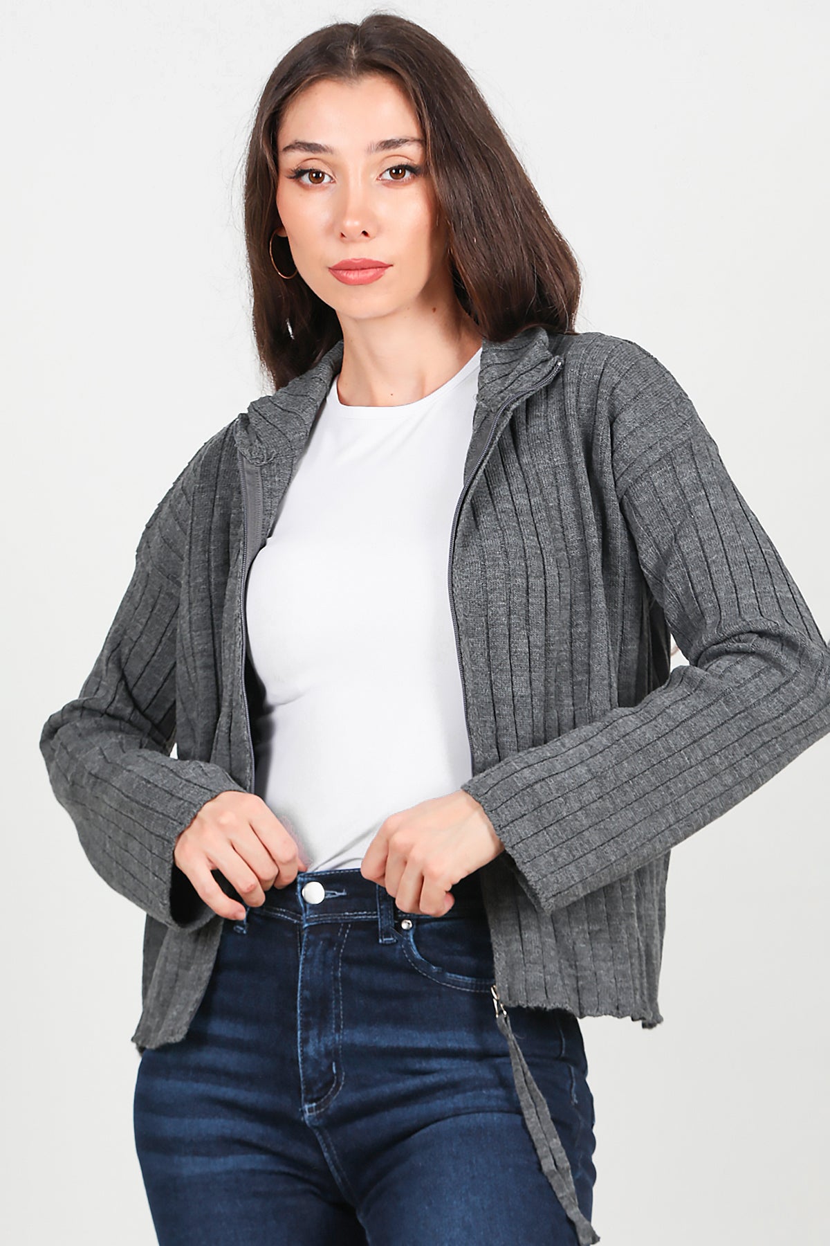 Kadın Önü Fermuarlı Triko Ceket Antrasit