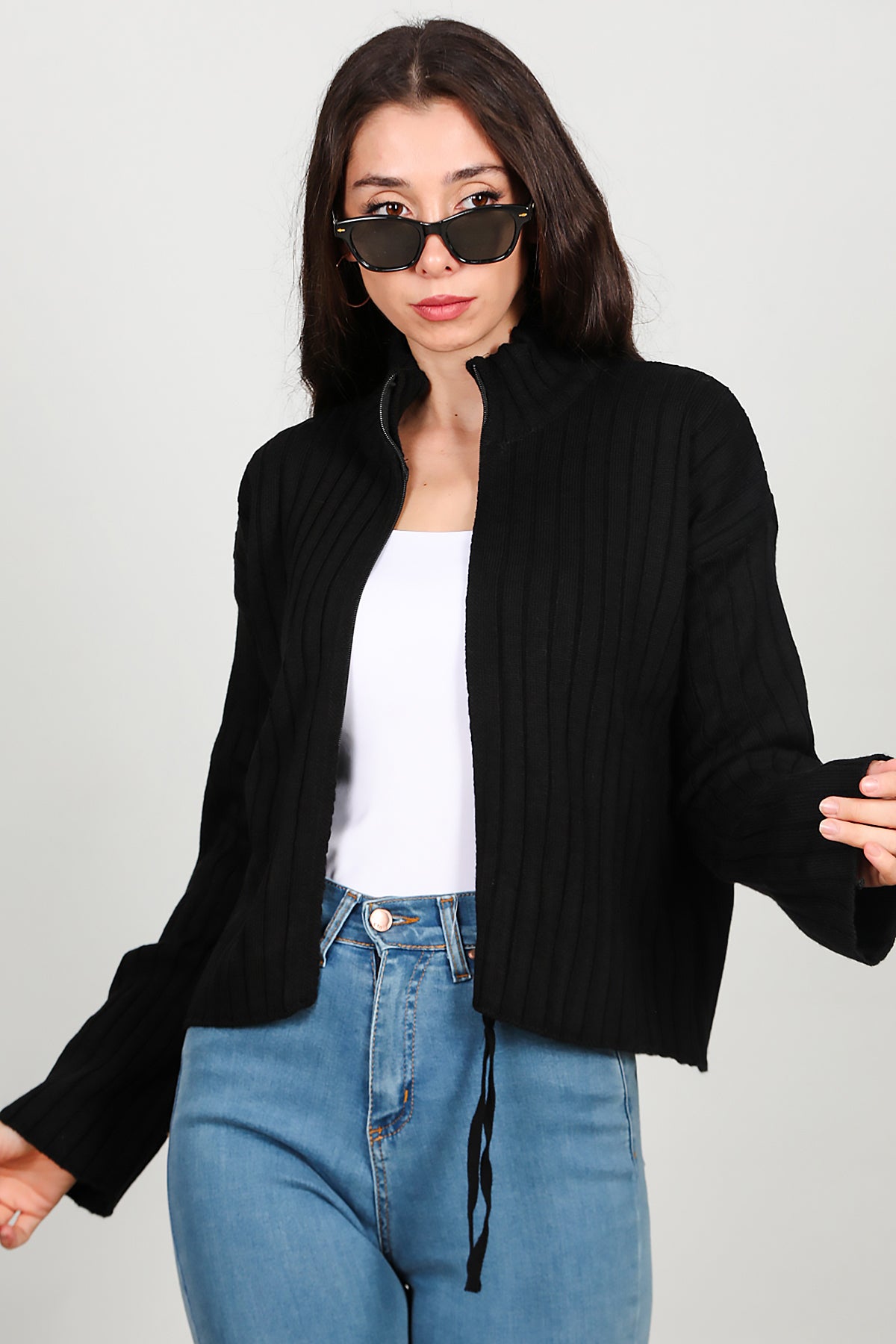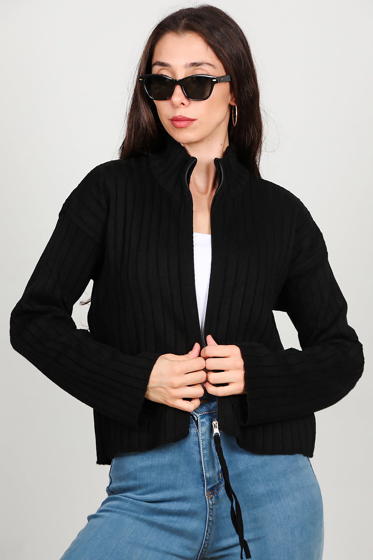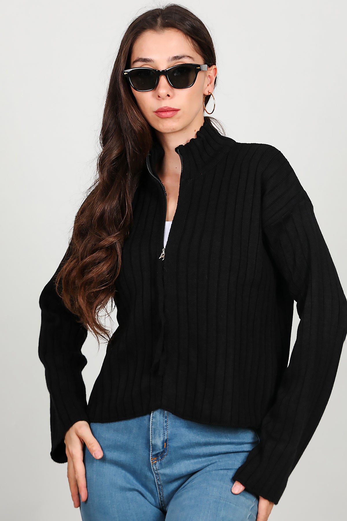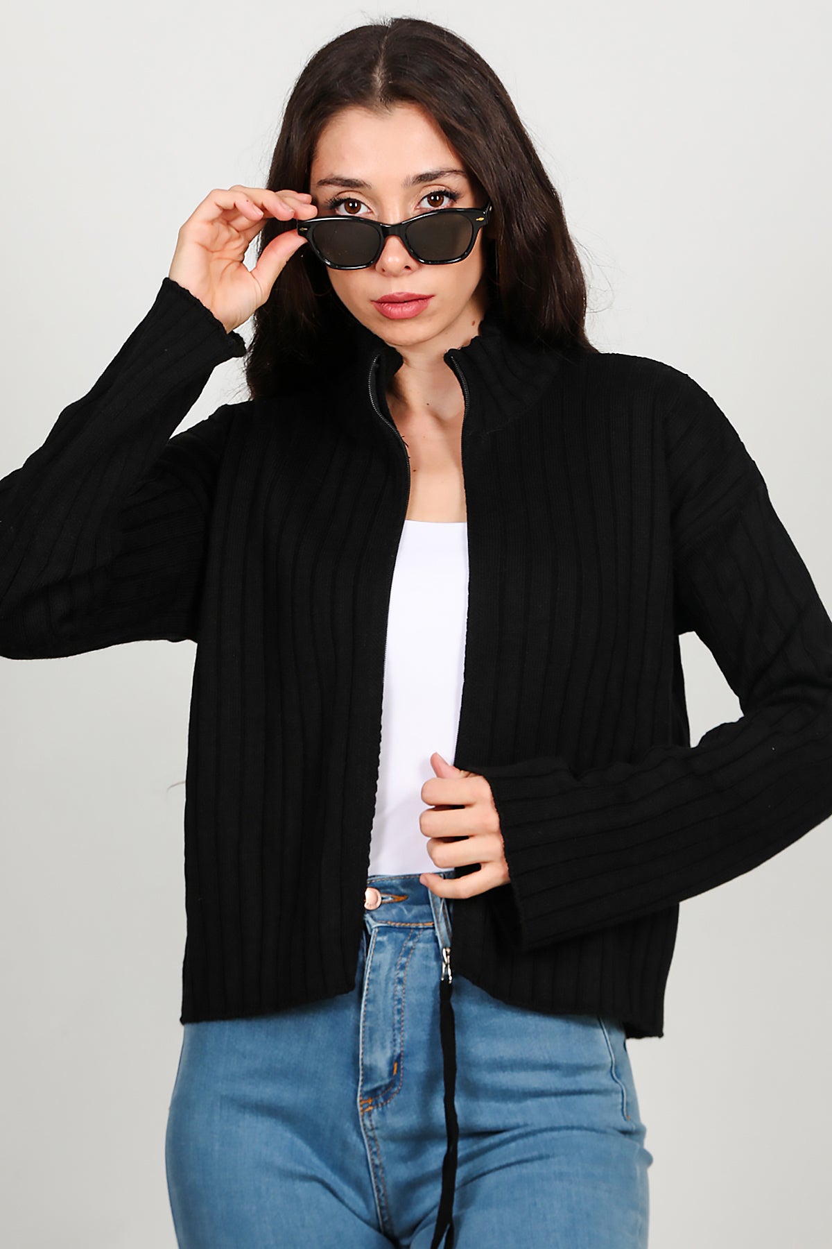 Kadın Önü Fermuarlı Triko Ceket Siyah