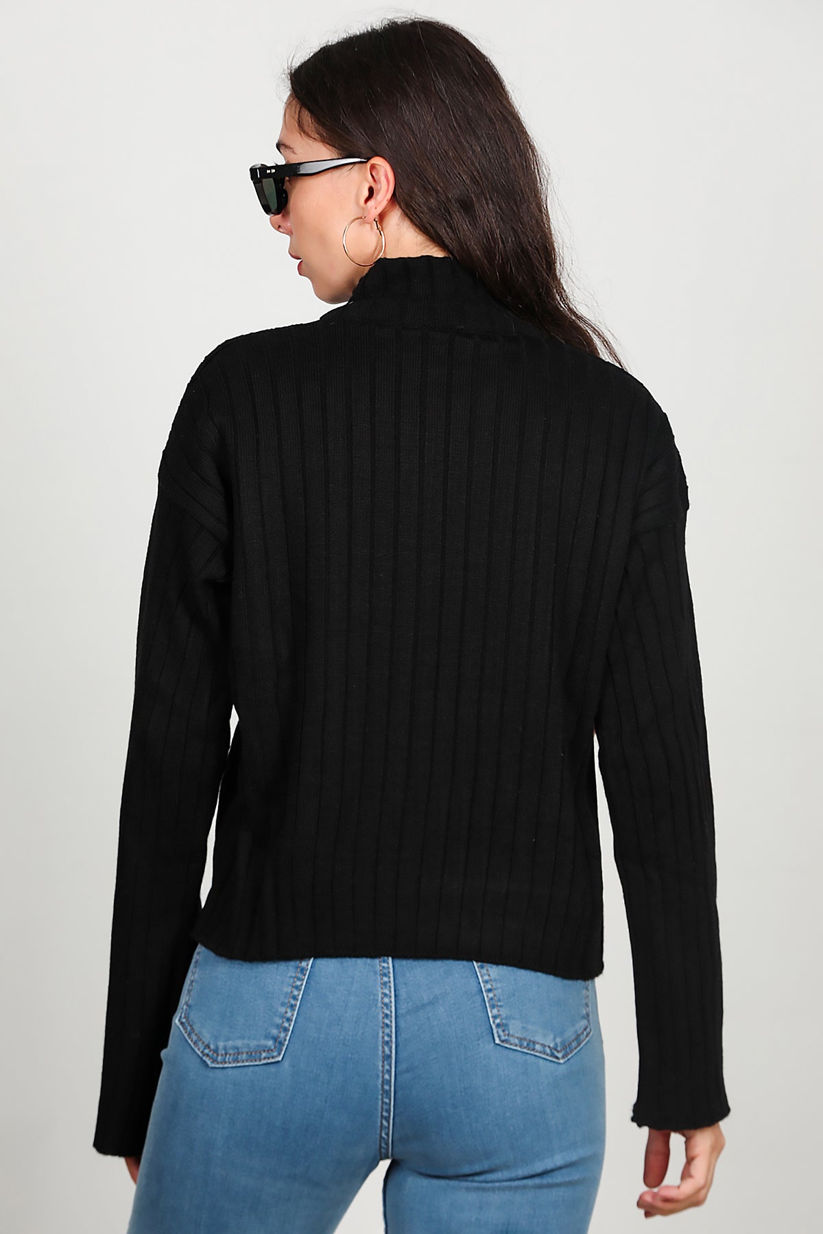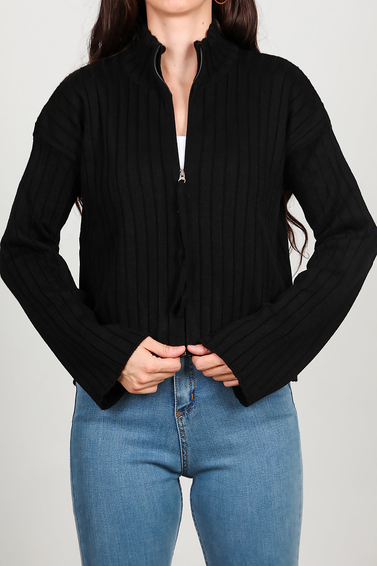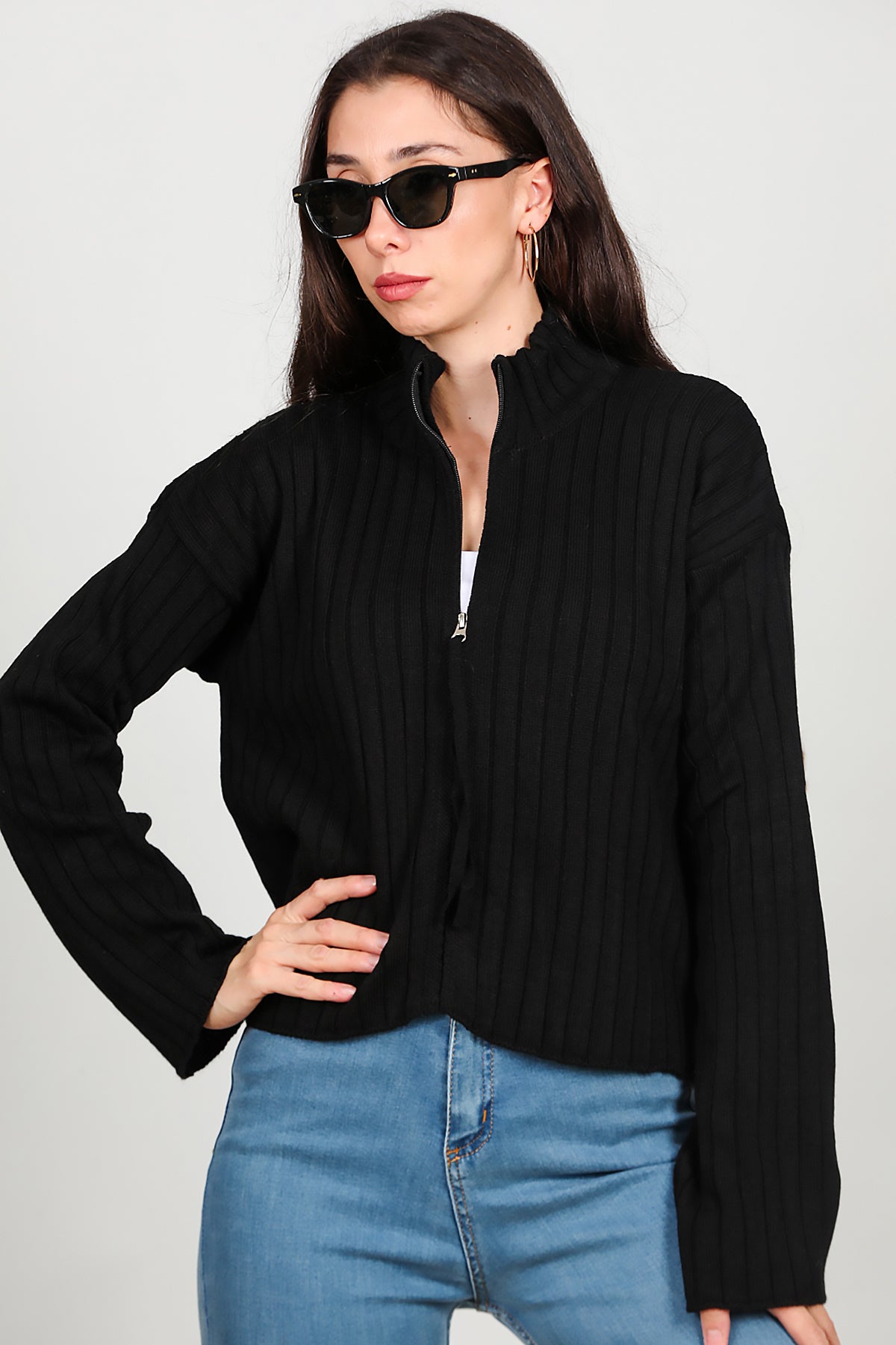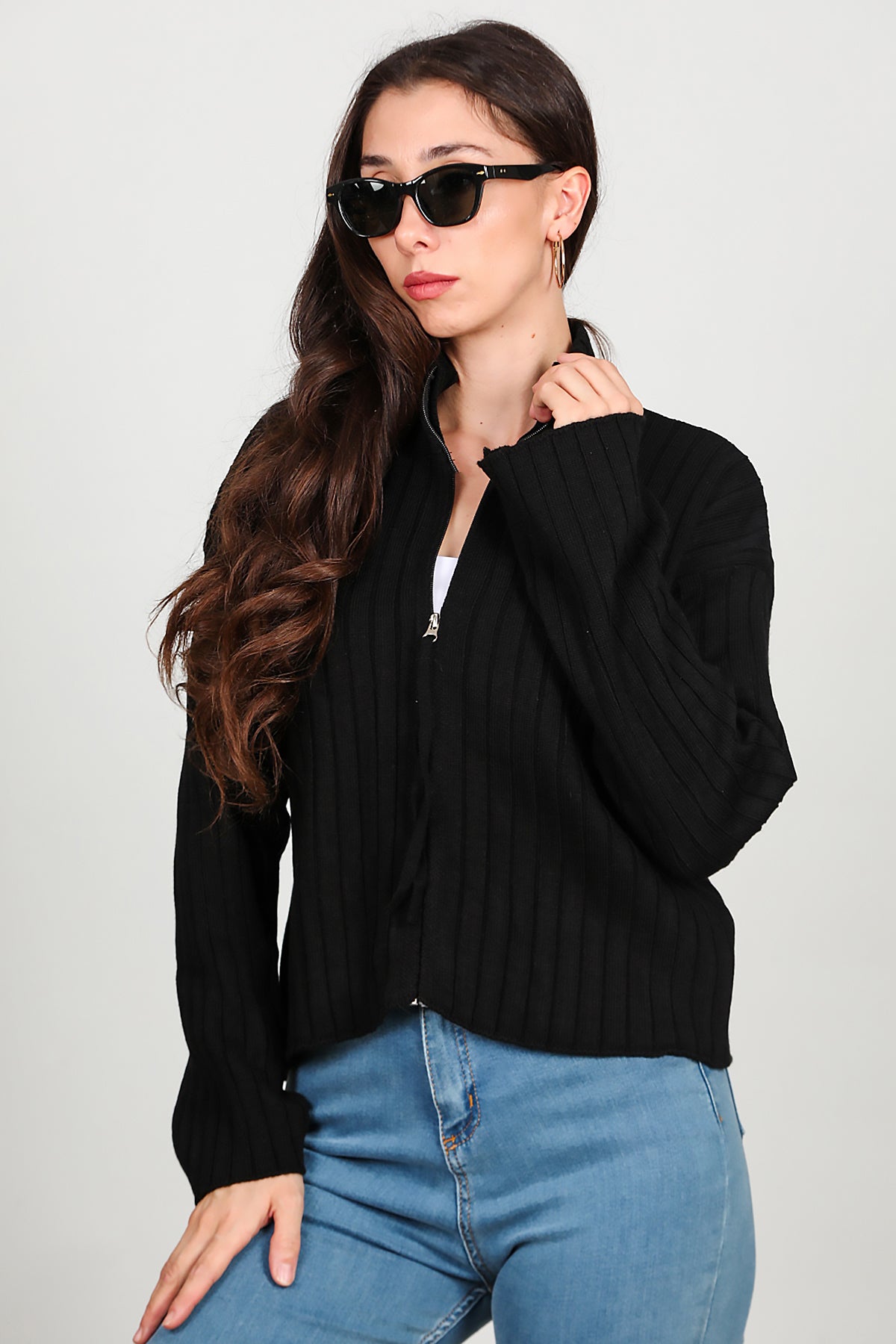 Kadın Önü Fermuarlı Triko Ceket Siyah