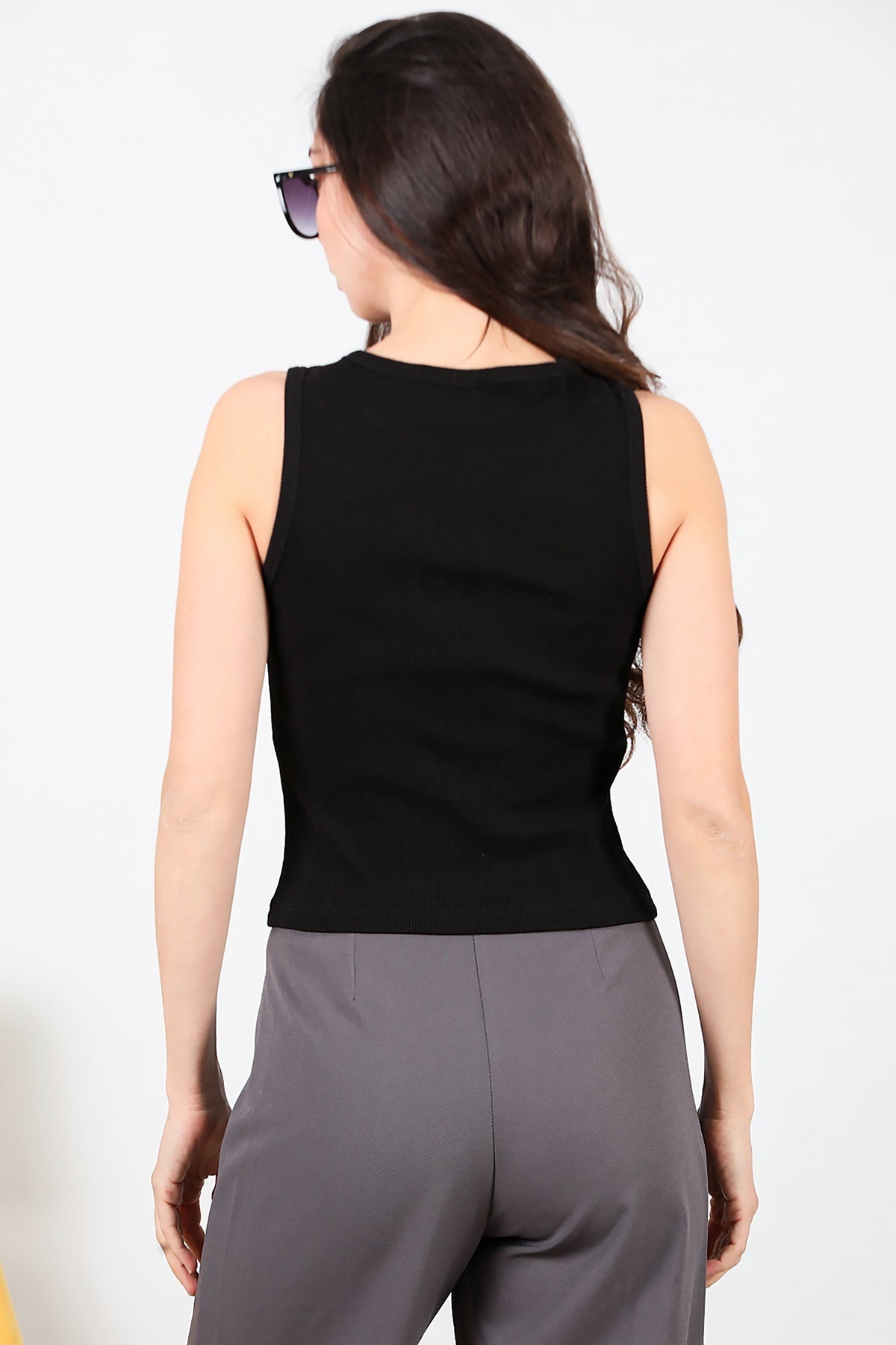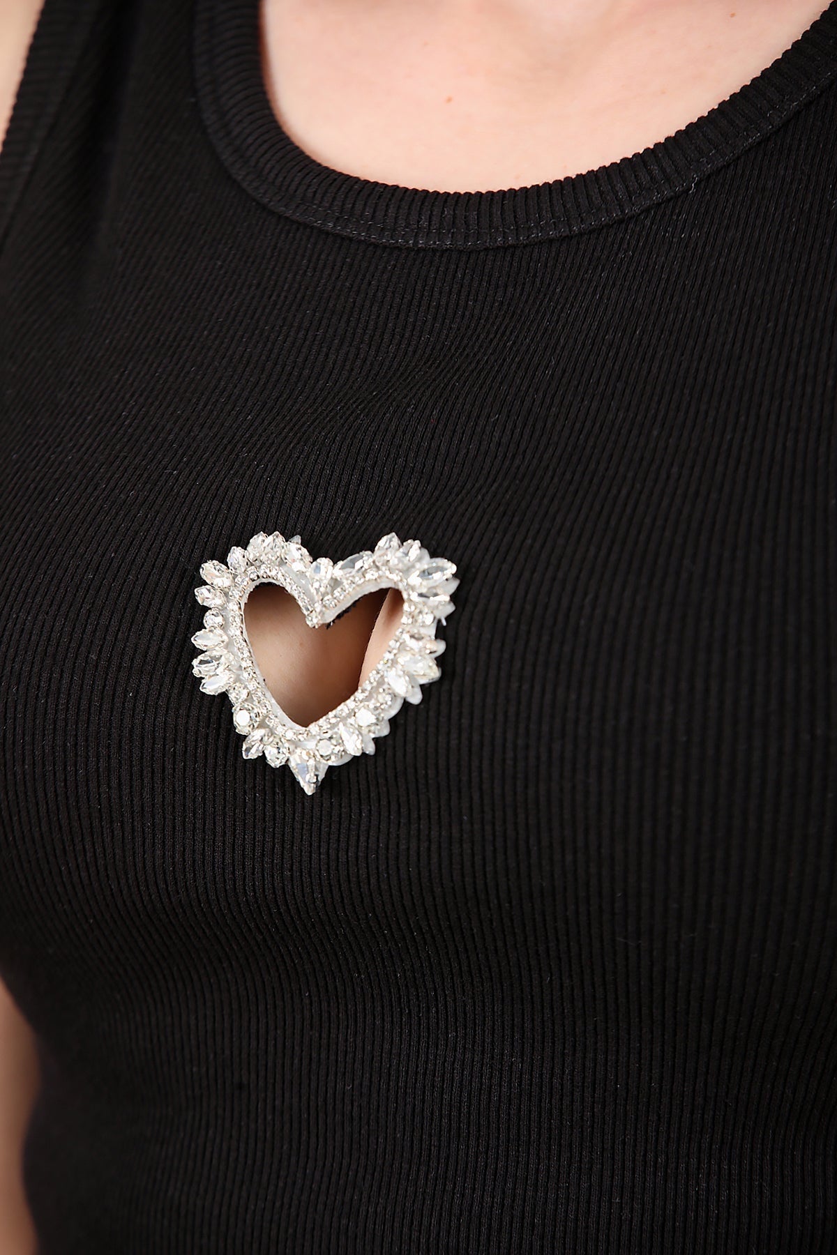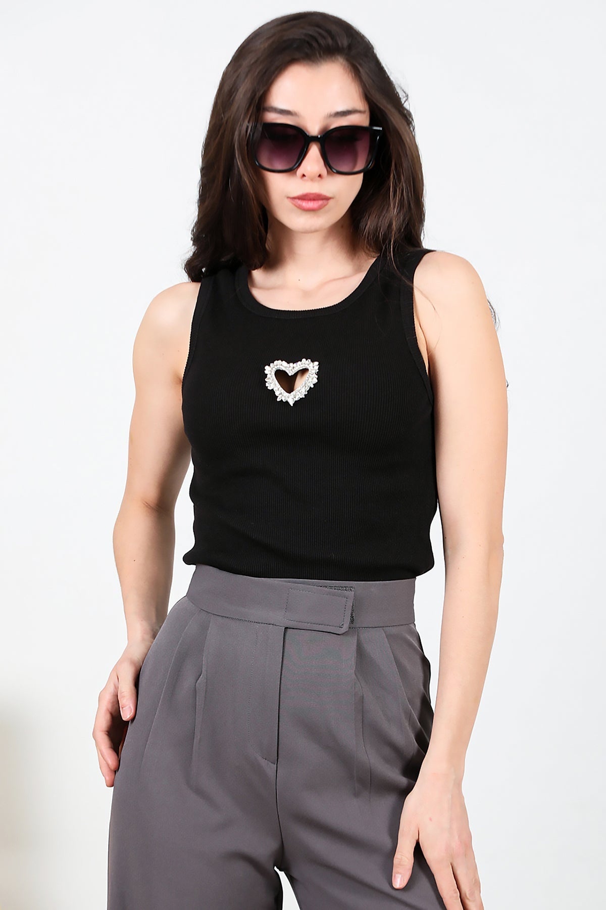 Kadın Önü Kalp Taşlı Kalın Askılı Bady Siyah