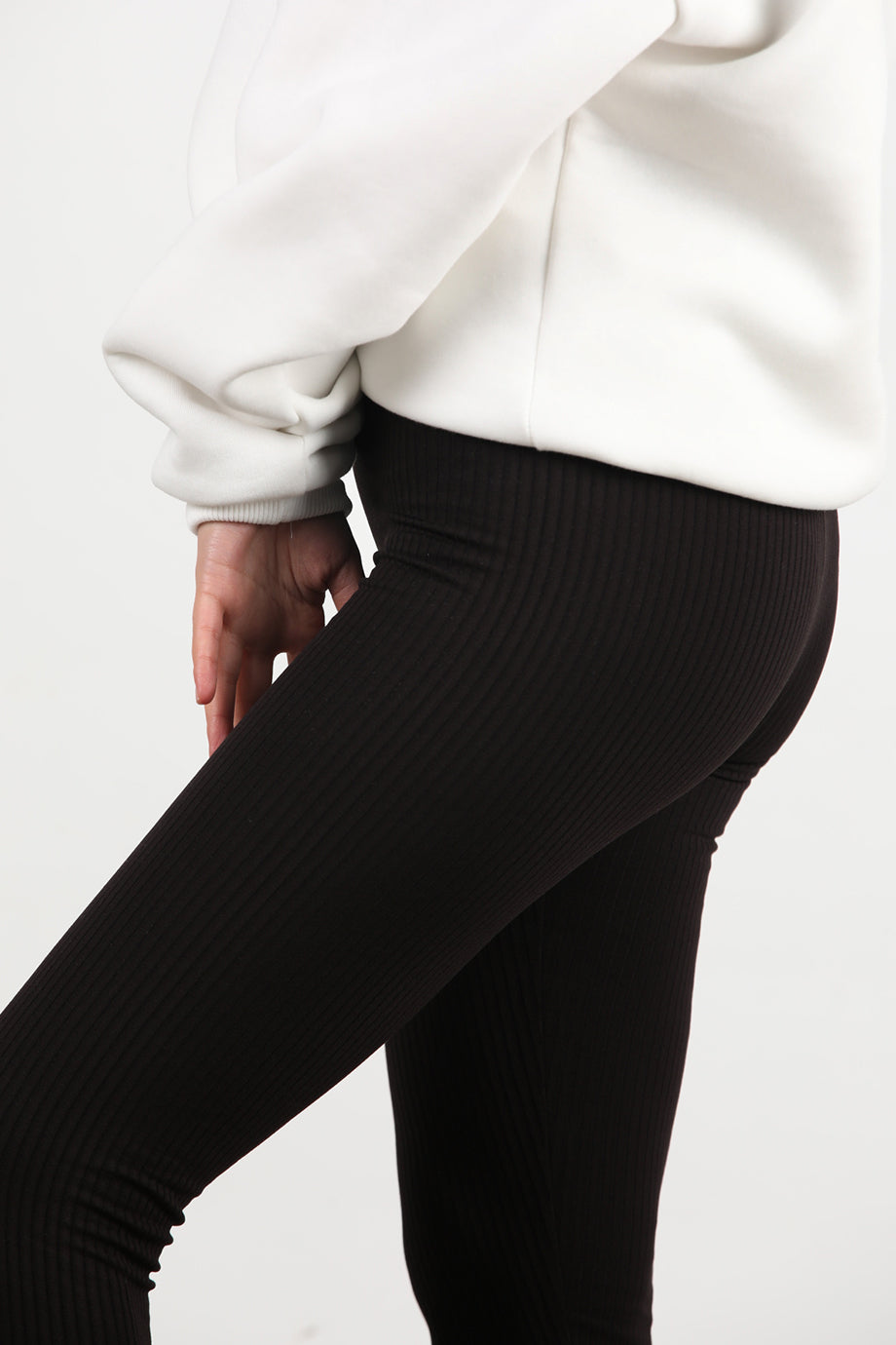 Ribvibe Kadın Önü V Yüksek Bel Kalın Fitilli Tayt Siyah