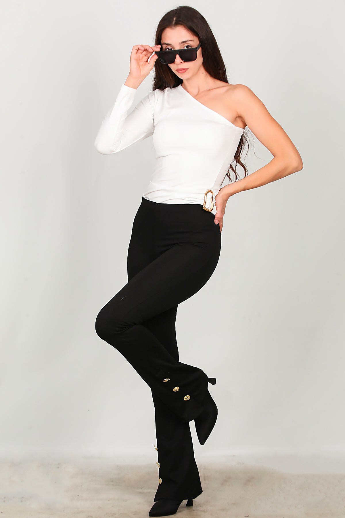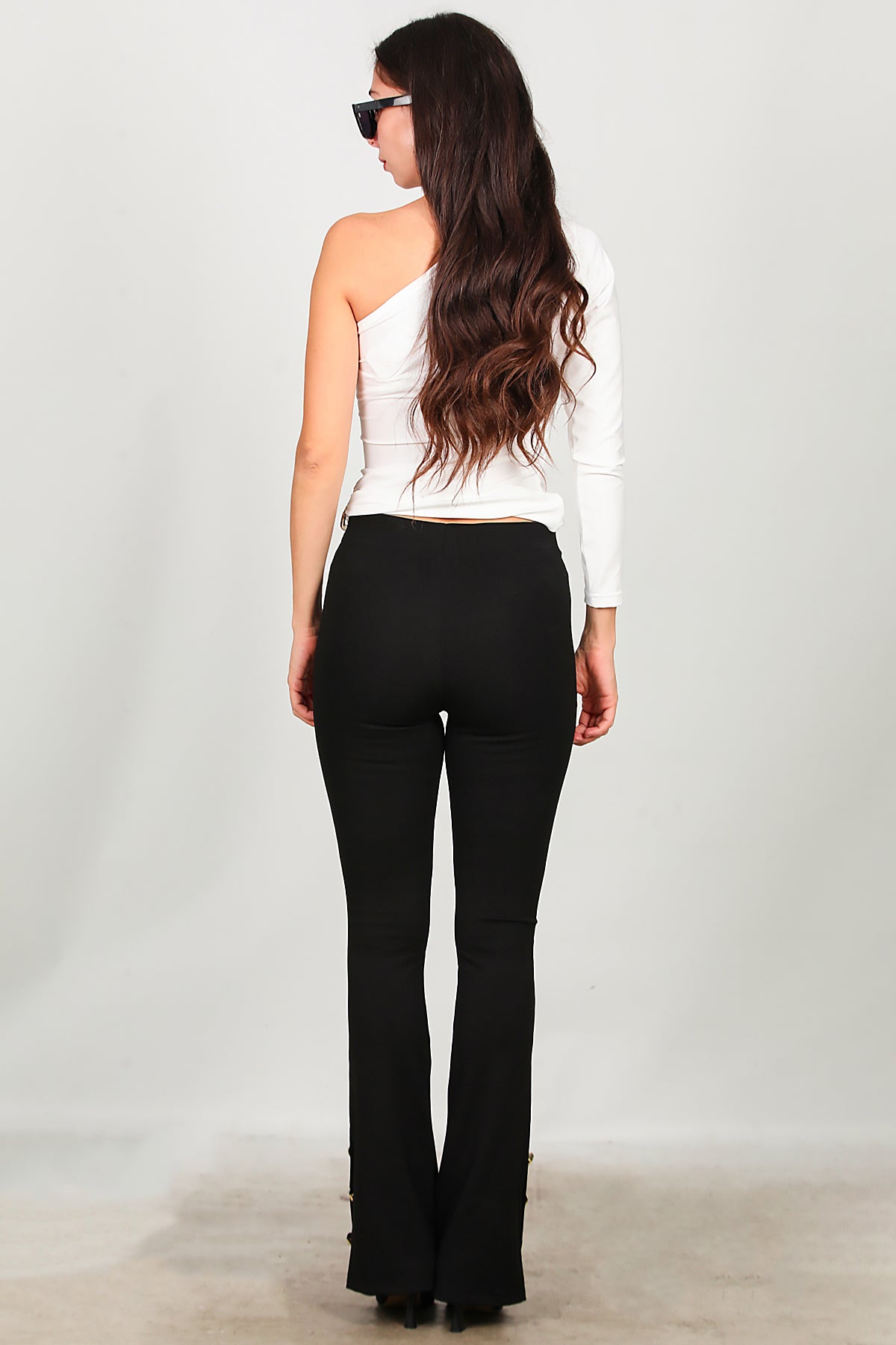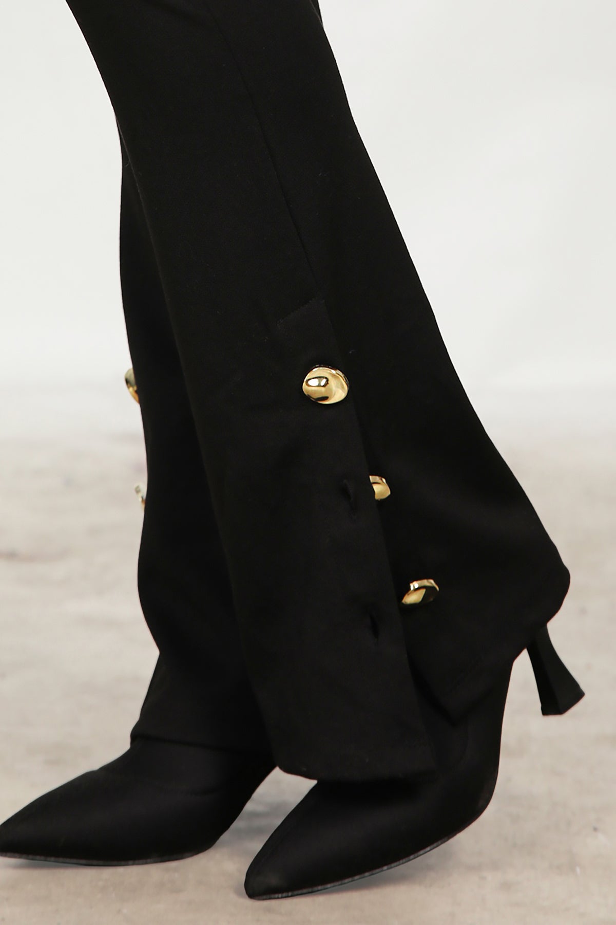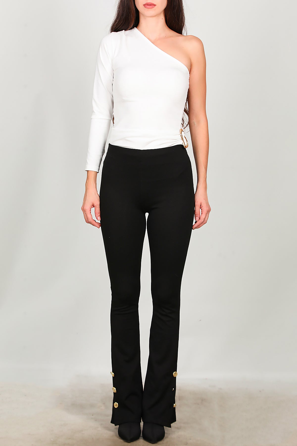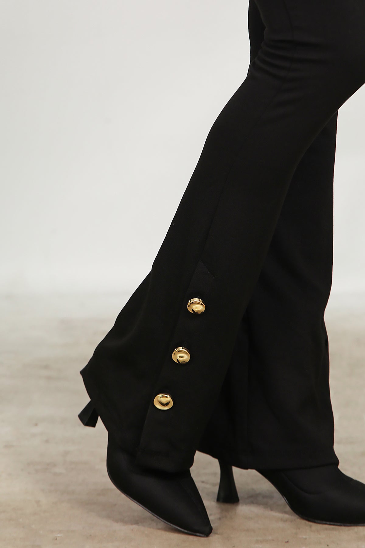 Kadın Paça Düğme Detay İspanyol Tayt Siyah