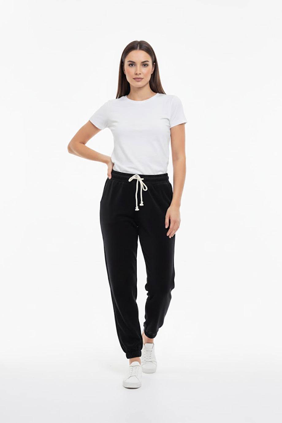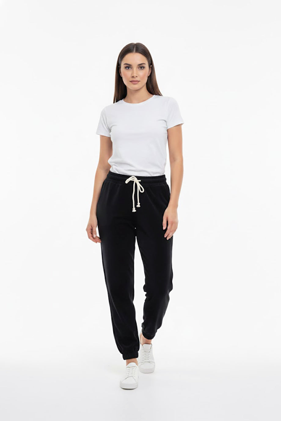 Kadın Paça Lastikli Havlu Eşofman Siyah