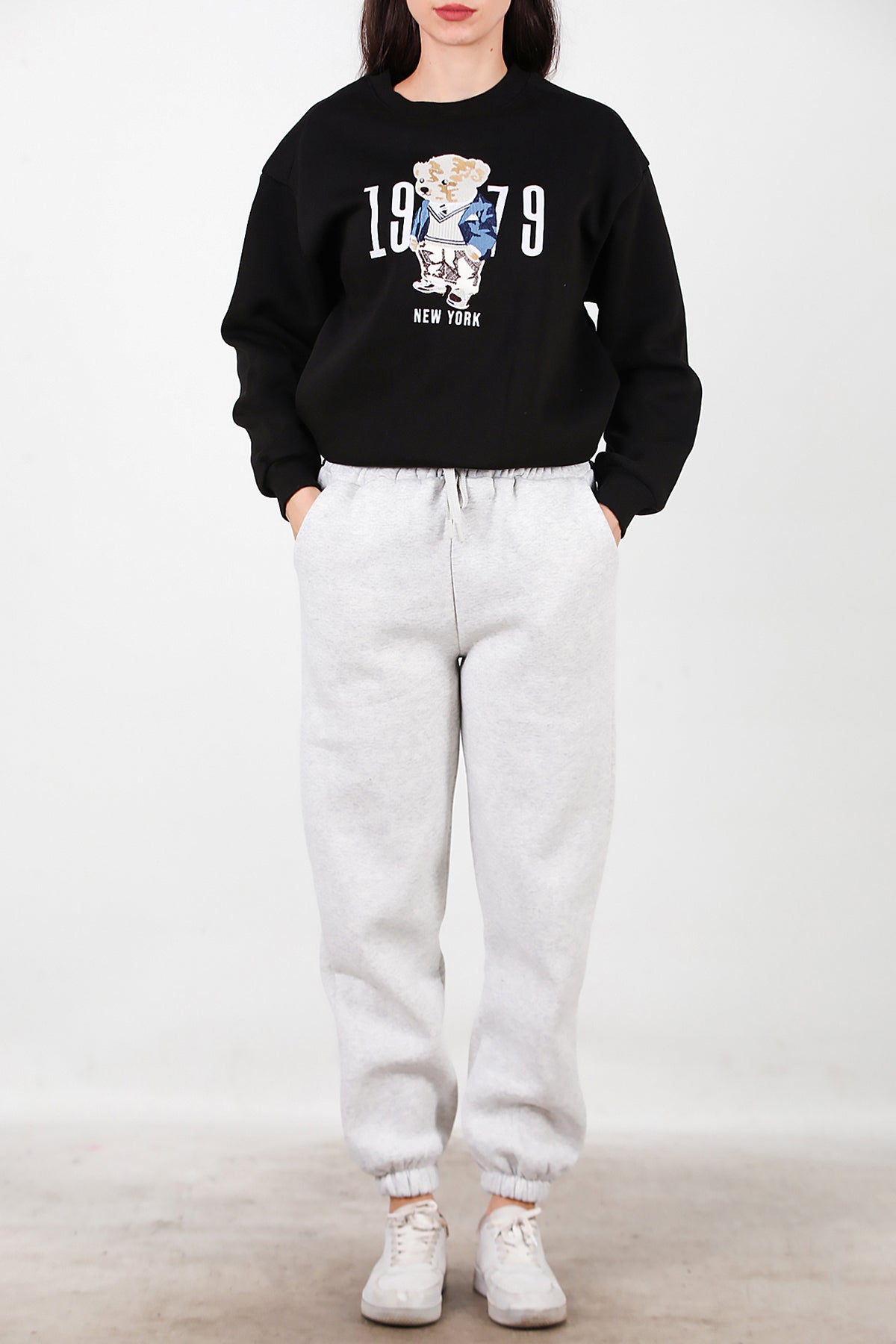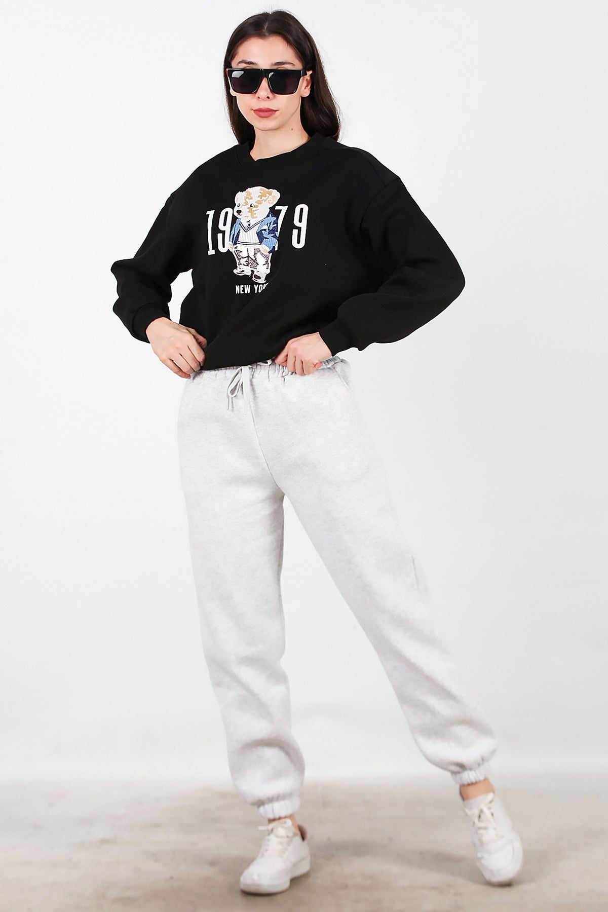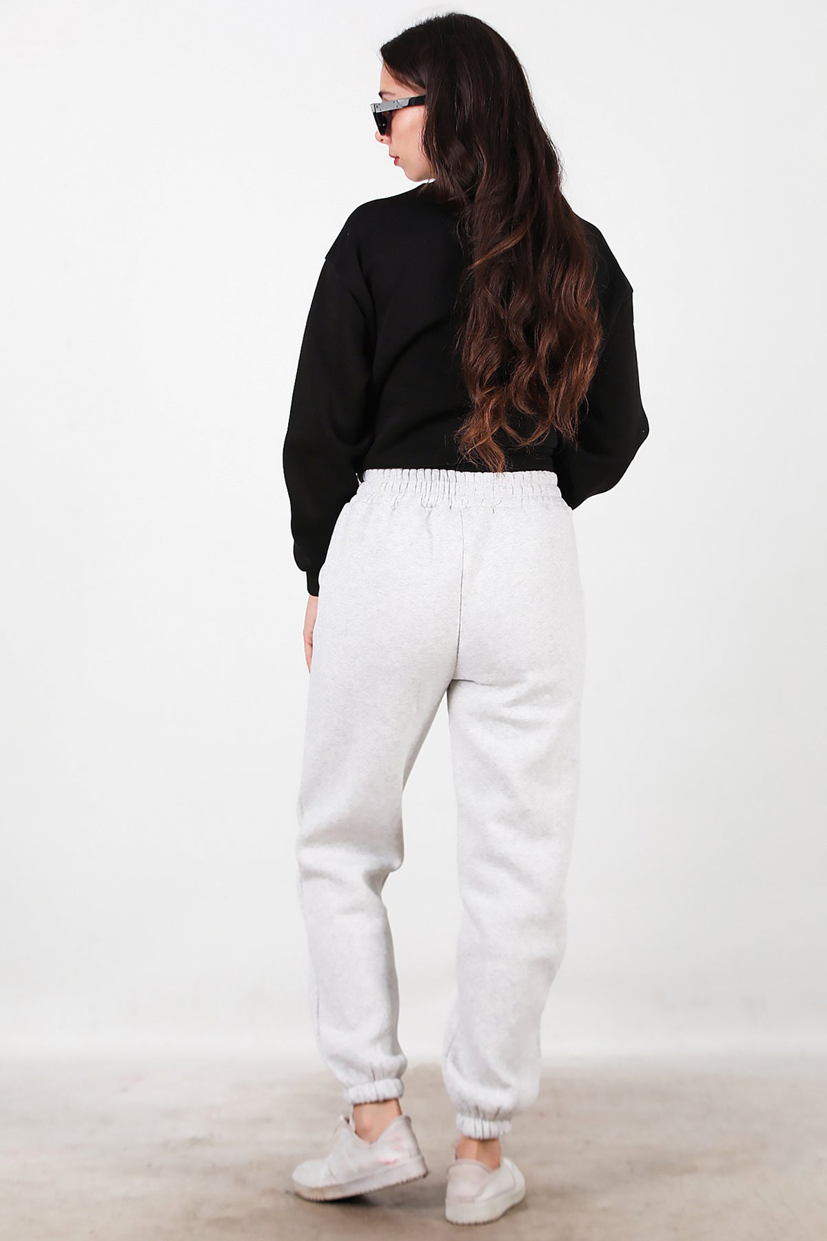 Kadın Paça Lastikli İçi Şardonlu Eşofman Altı Açık Gri
