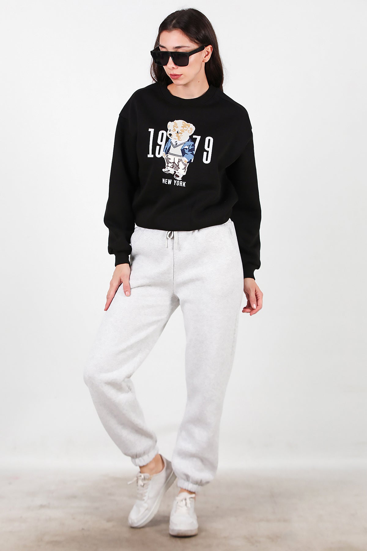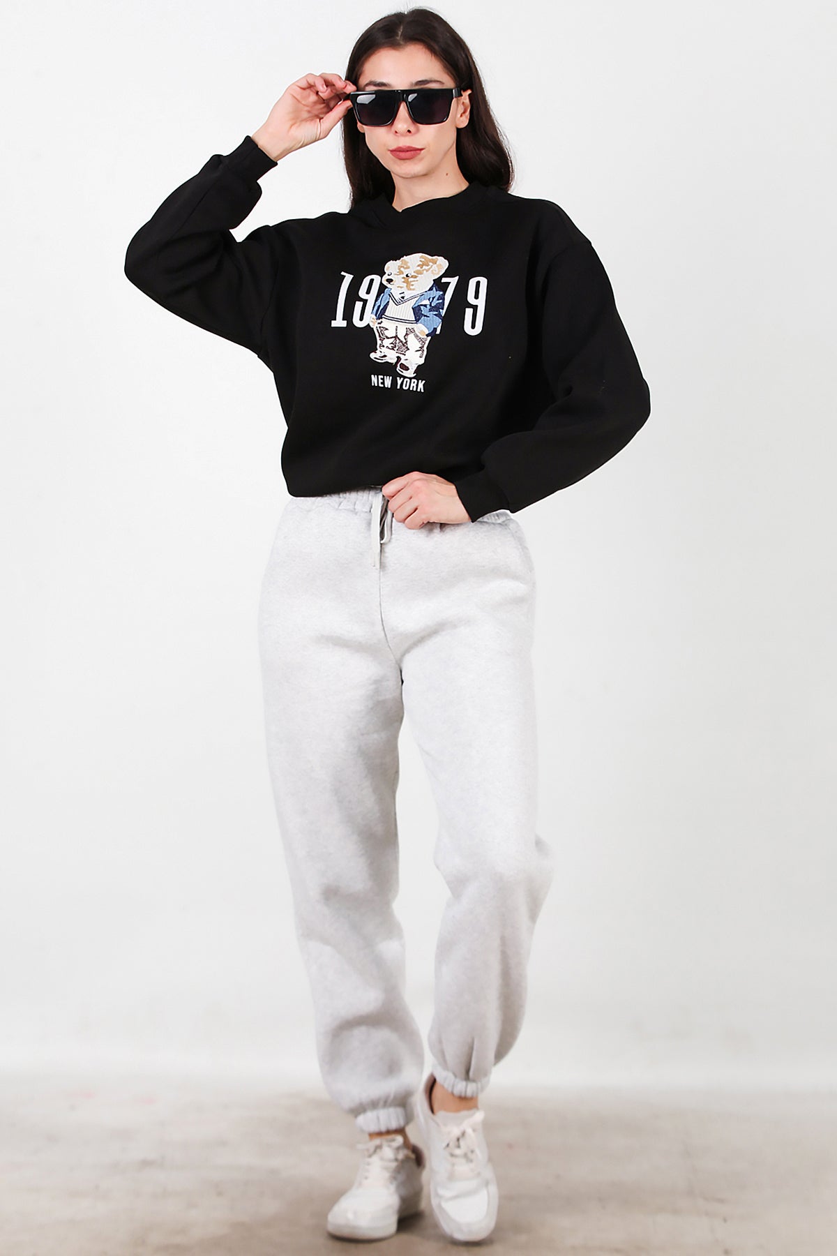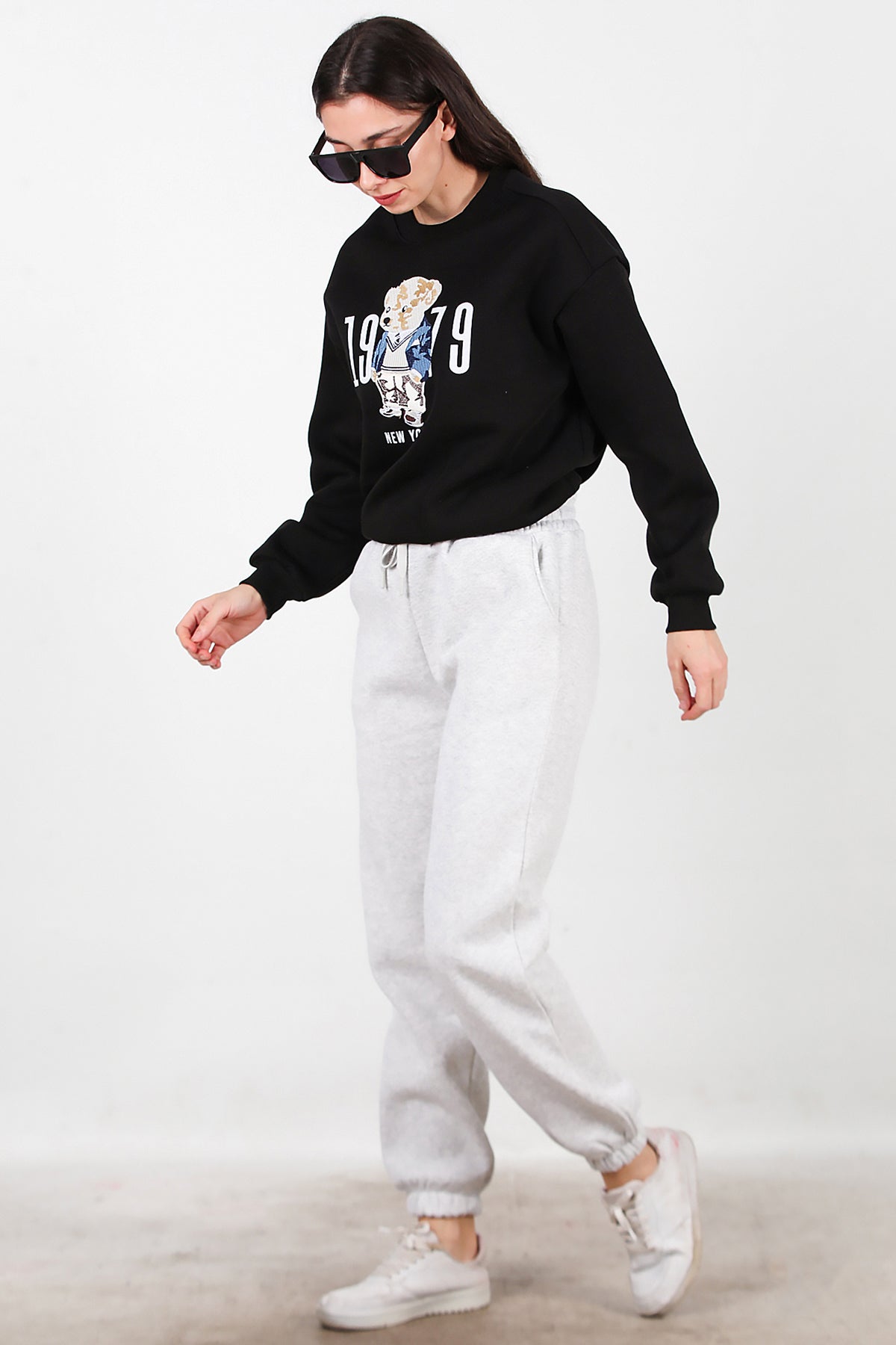 Kadın Paça Lastikli İçi Şardonlu Eşofman Altı Açık Gri