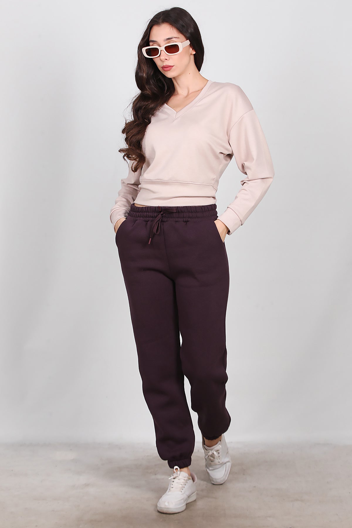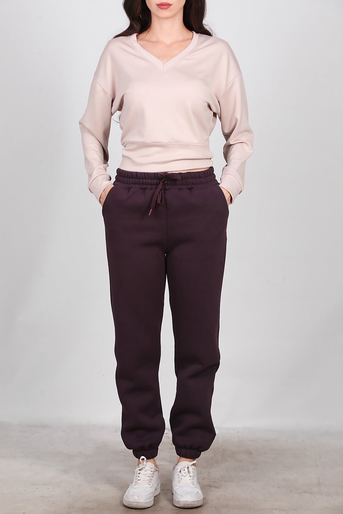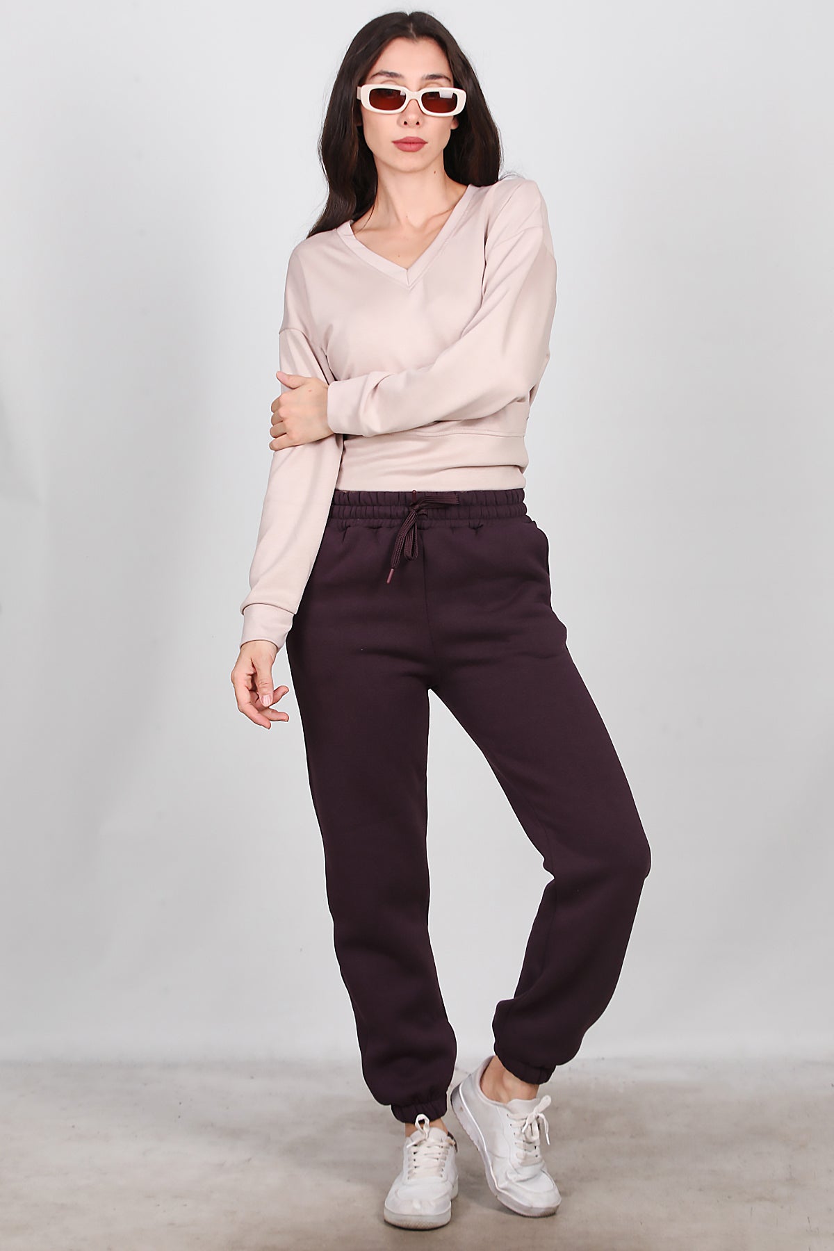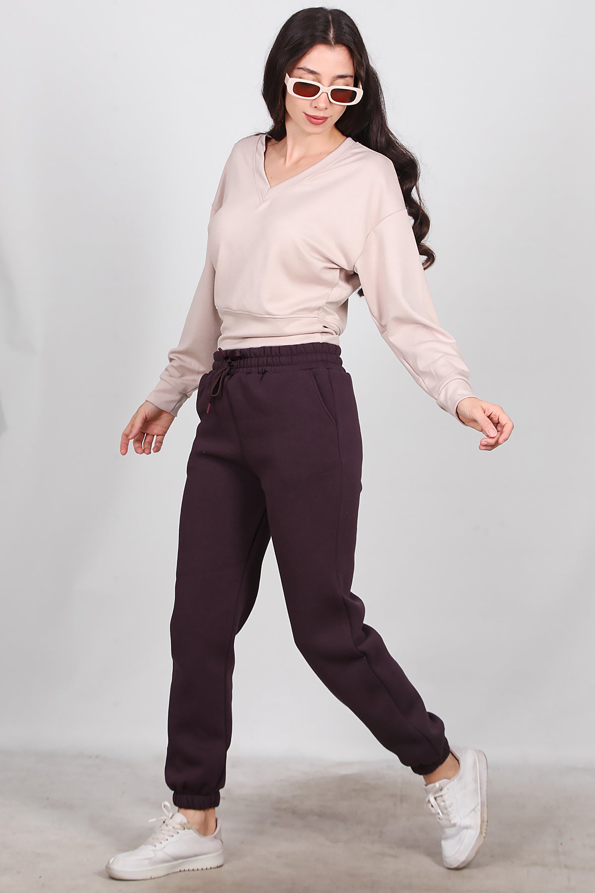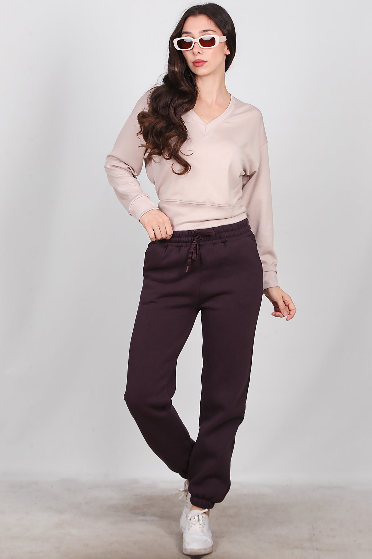 Kadın Paça Lastikli İçi Şardonlu Eşofman Altı Mürdüm