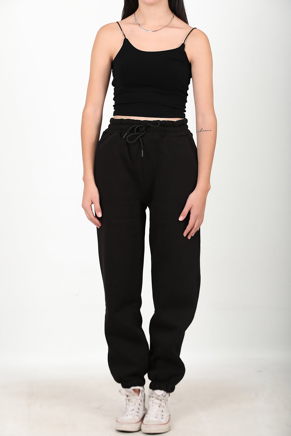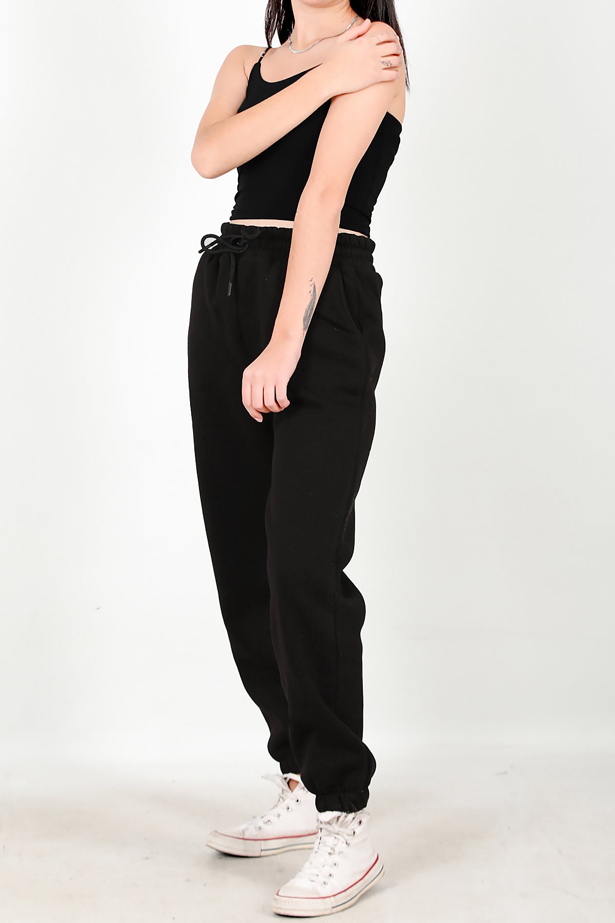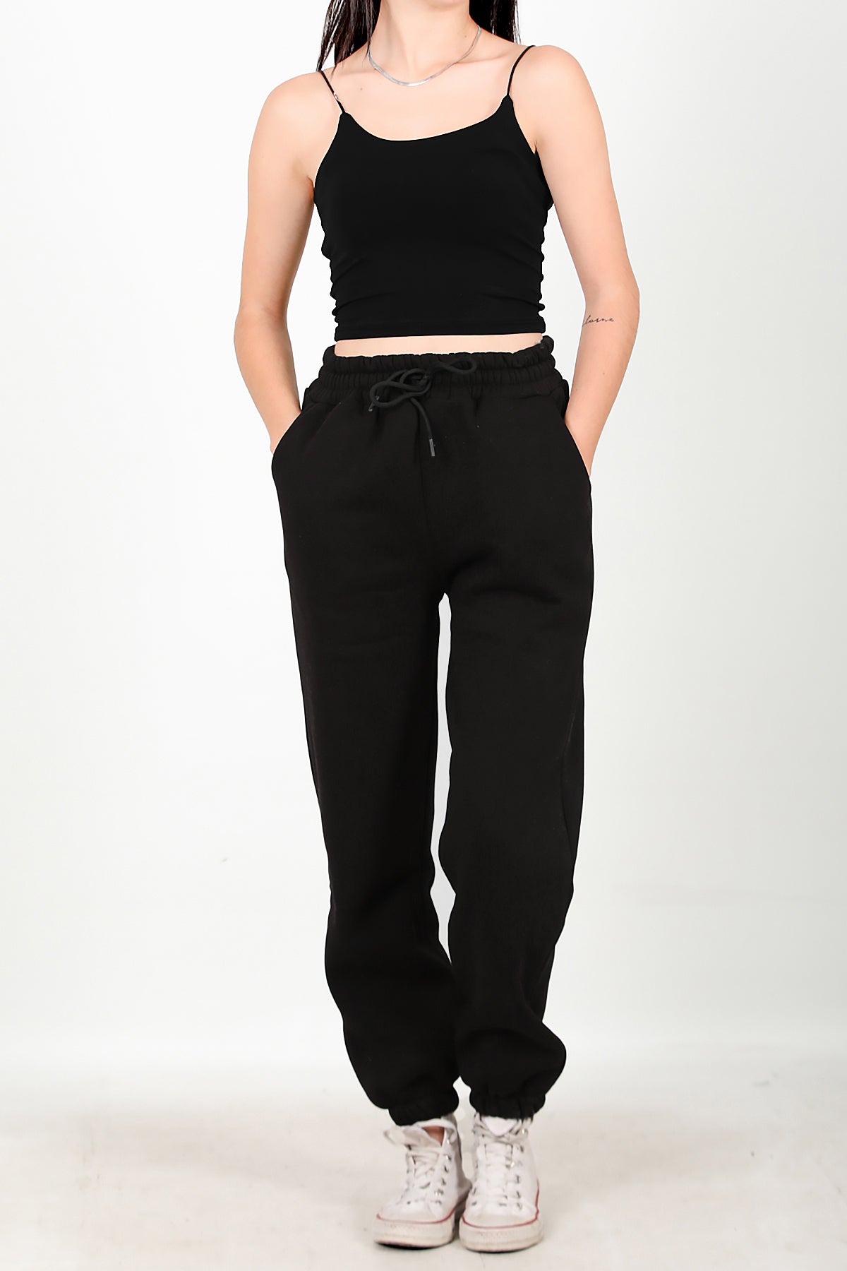 Kadın Paça Lastikli İçi Şardonlu Eşofman Altı Siyah